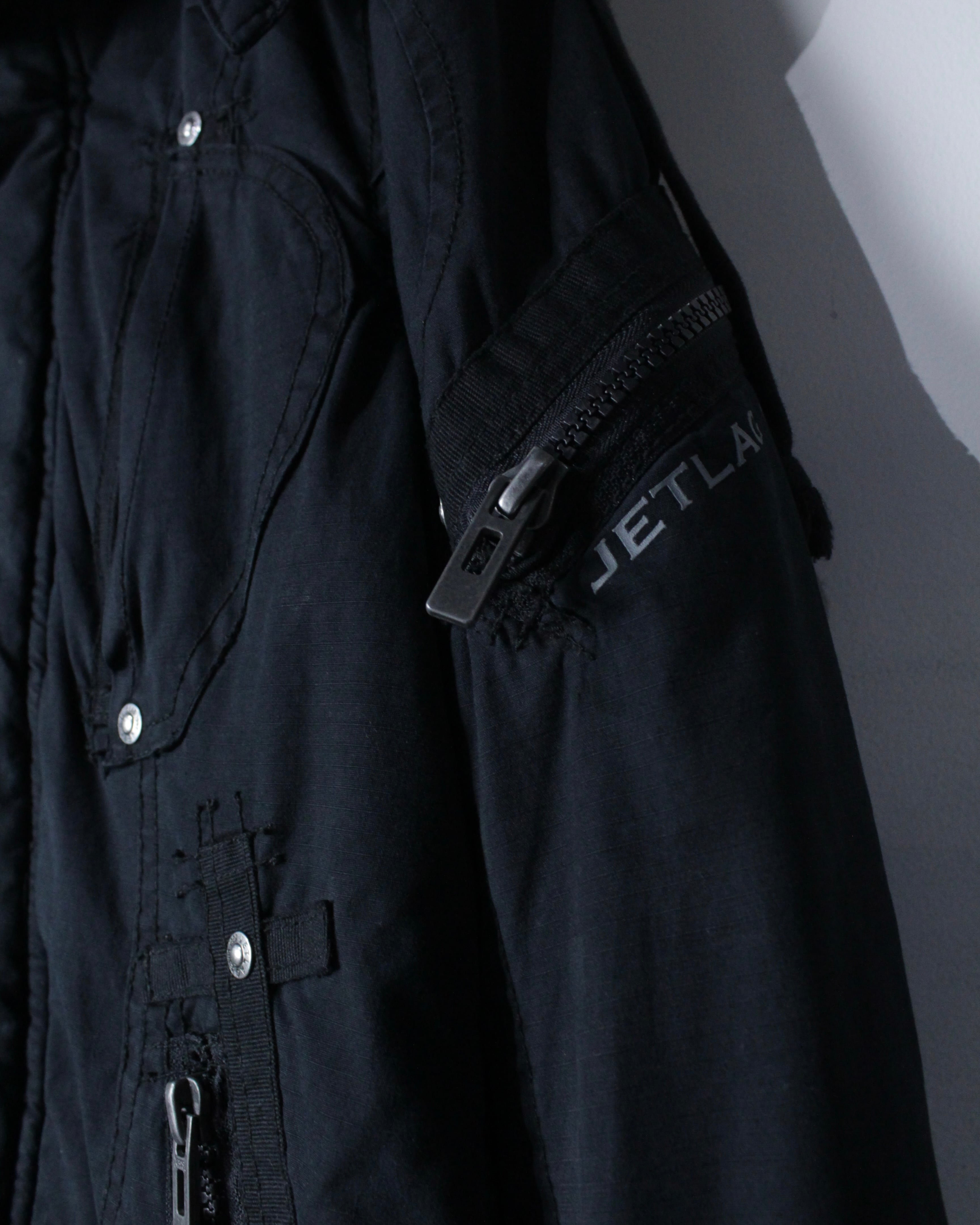 ボディにはコットンのリップストップ素材を採用し、フロントはジップ×ボタンの比翼仕立て。ジップポケット、アームのユーティリティポケット、脇下のベンチレーション、裾や背面に配されたアジャスターベルトなど、随所に散りばめられたギミックが機能的にも素晴らしく、デザインのアクセントとしても効いています。