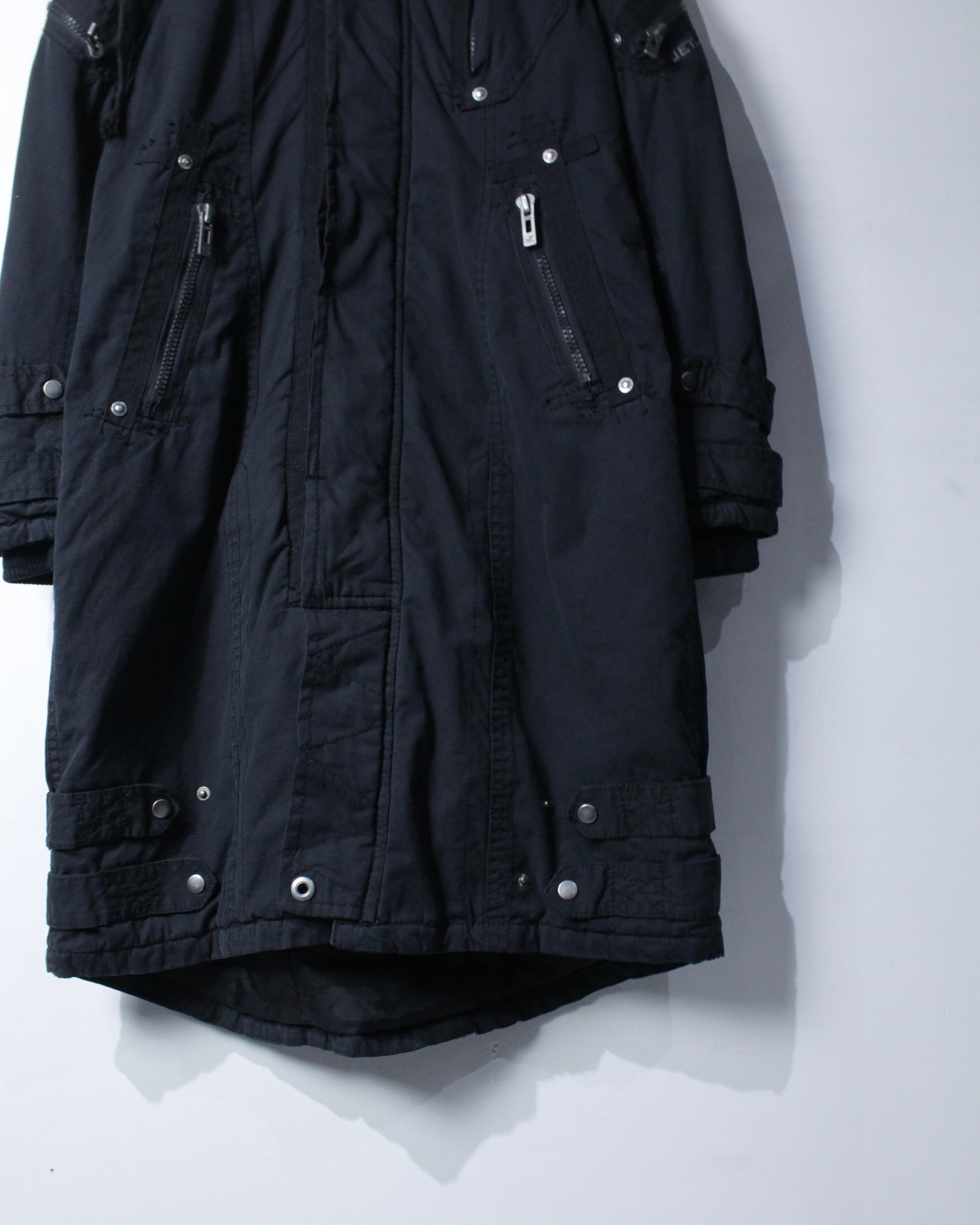 ミリタリーウェアの定番として長きにわたり支持されてきたモッズコートをベースに、無骨さとモード感を落とし込んだ1着。