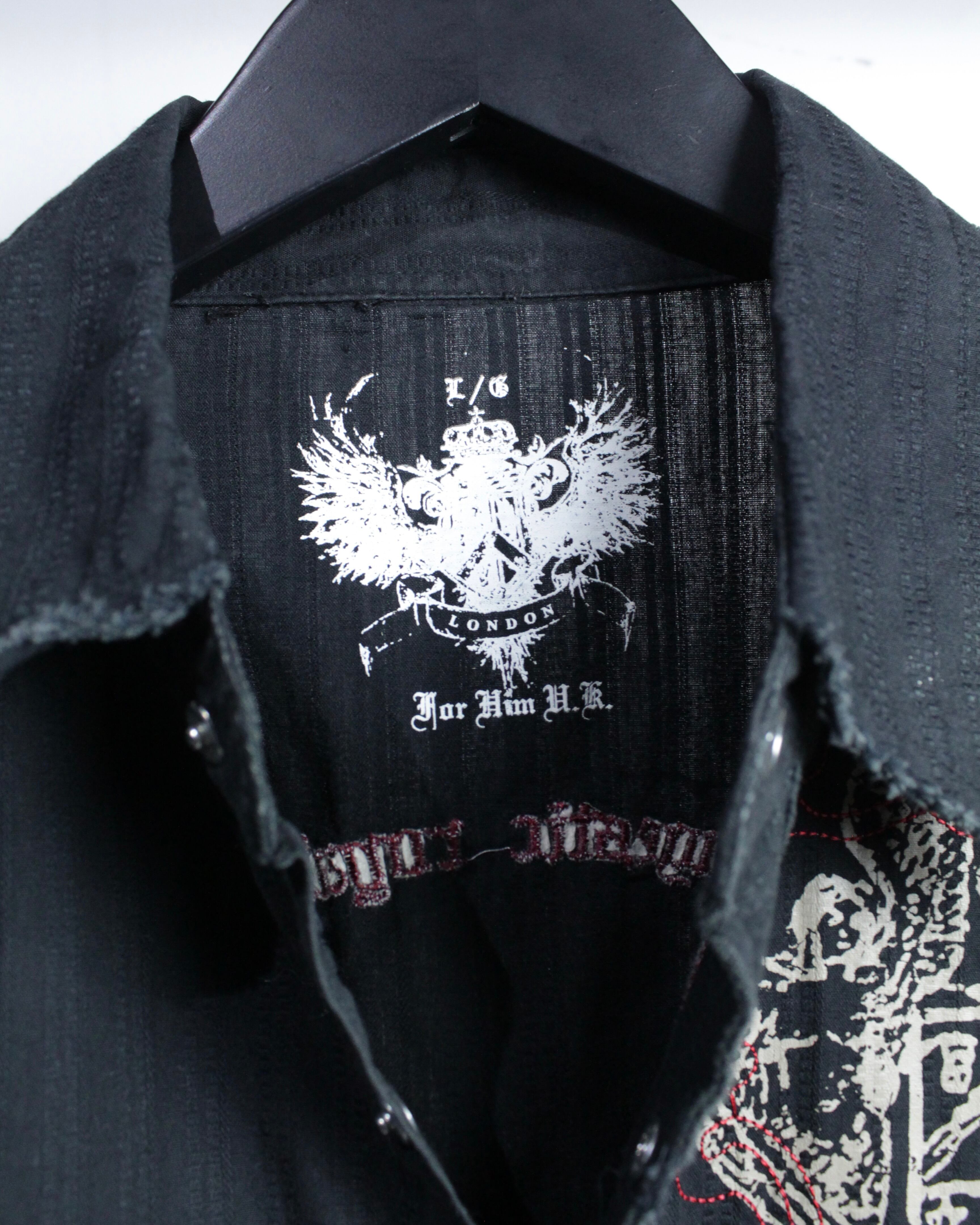グラフィック、ディテール、そのすべてが計算されて生み出されるゴシックな空気感を存分に楽しめる、長袖シャツの逸品です。