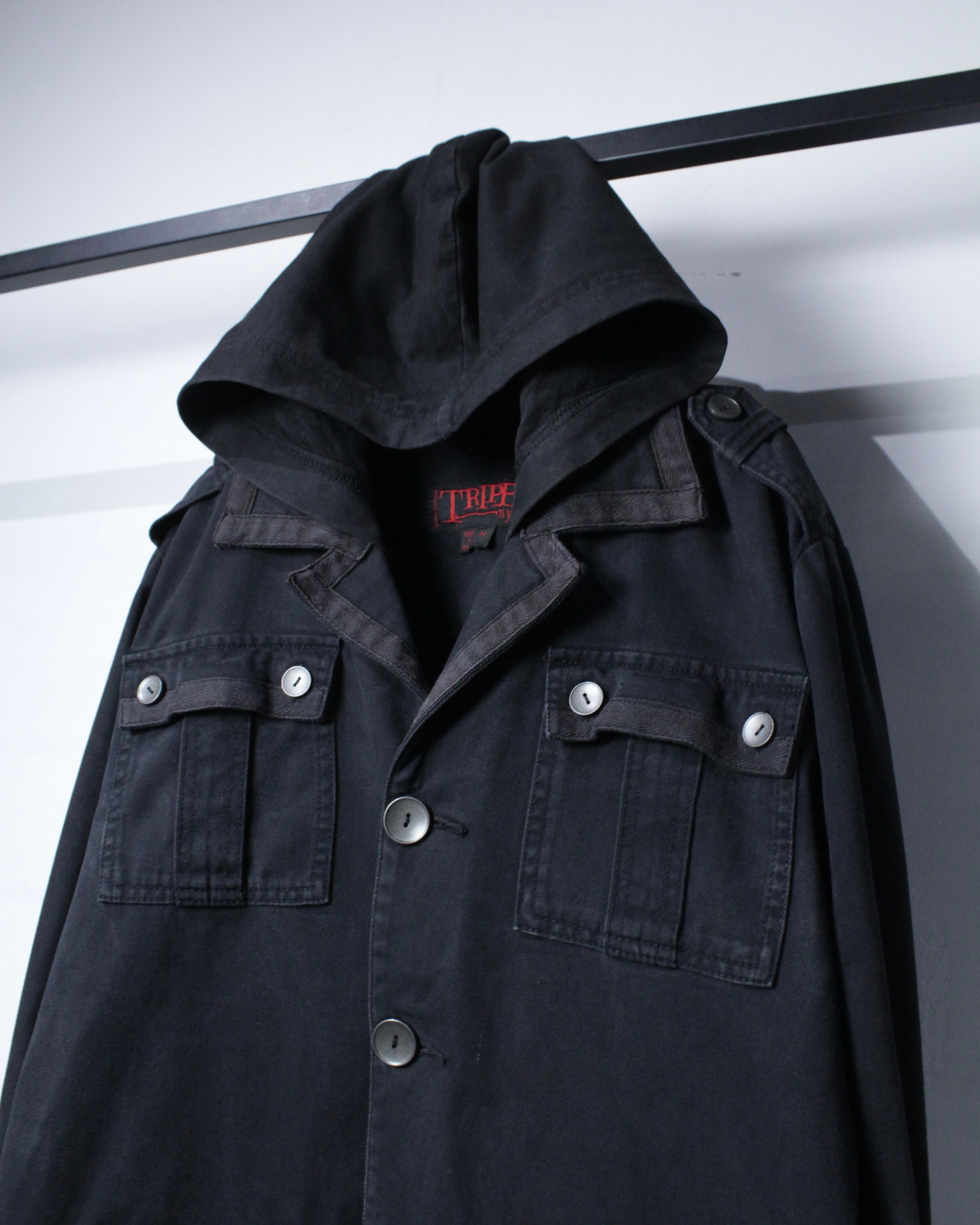 “TRIPP NYC”より、ブランドらしいムードとミリタリーの無骨さを掛け合わせたフーデッドジャケット。