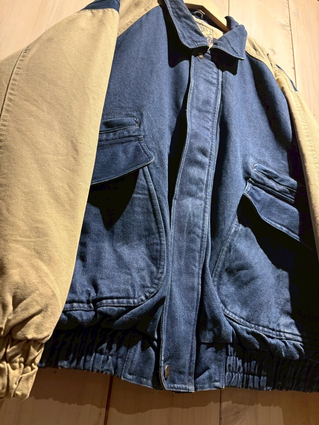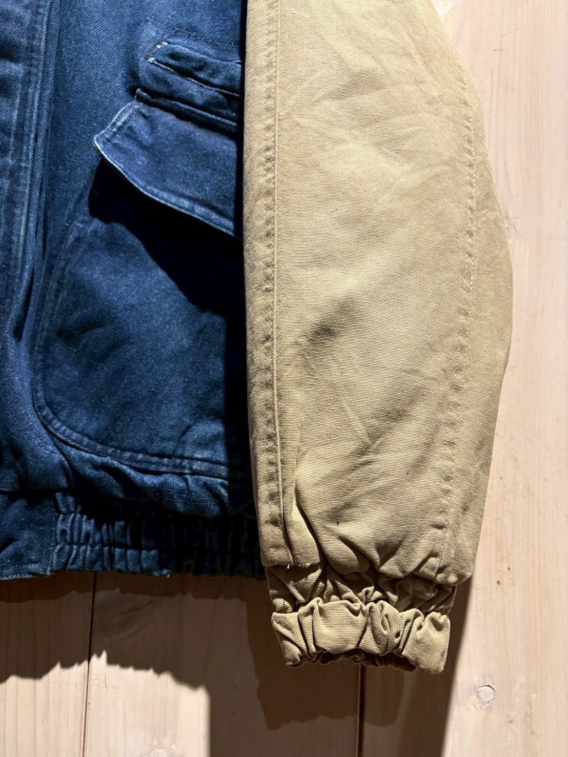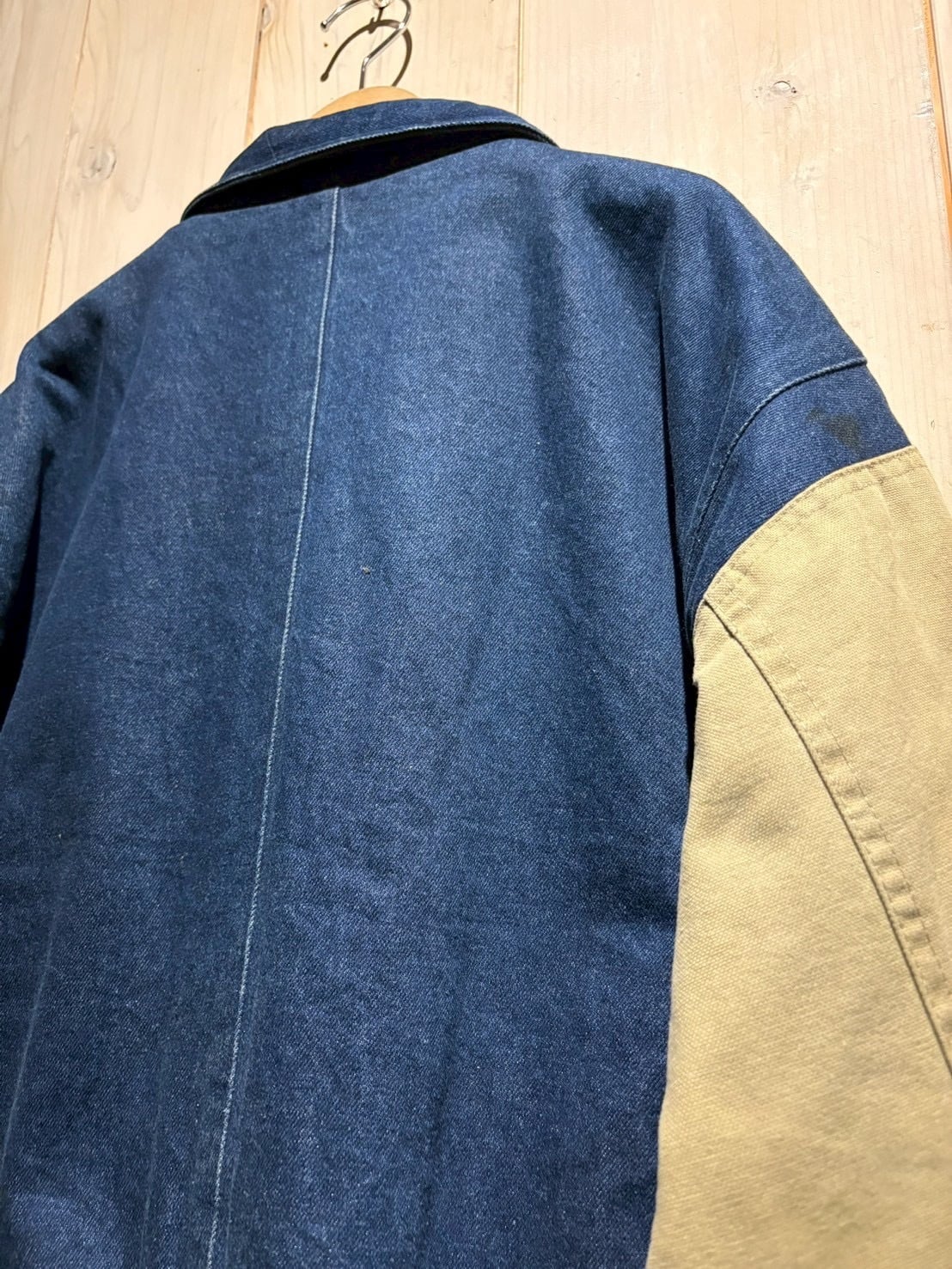 ボディには色落ちの表情が楽しめるデニム地、スリーブにはタフなキャンバス地を切り替え。インディゴの深みと、ベージュキャンバスの色味がコントラストを生み、立体感のある佇まいに仕上がっています。