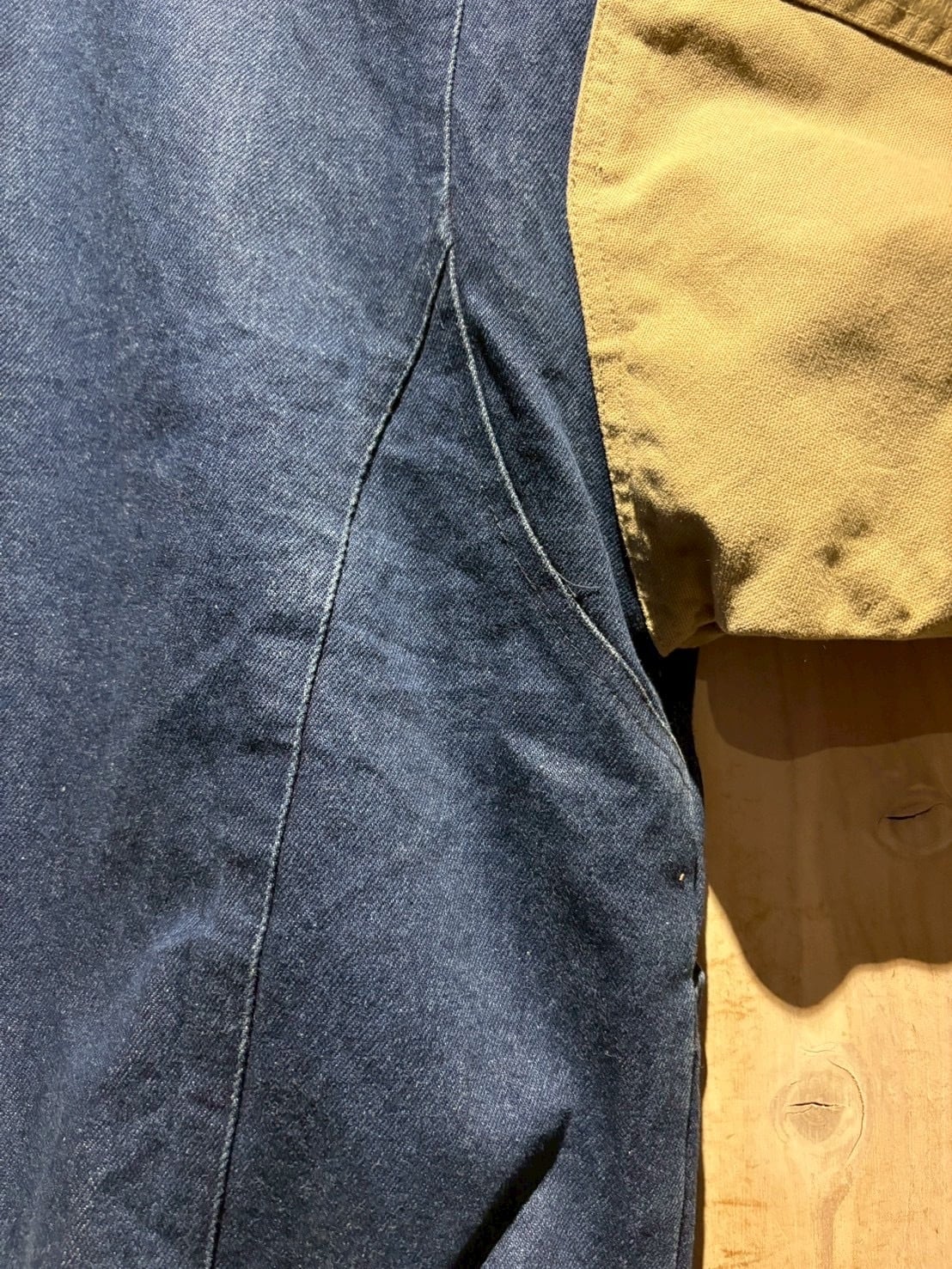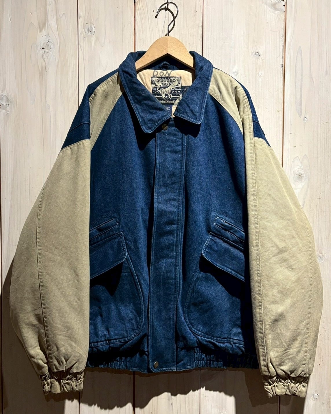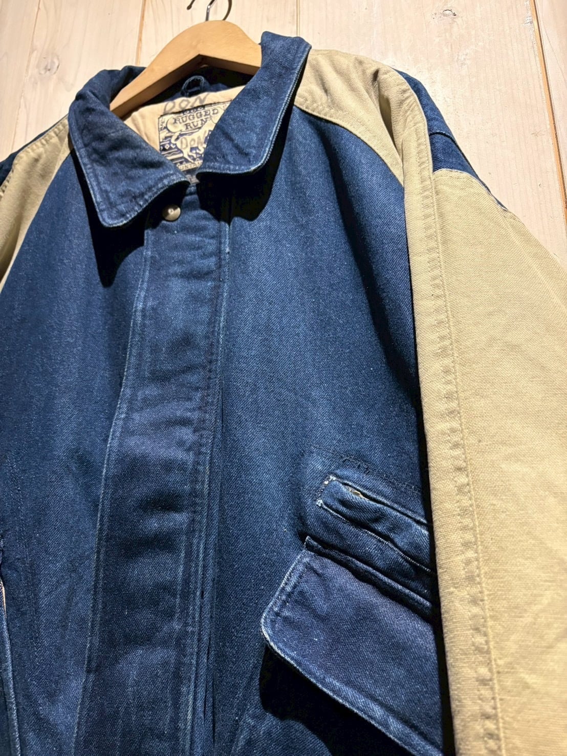 ボディには色落ちの表情が楽しめるデニム地、スリーブにはタフなキャンバス地を切り替え。インディゴの深みと、ベージュキャンバスの色味がコントラストを生み、立体感のある佇まいに仕上がっています。