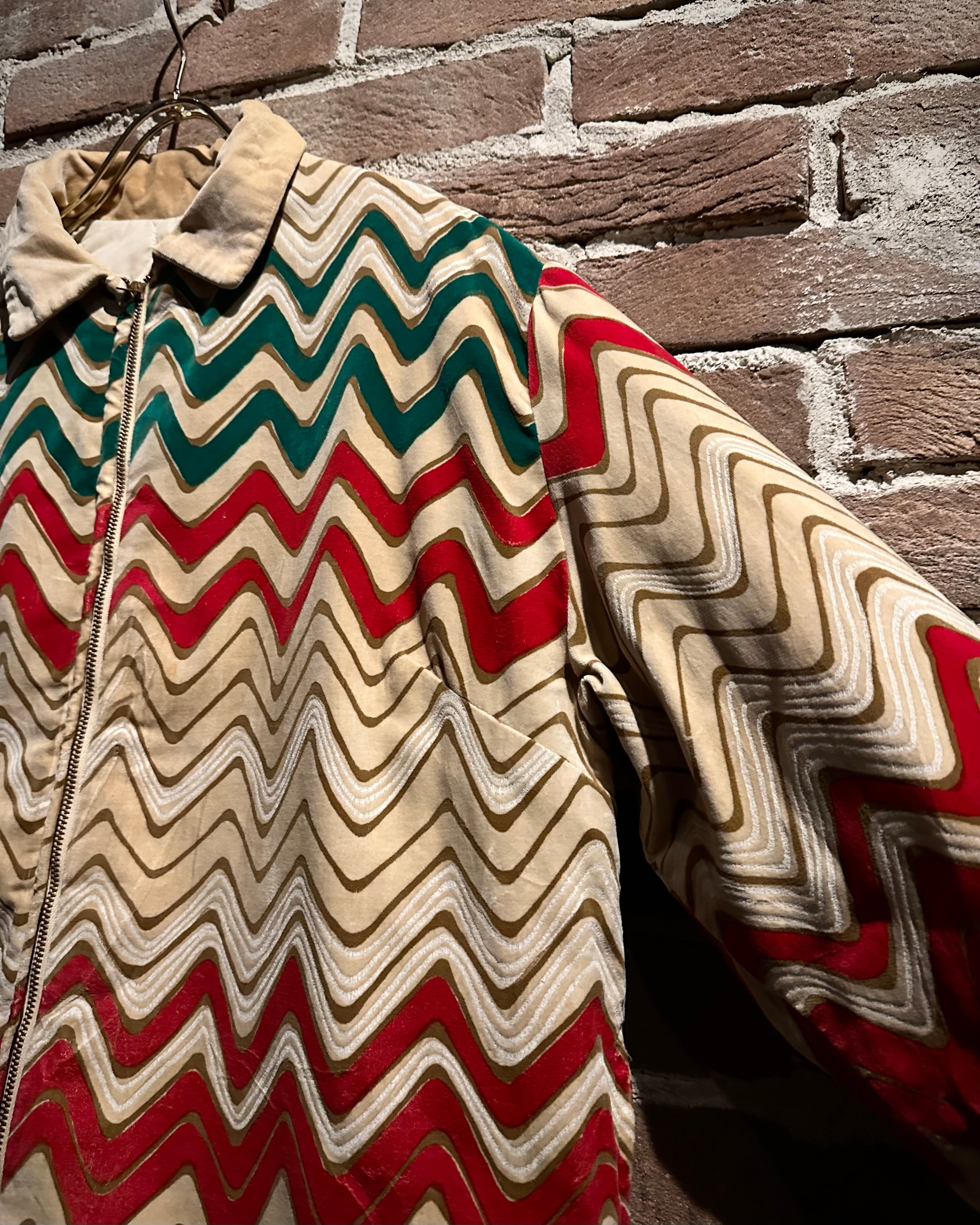 起毛感のあるベロアボディにジグザグ柄を載せた、60’s〜70’sヴィンテージのパデットジャケット。