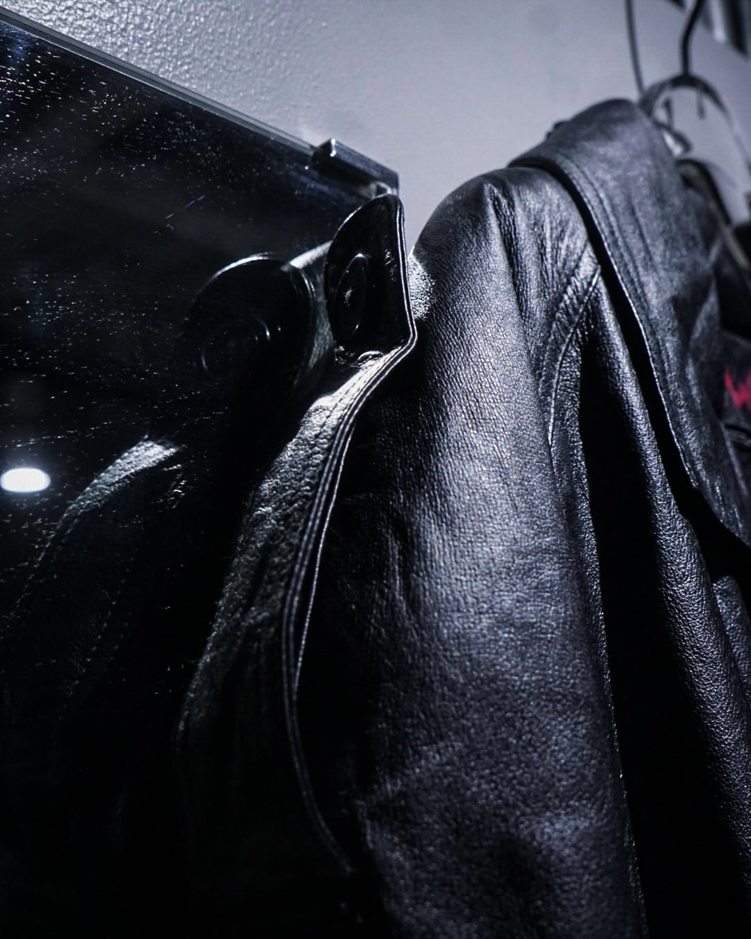 経年により刻まれたシワや表情がリアルレザーならではの重厚感を演出。光を受けた際の鈍い艶が、モードな空気感を引き立てます。