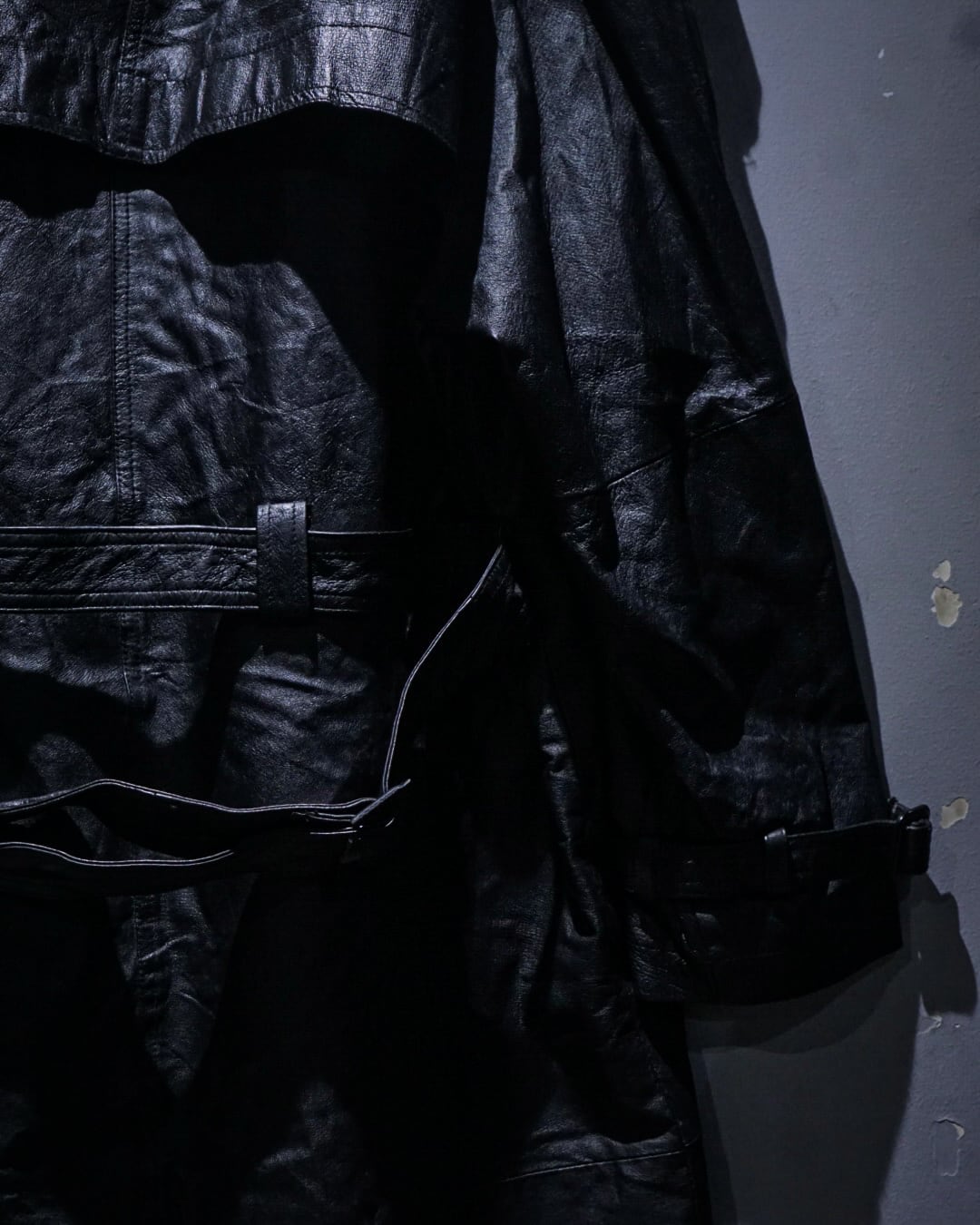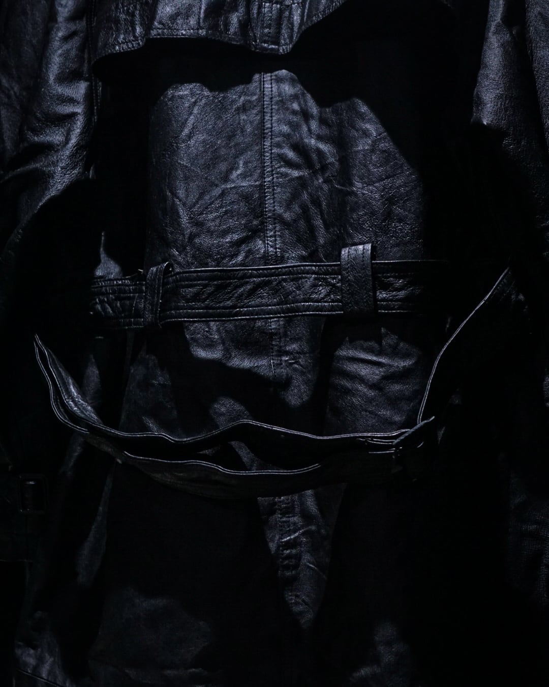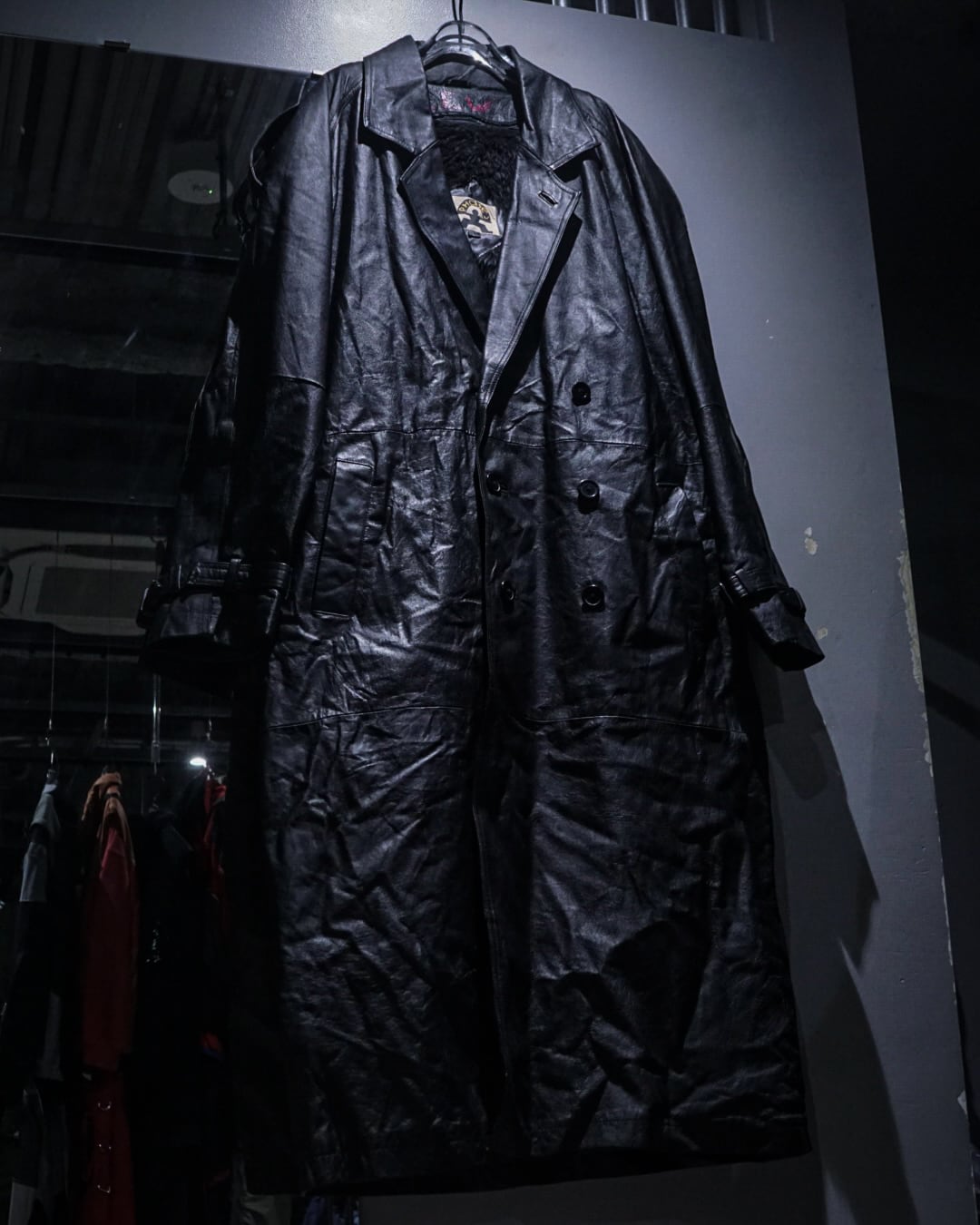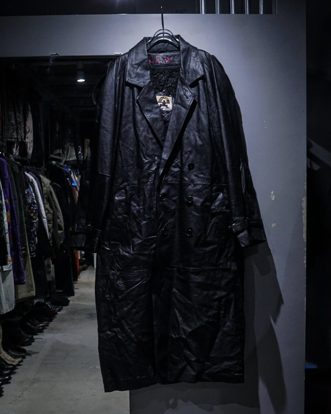 着丈131cmという長調丈、広く採られたアームホールや身幅その全てに肉厚でしなやかなブラックレザーを使用した贅沢極まりない逸品。