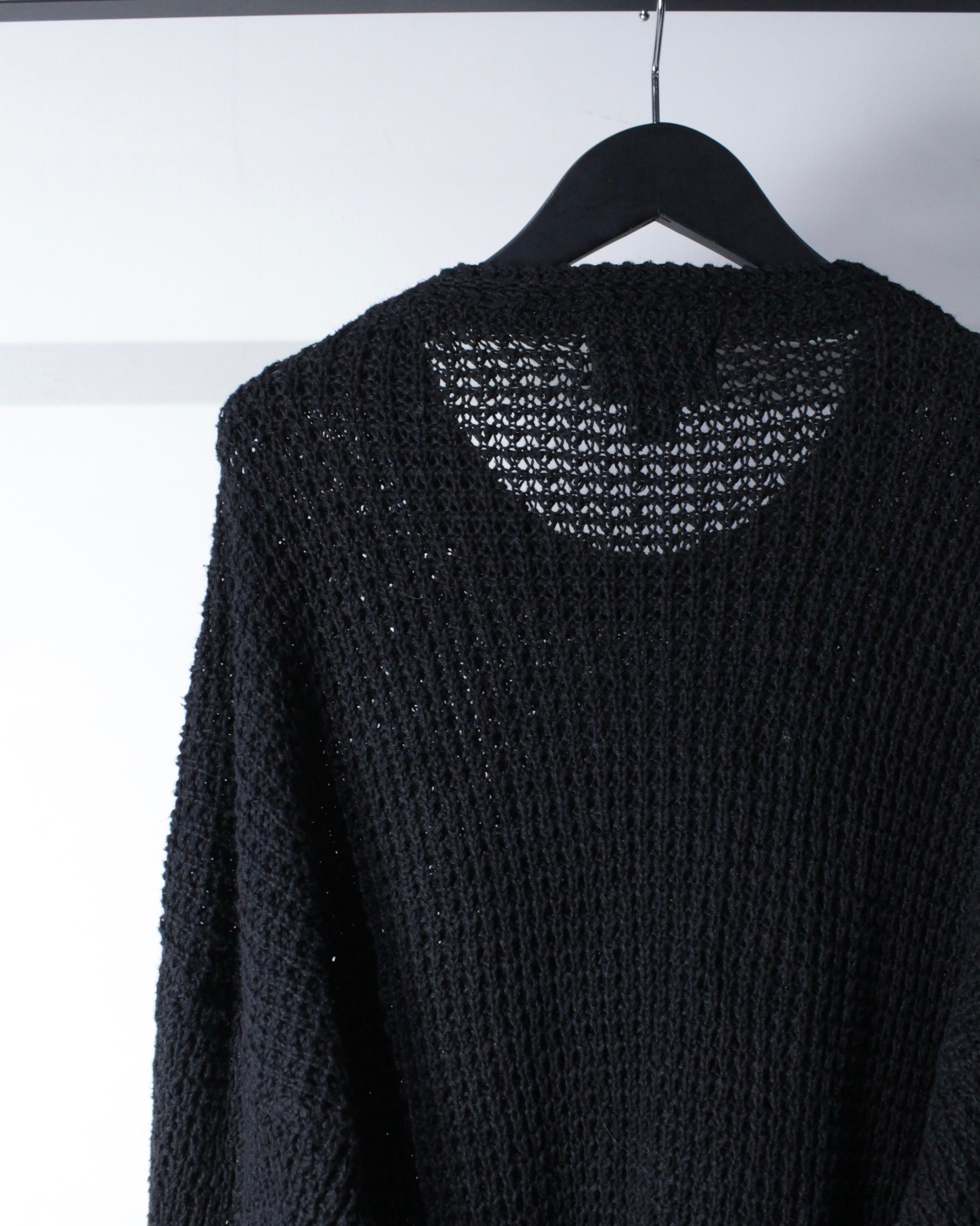 背面、アームはメッシュ調のニットで仕上げられており抜け感と立体感を両立。シンプルながら随所にデザインへのこだわりが感じられますね。