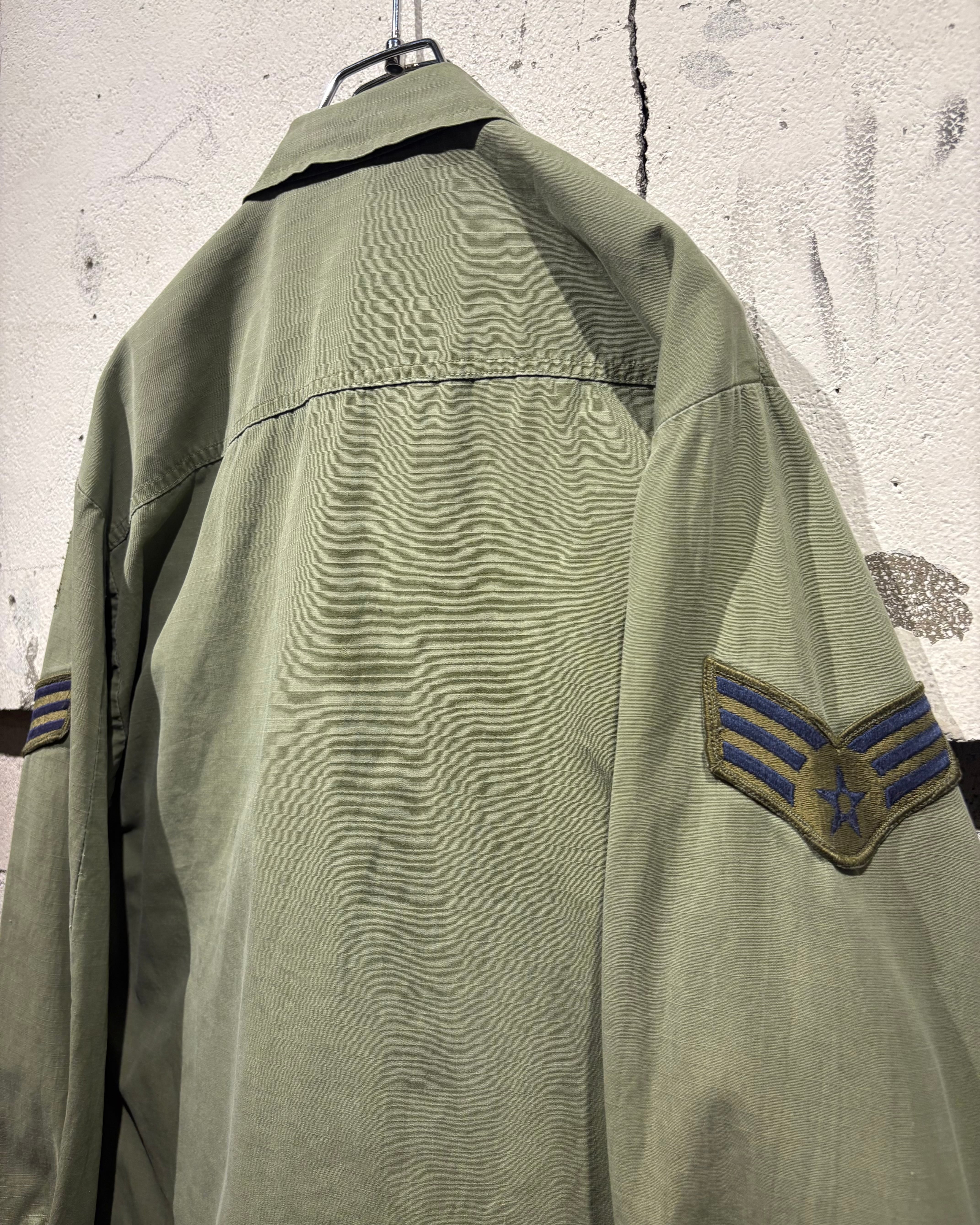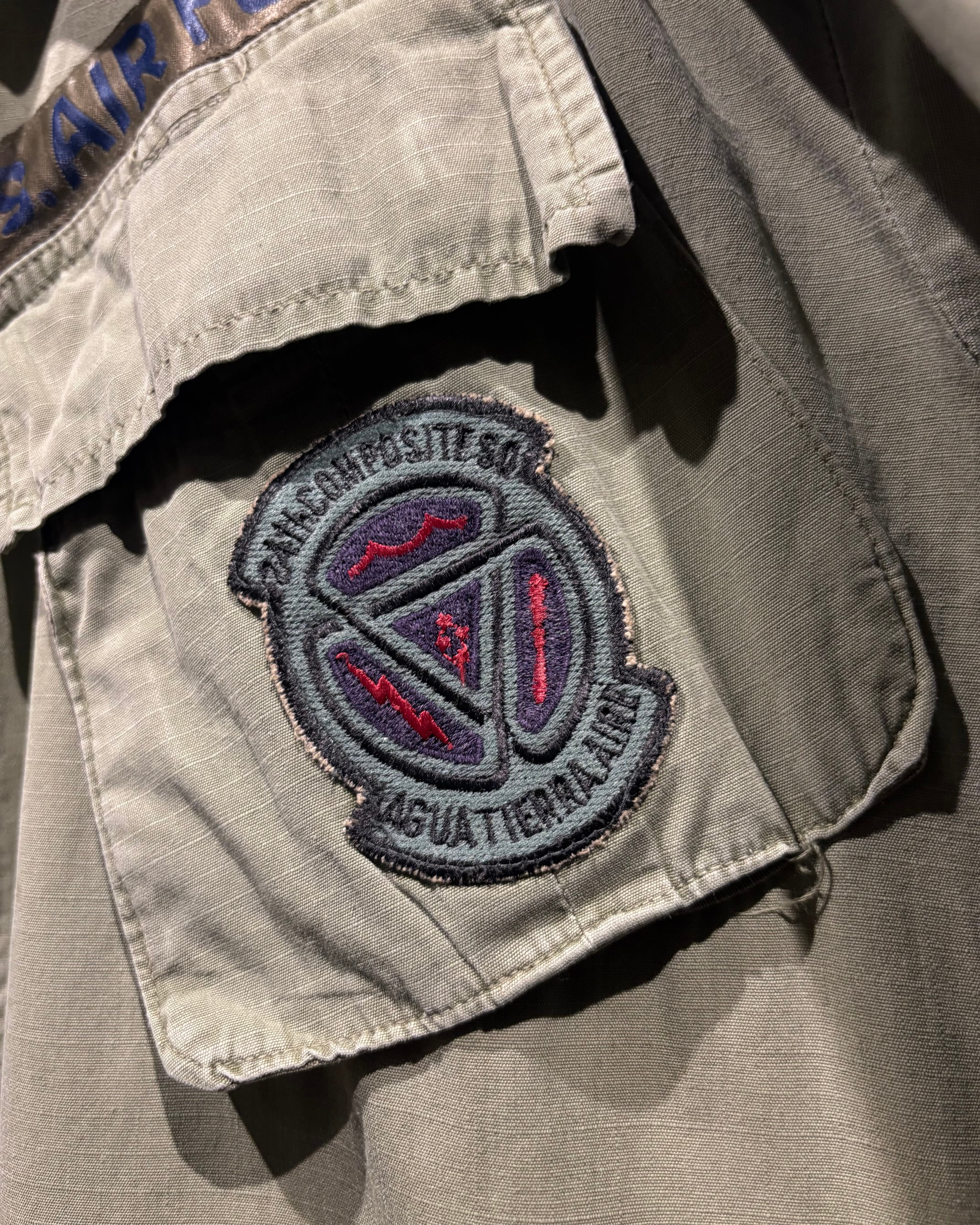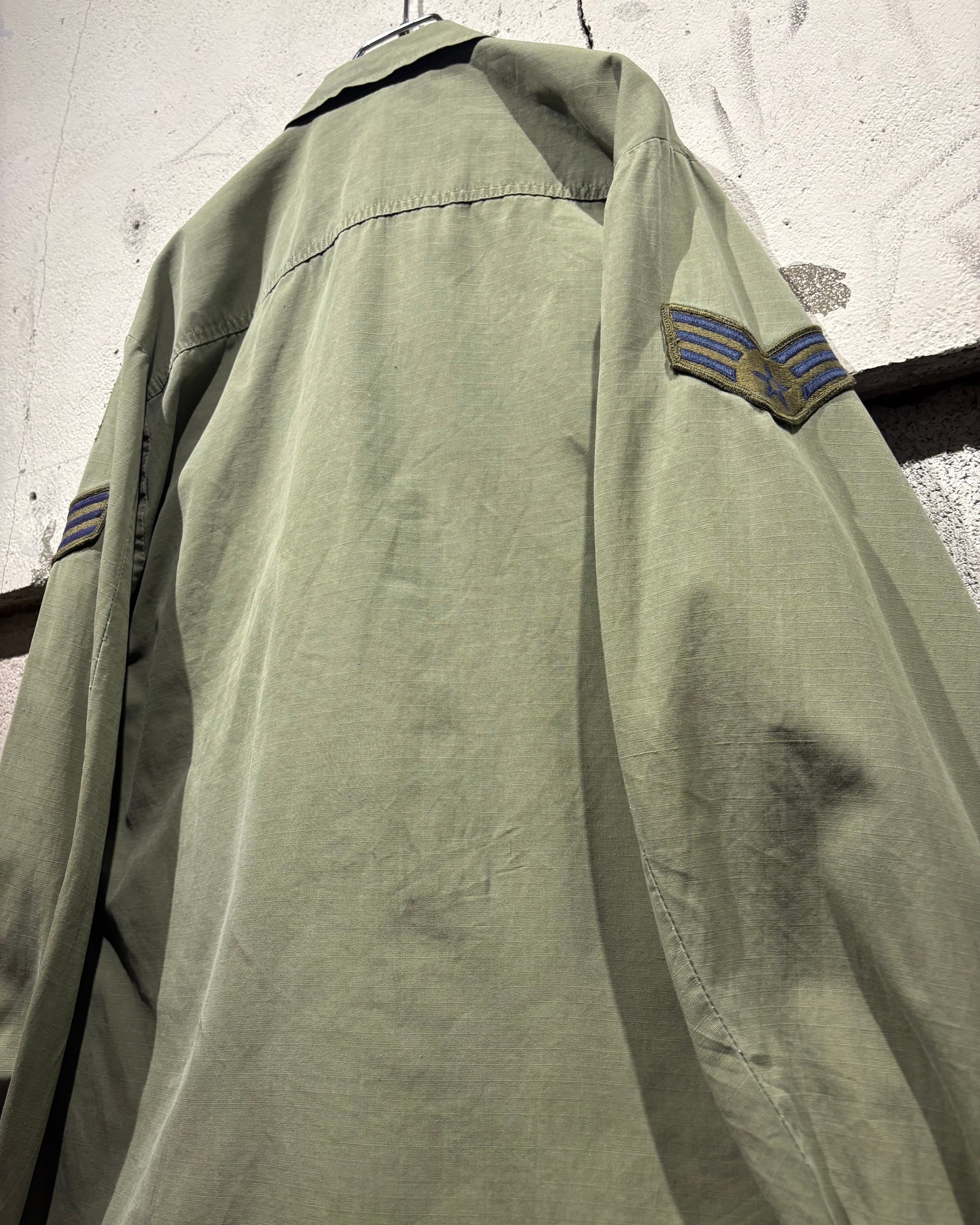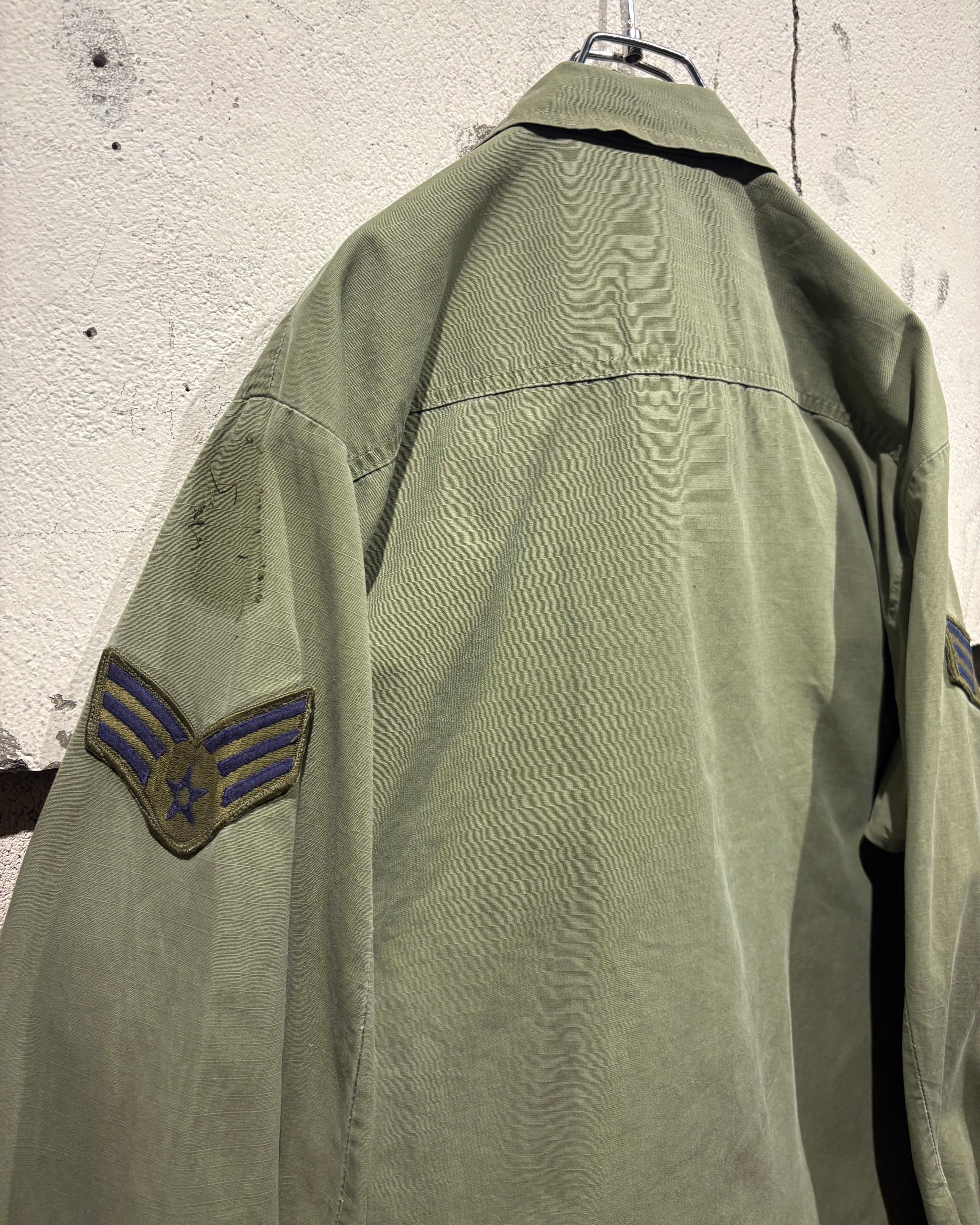 フロントには4つのフラップポケット、胸元にはU.S. AIR FORCEのネームテープ。さらに各種ワッペンやスリーブの階級章が残り、当時の背景を想像できる醍醐味も。