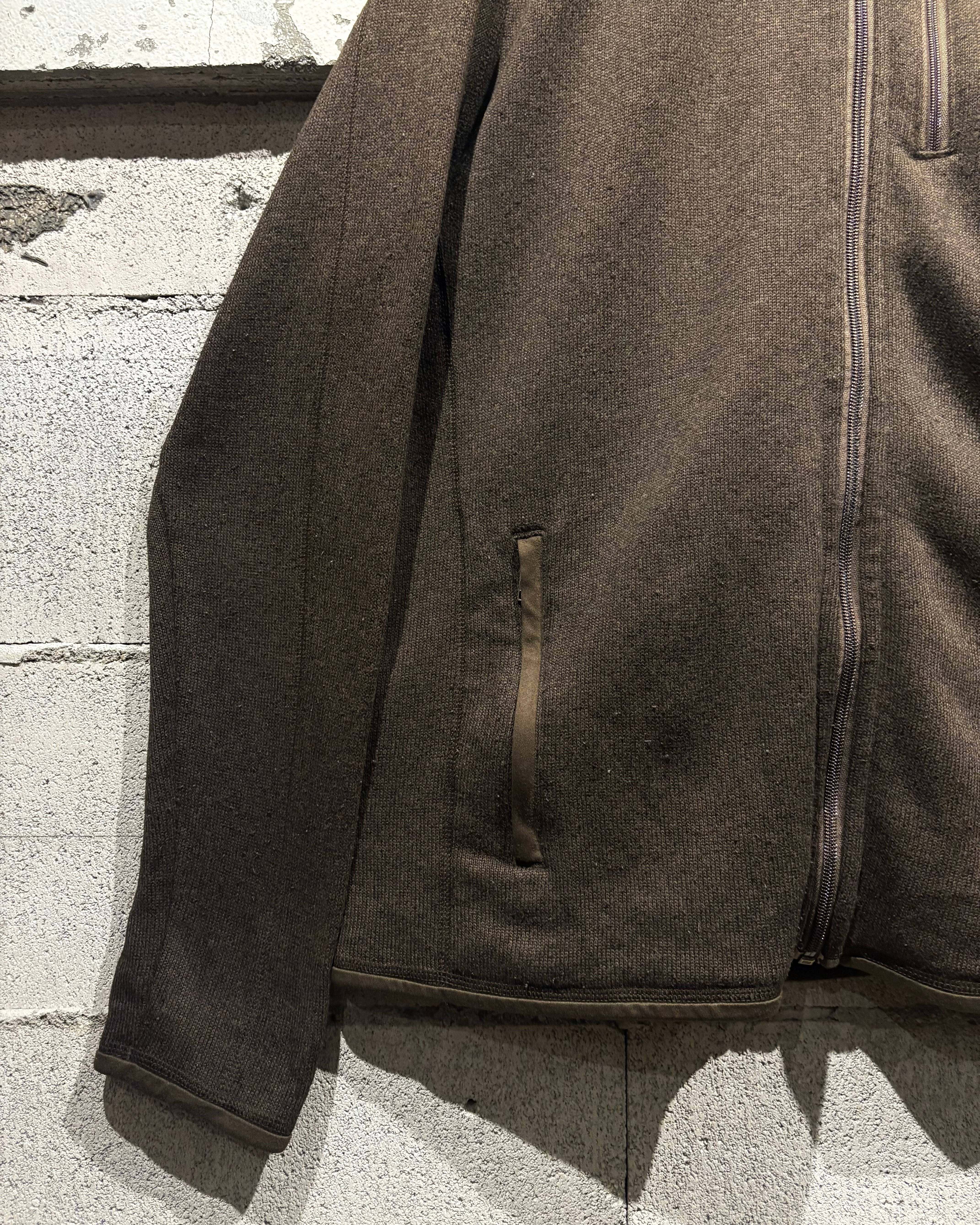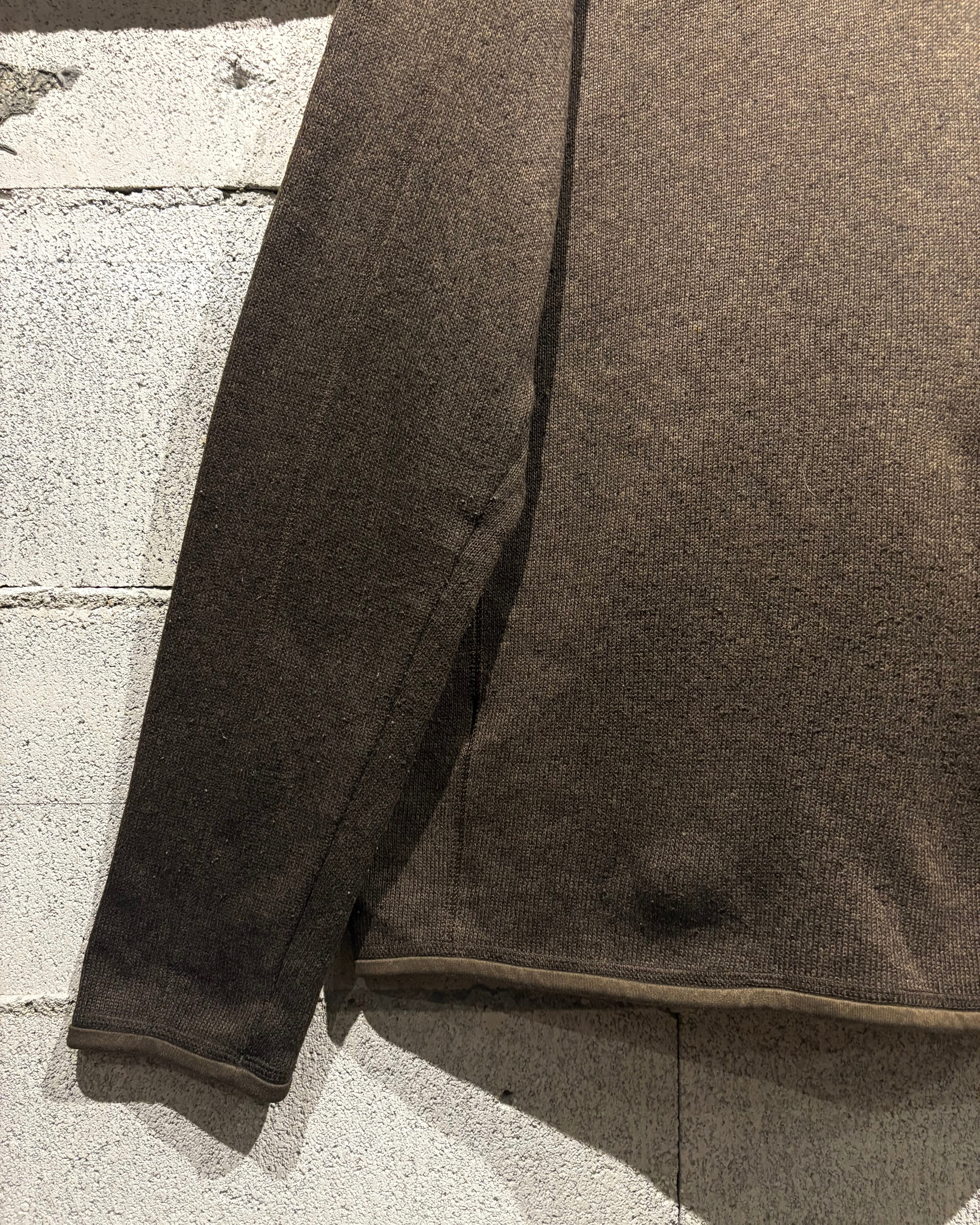 一見ウールニットのような表情を持ちながら、内側にはポリエステルフリースを採用。適度な肉感としなやかさを兼ね備え、軽量ながらもしっかりとした保温性が特徴的な1着です。