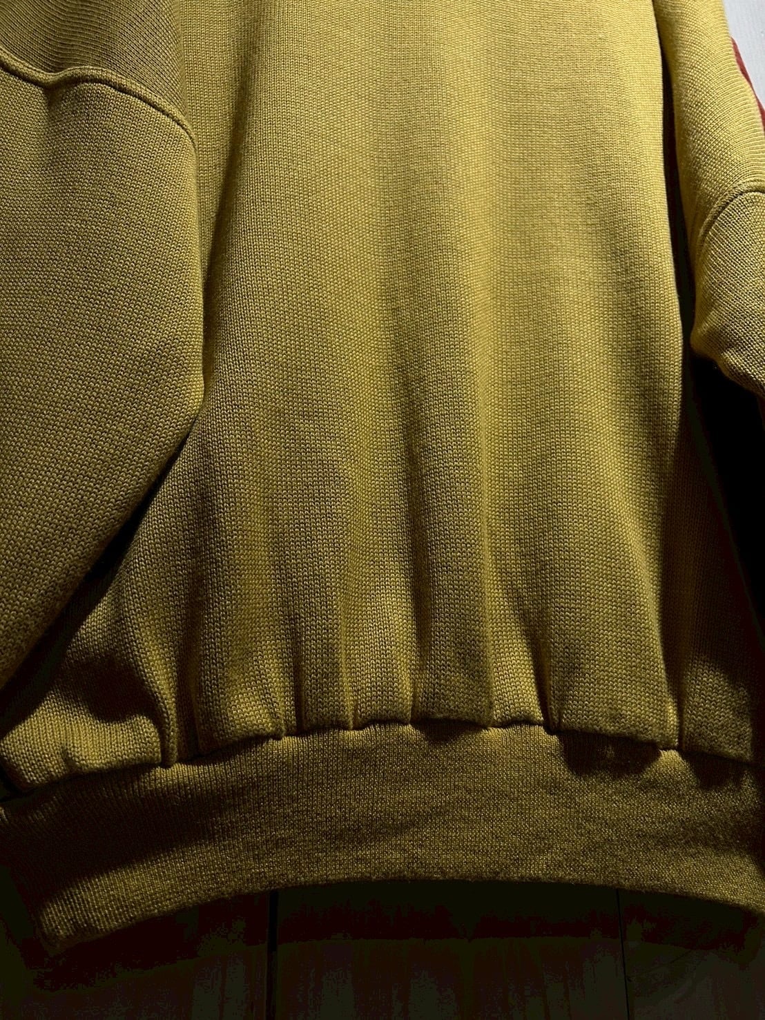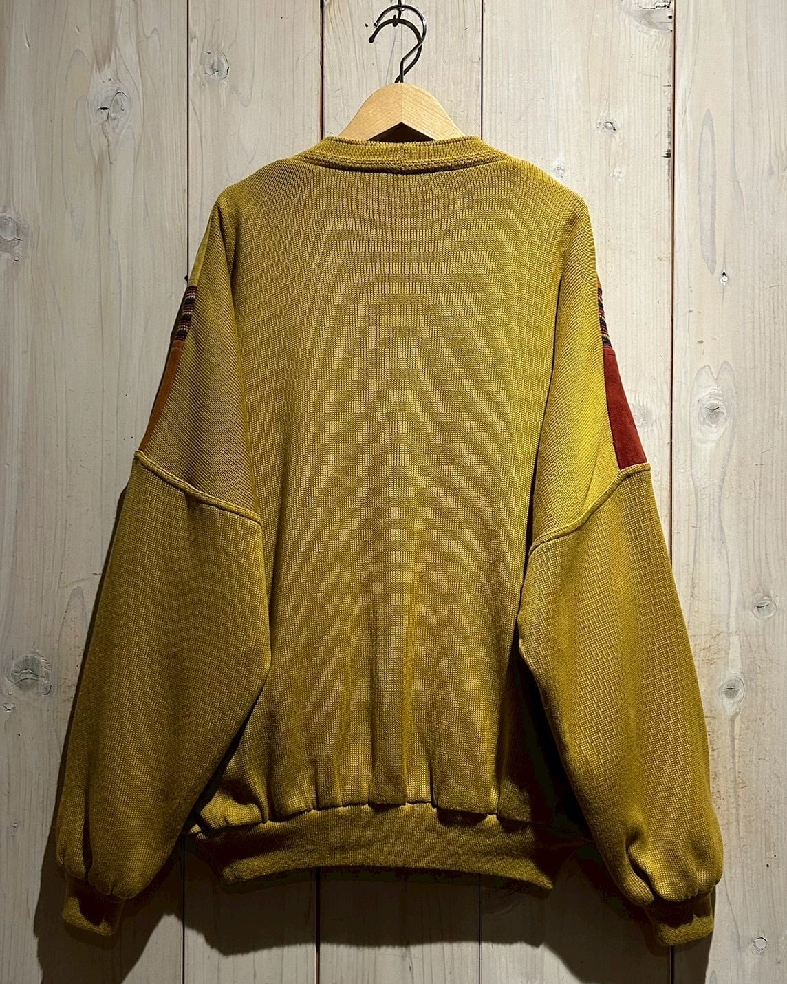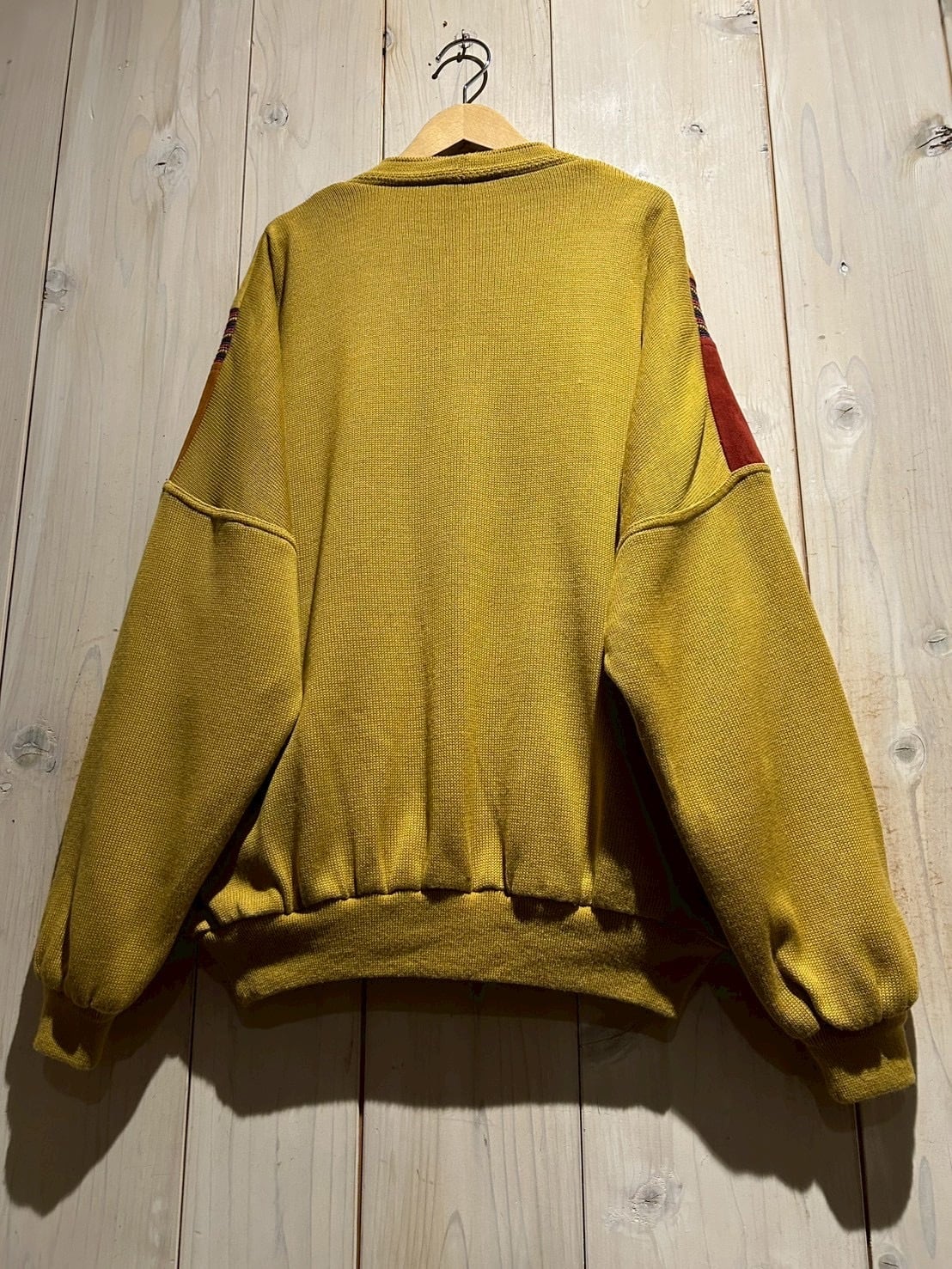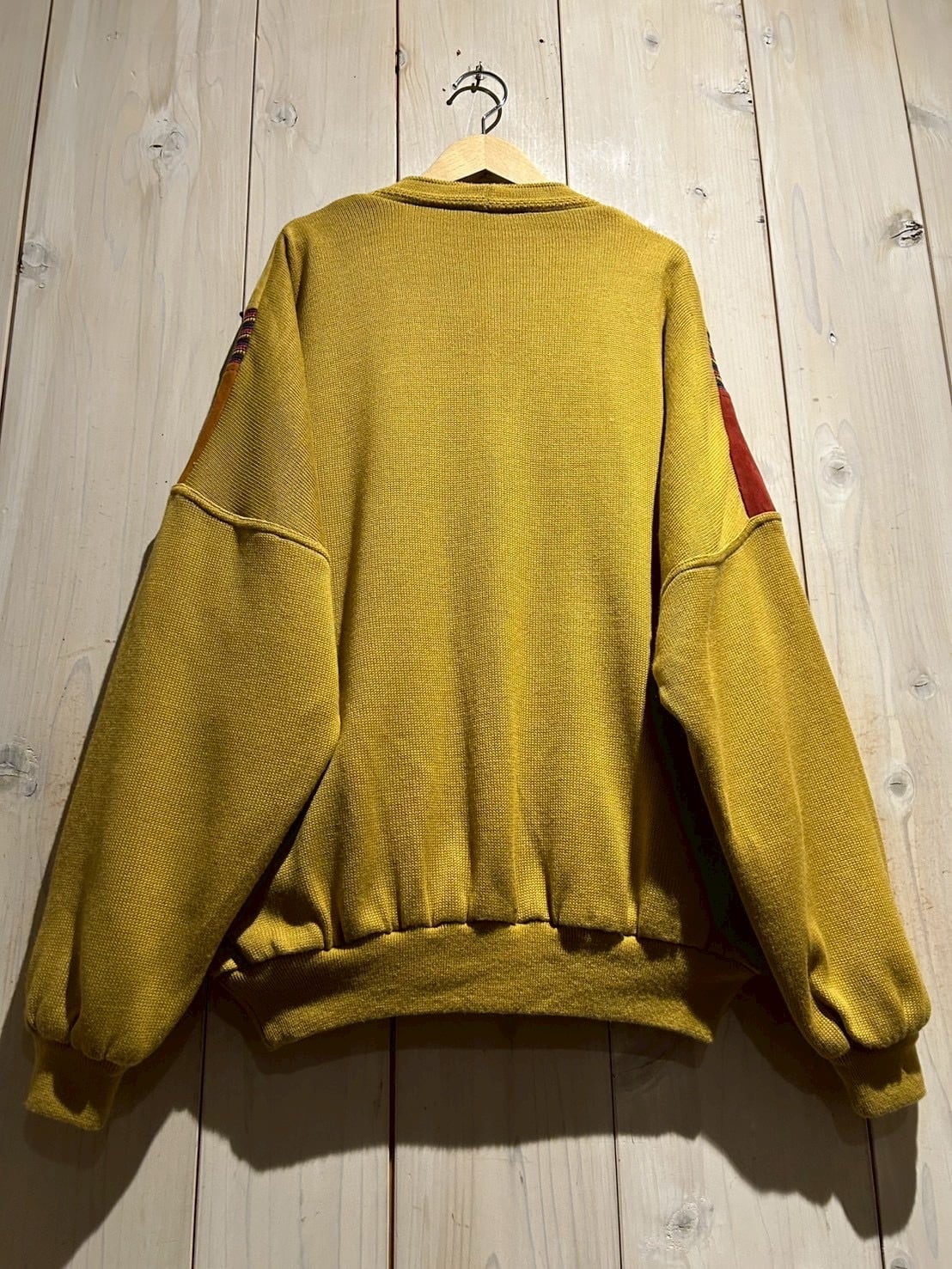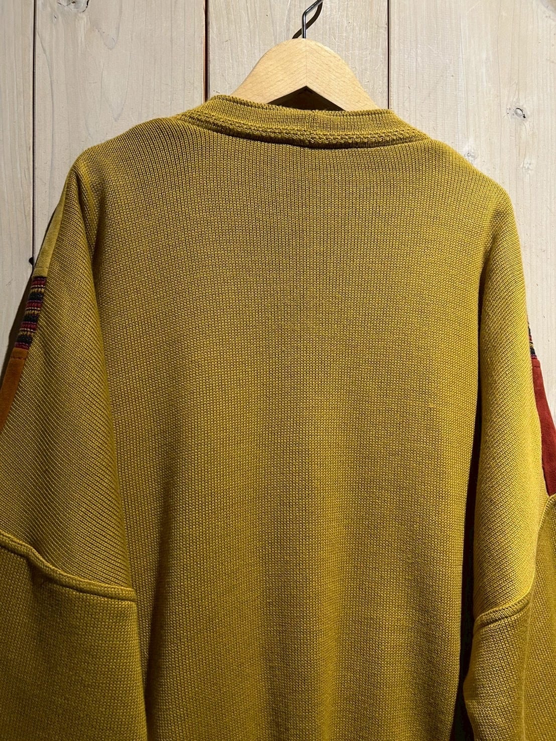 さらにカラフルなニットを挟み込むことで、立体的かつ奥行きのある表情へと仕上げられています。ニットの柔らかさとスエードの起毛感、そのコントラストが非常に秀逸です。