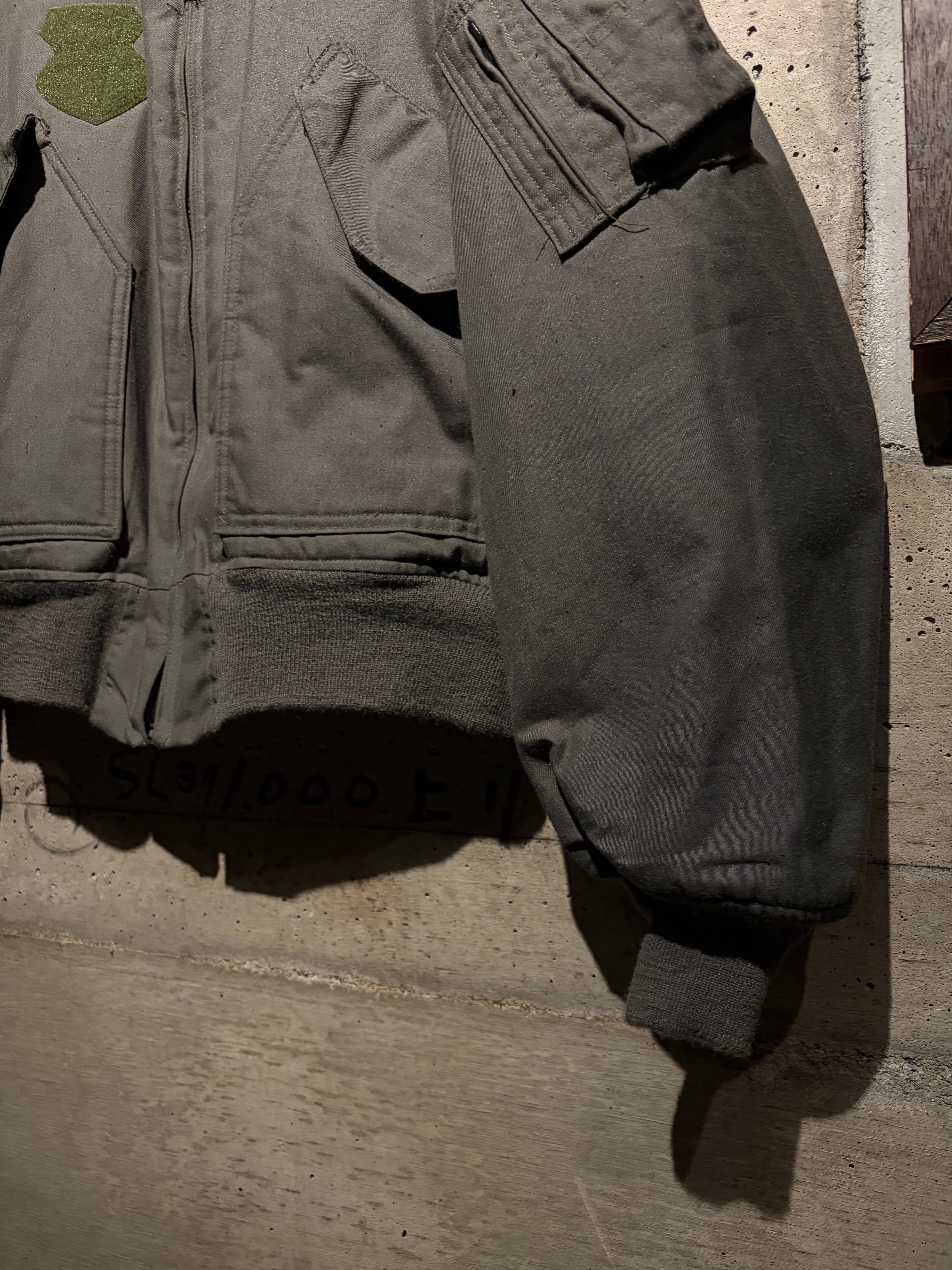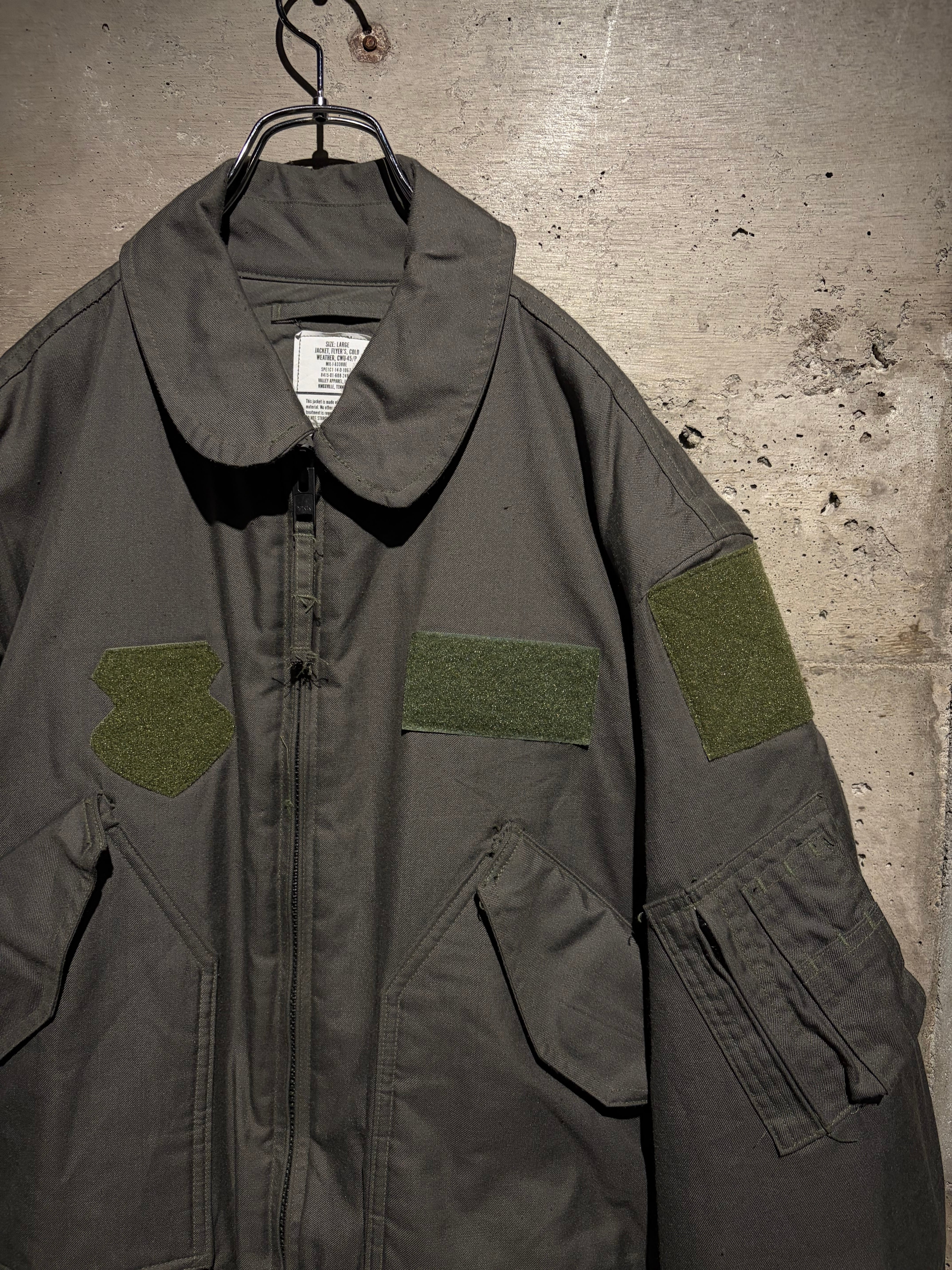フロントのポケット、胸元のベルクロパッチ、アーム部分のユーティリティポケットなど、CWU-45/Pならではのディテール。リブ付きの袖、裾が風の侵入を防ぐと共に抜群のシルエットを演出し、実用性の高さも申し分ありません。