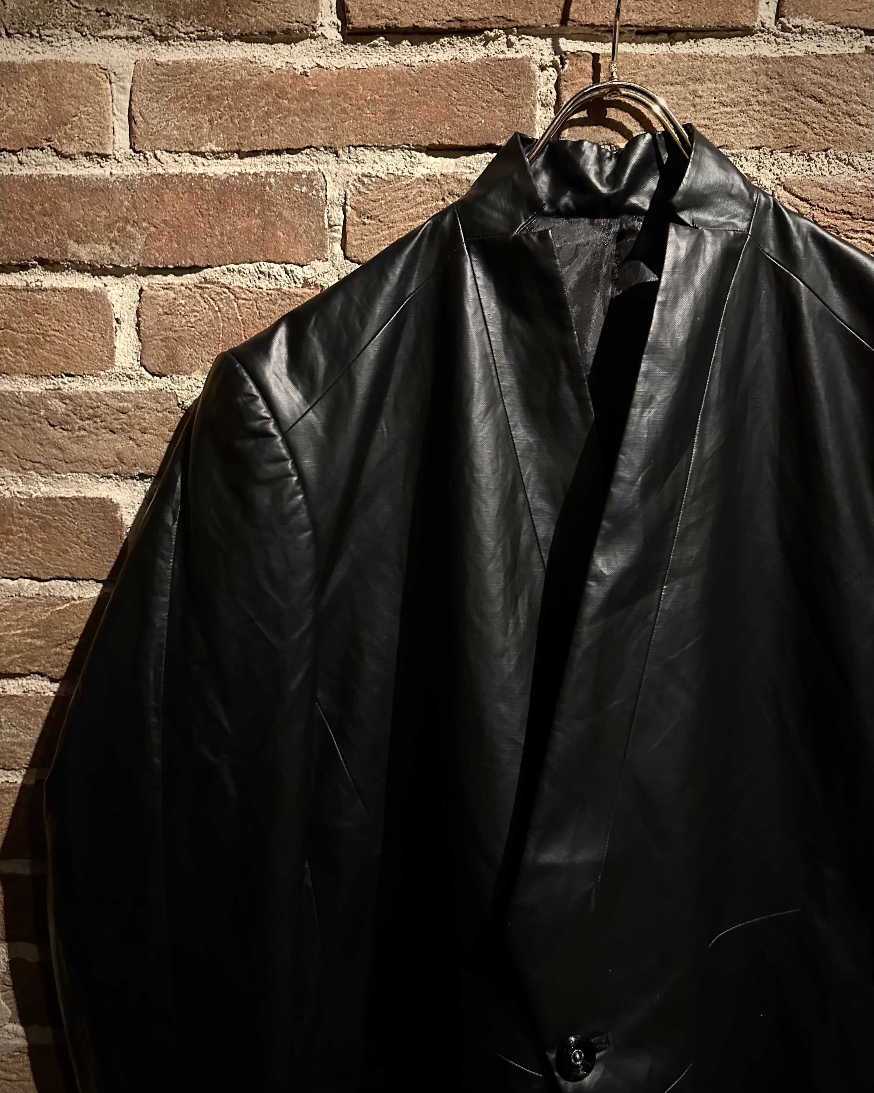 ハリと独特な光沢を放つファブリックを用い、柔道着をソースに仕上げられたテーラードジャケット。