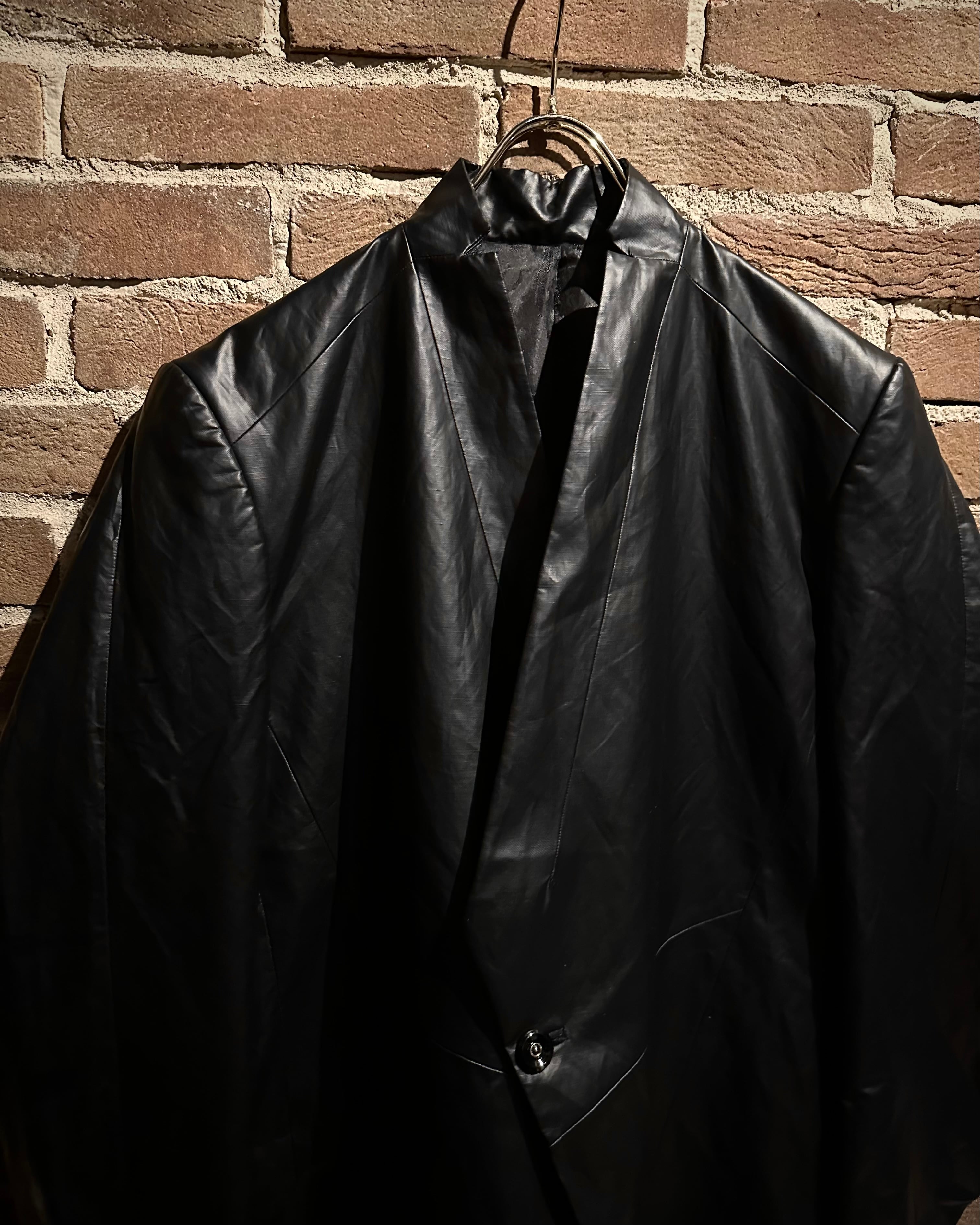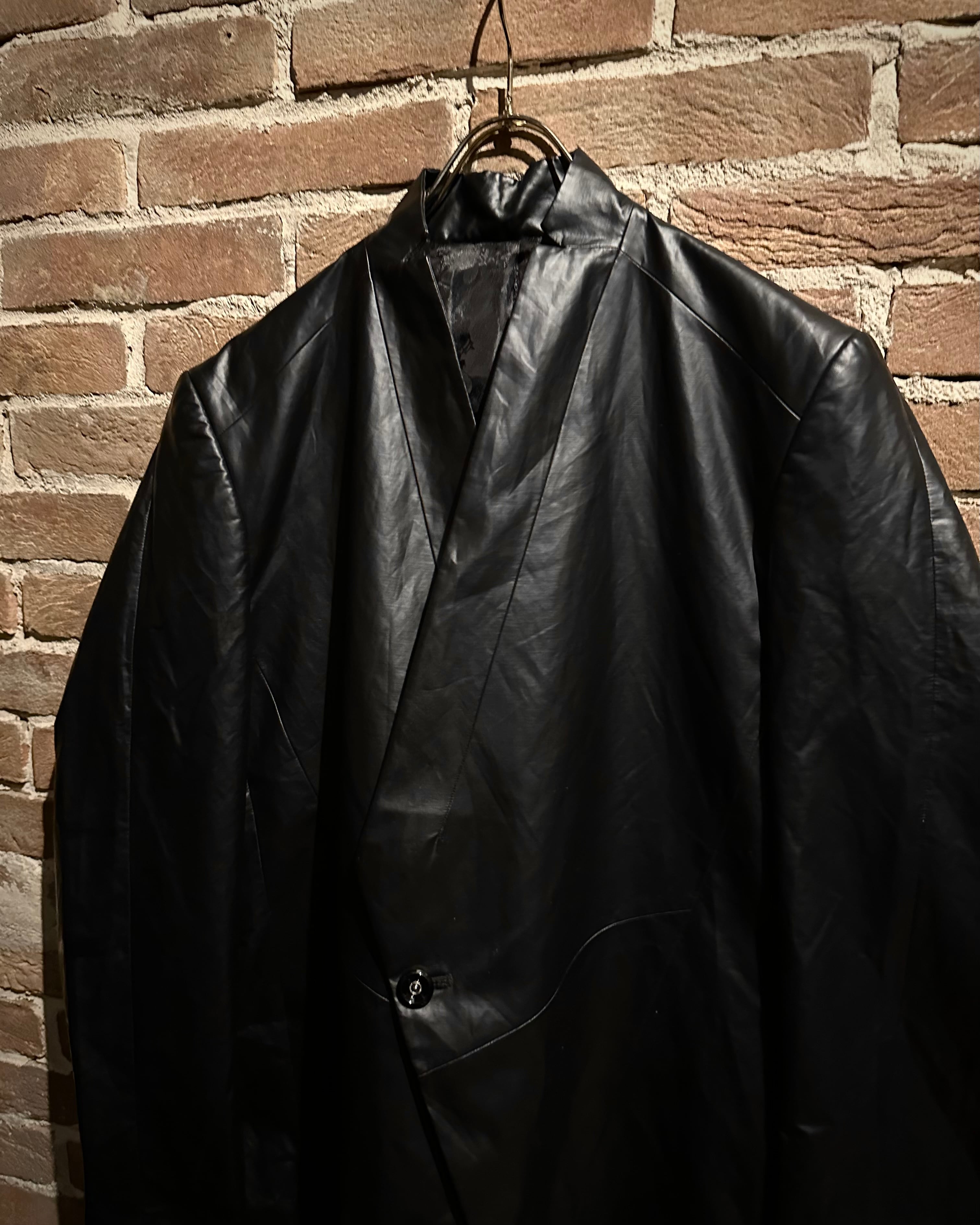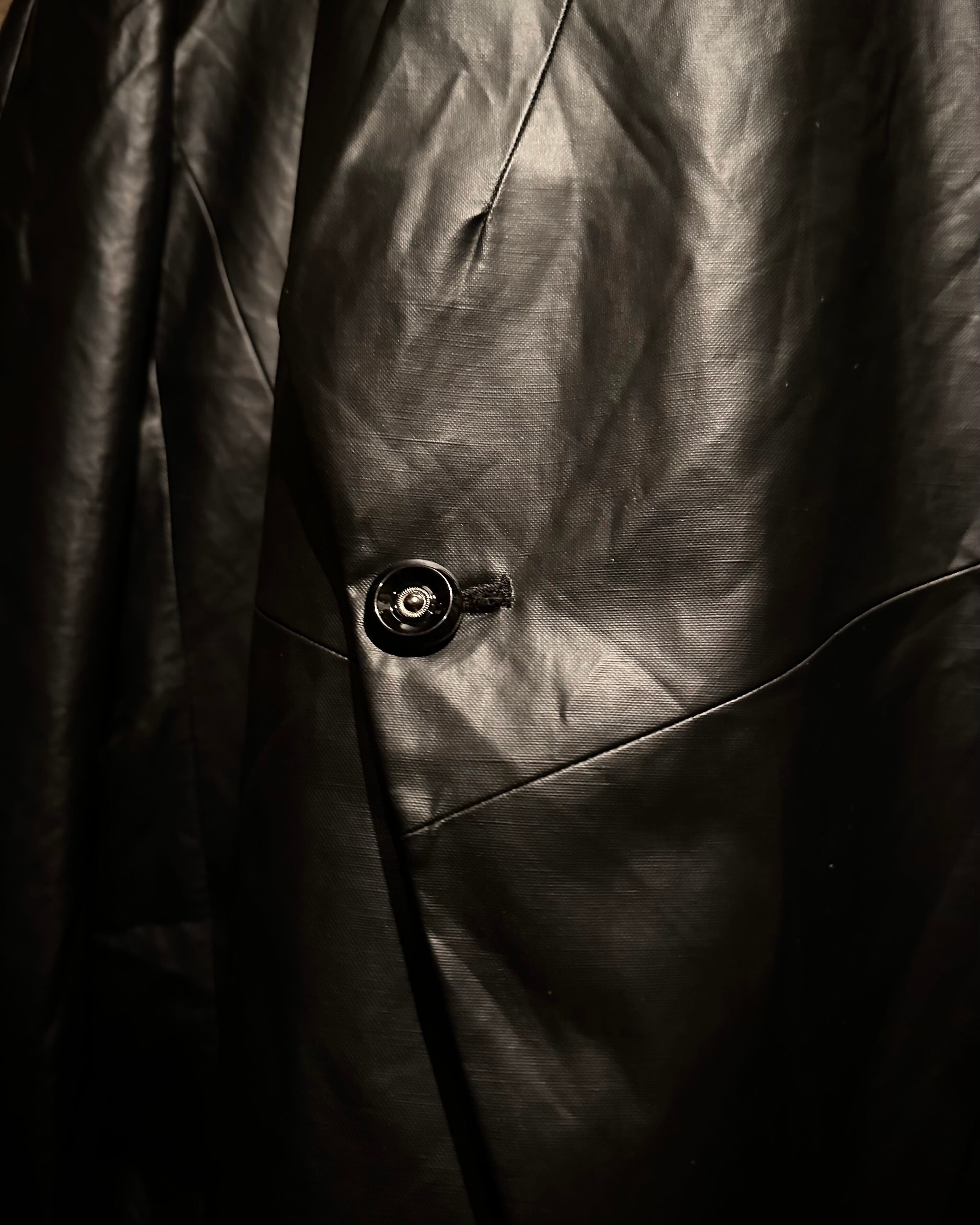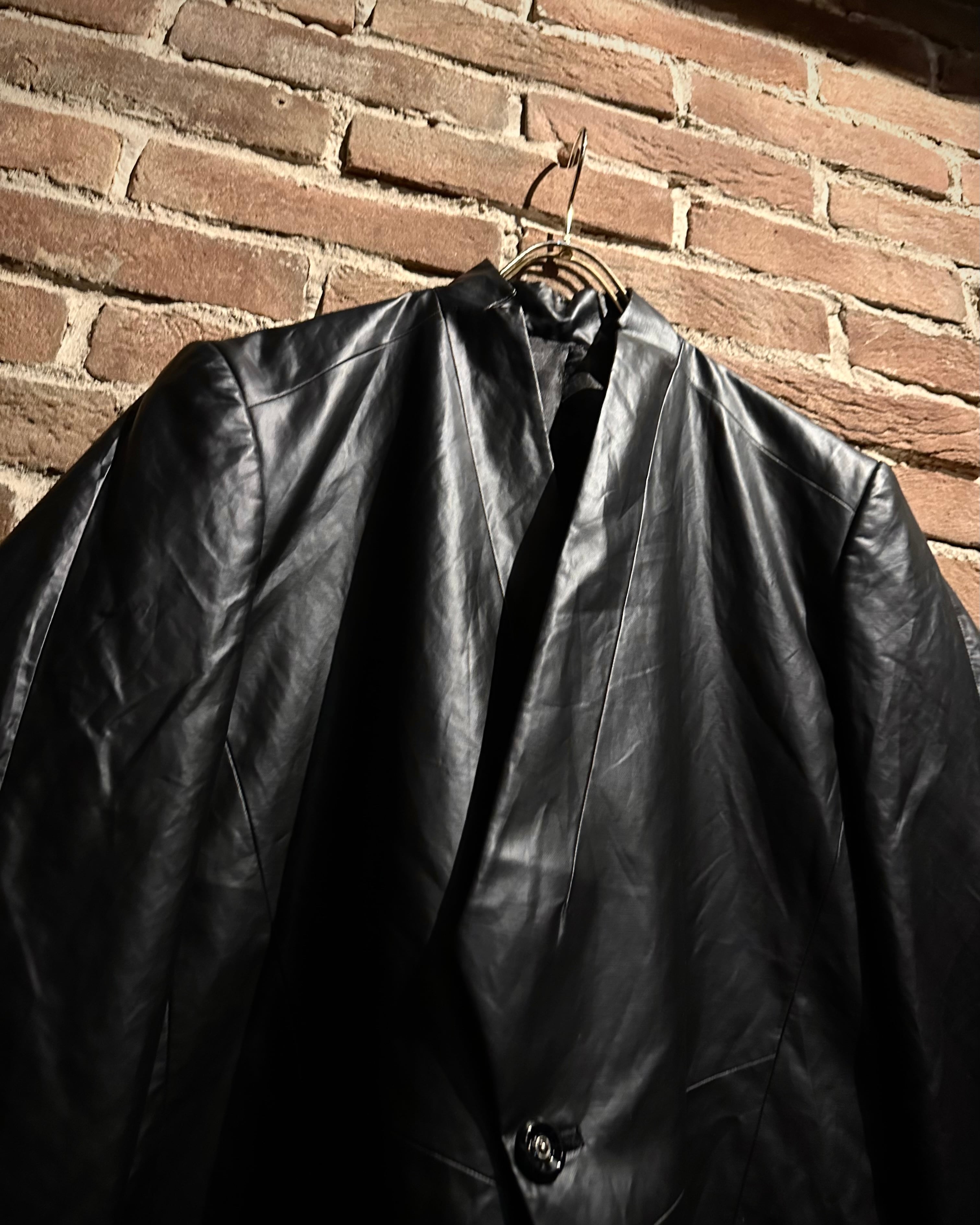 マットと艶の狭間を行き来するブラックの表情。しなやかでありながら芯のある質感で、古着の枠組みに収まらないモードとストリートのエッセンスを感じさせます。