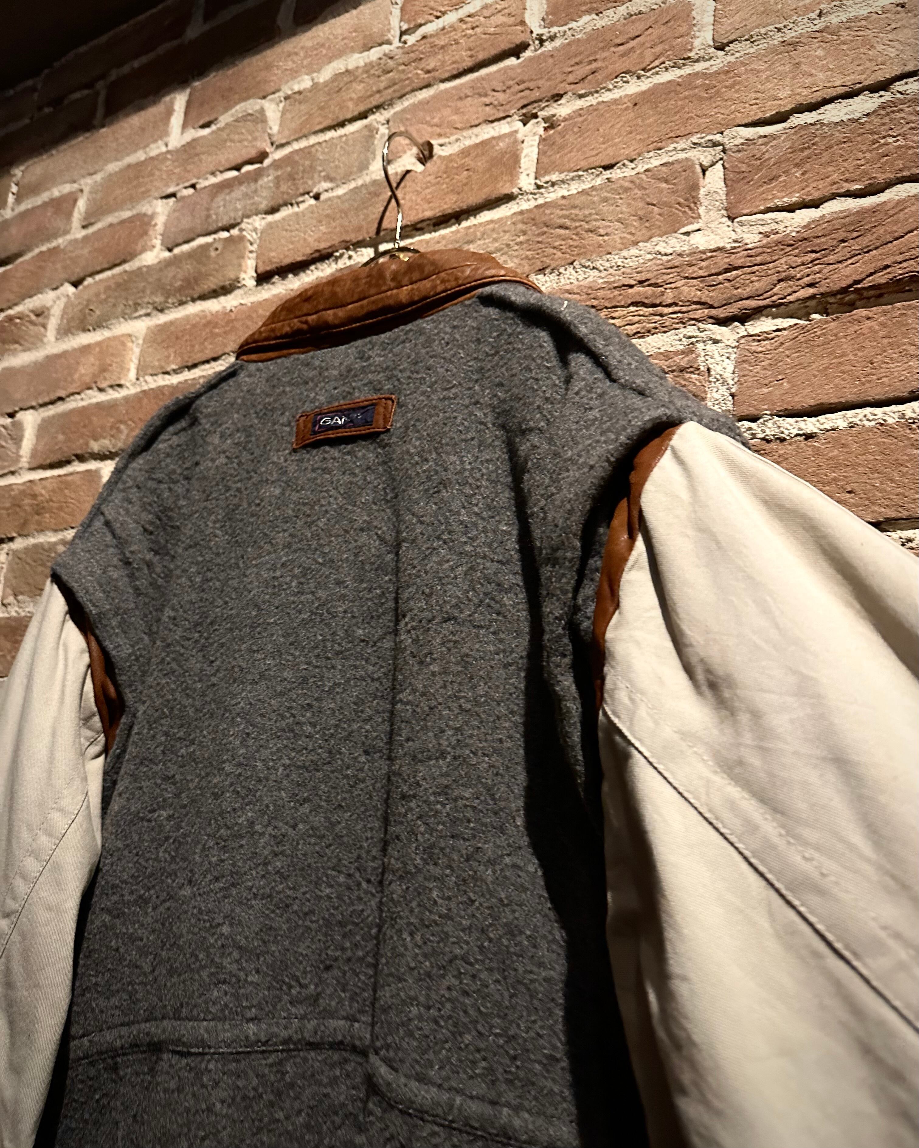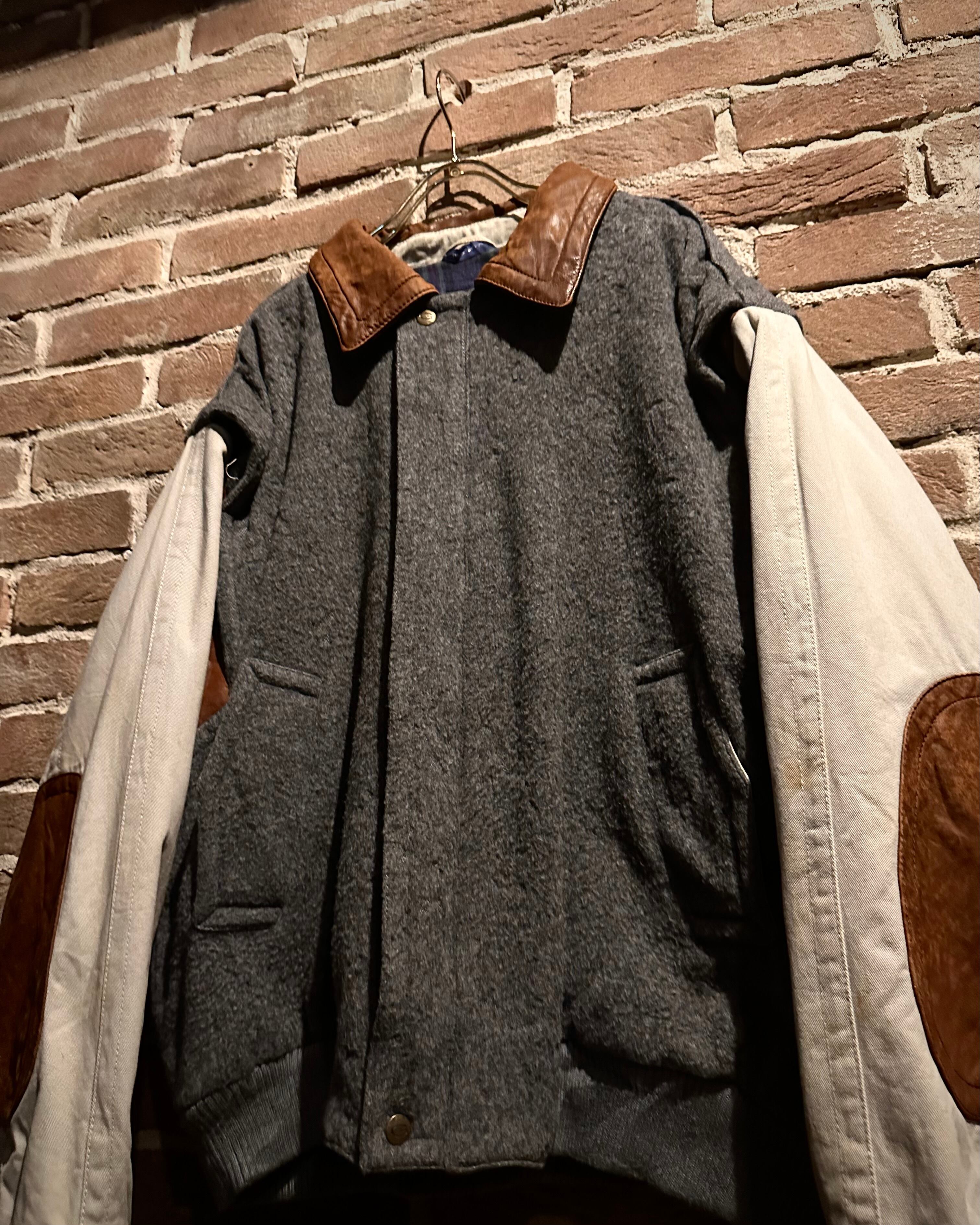ボディには肉厚で温かみのあるウールファブリックを採用し、柔らかな起毛感と奥行きあるグレーカラーがクラシックな佇まいを演出。襟や肩周り、エルボーパッチにはしなやかなリアルレザーをあしらい、経年変化による味わい深いブラウンの艶がアクセントに。袖はコットン地で切り替えられ、動きやすさもしっかりと計算されています。