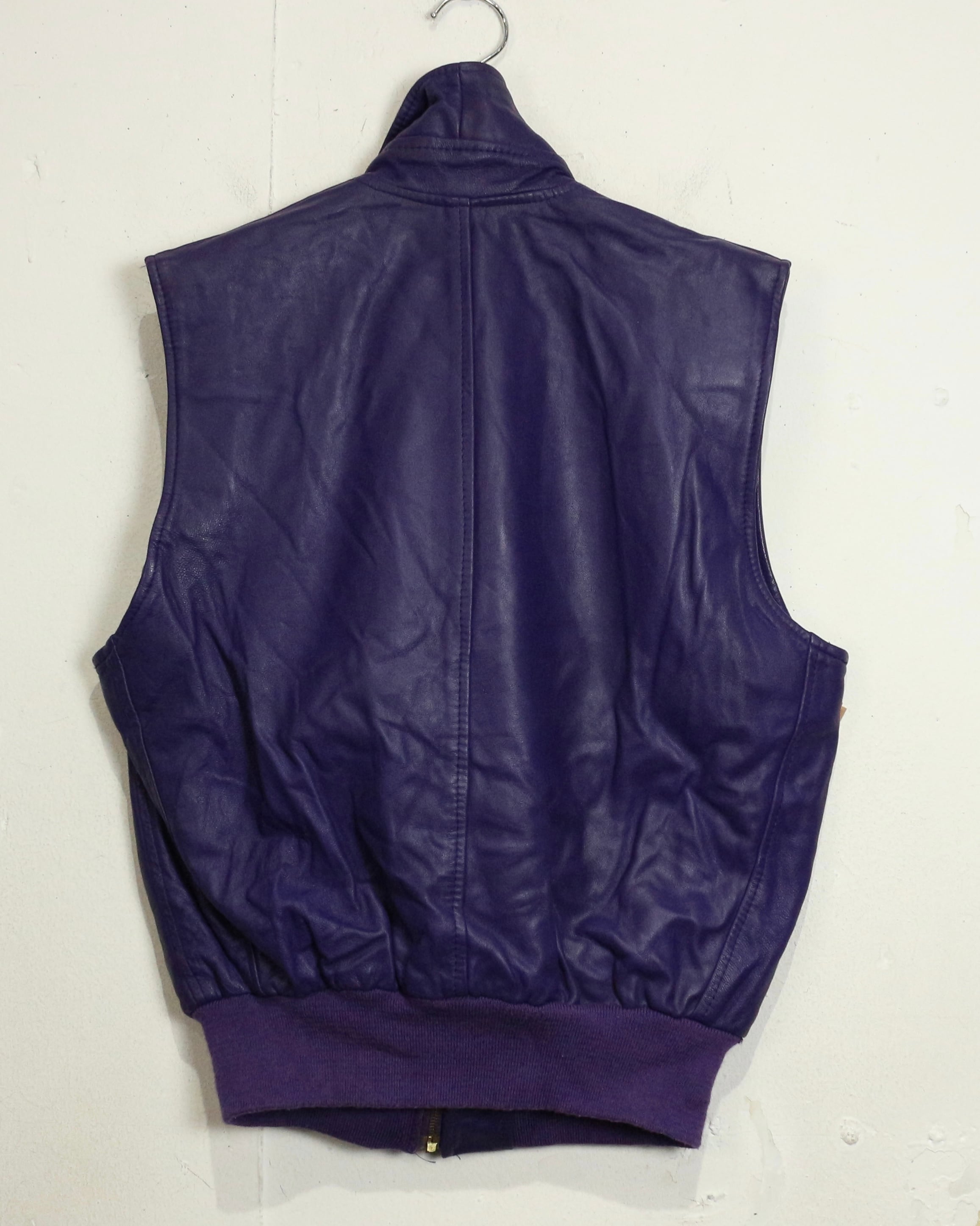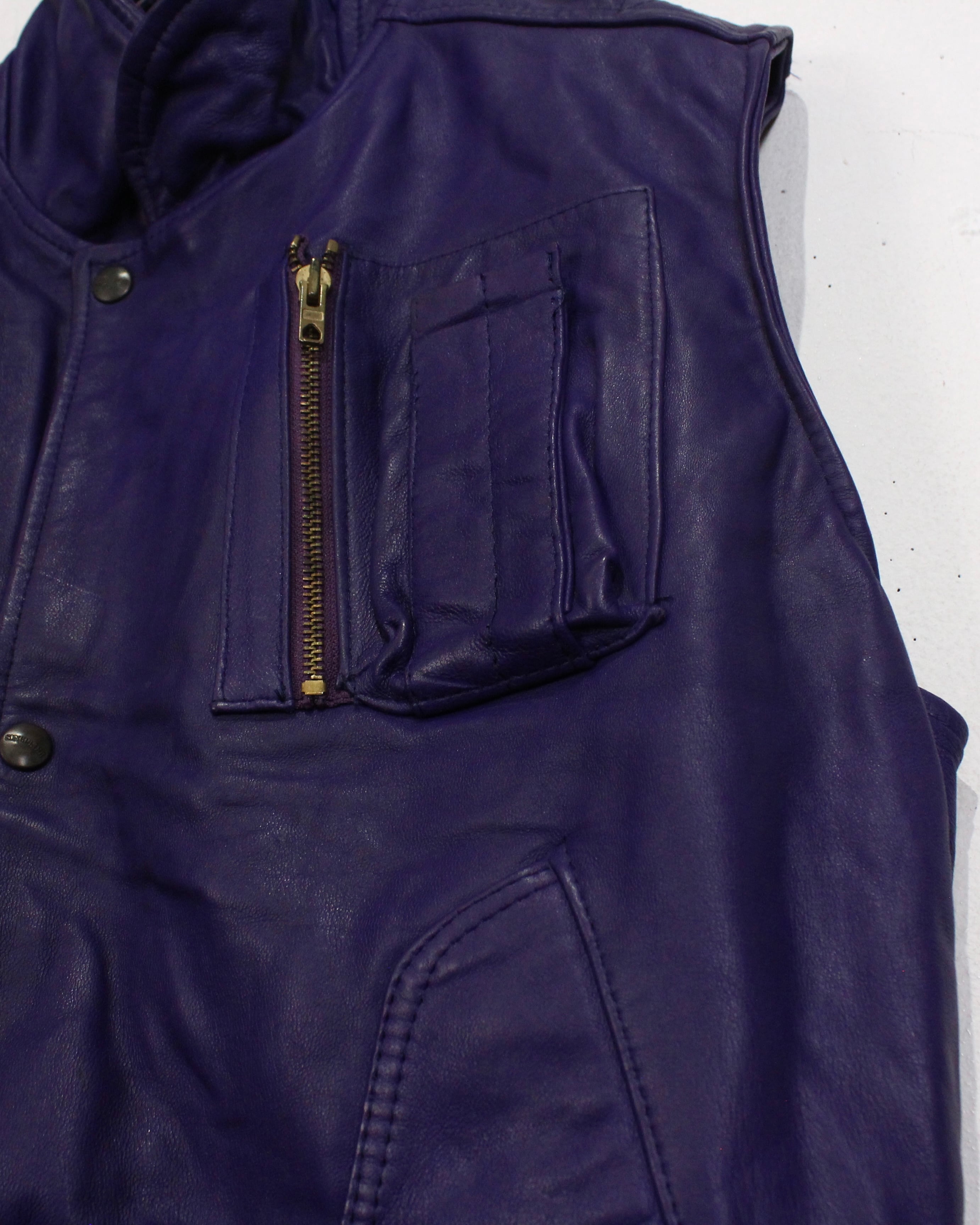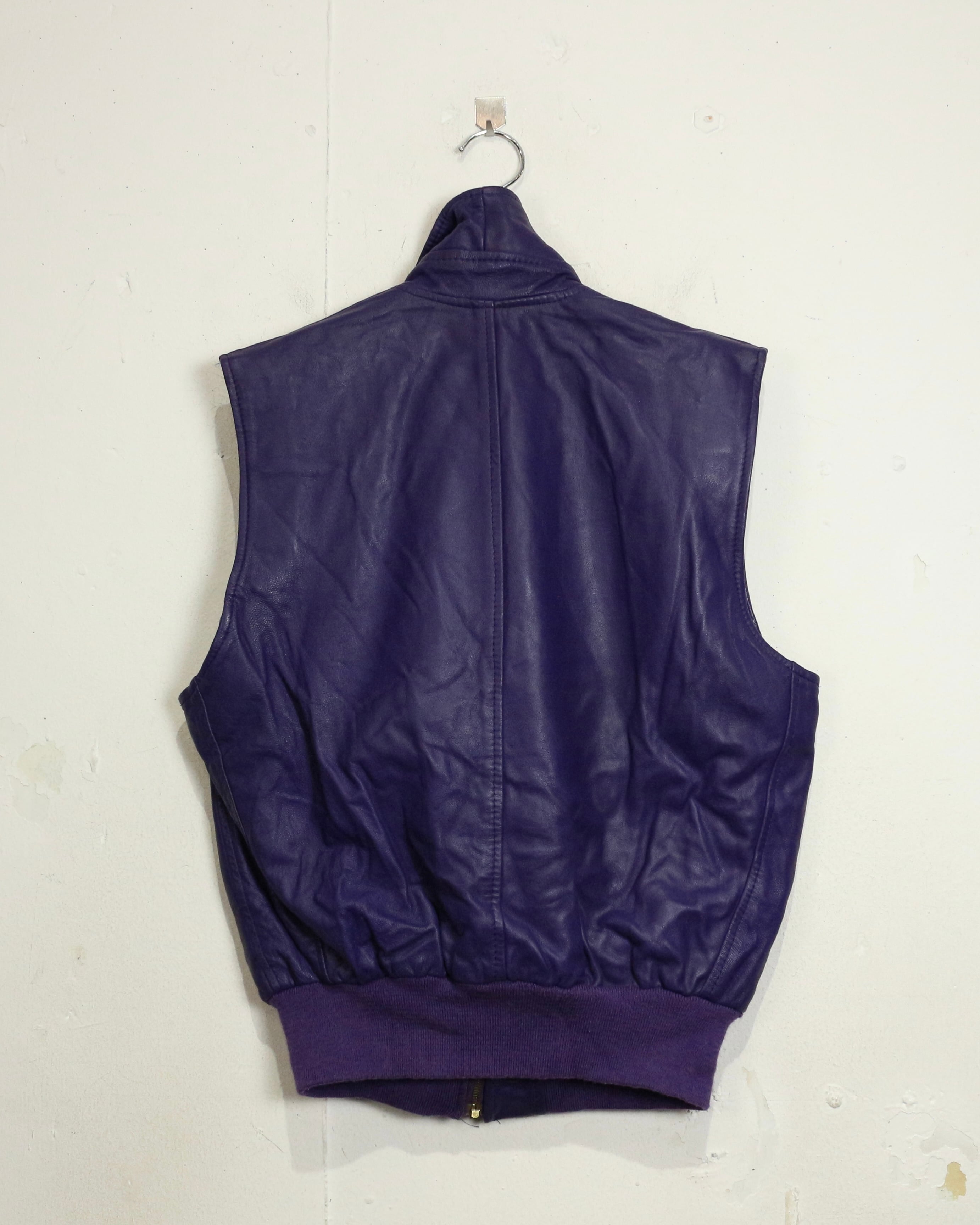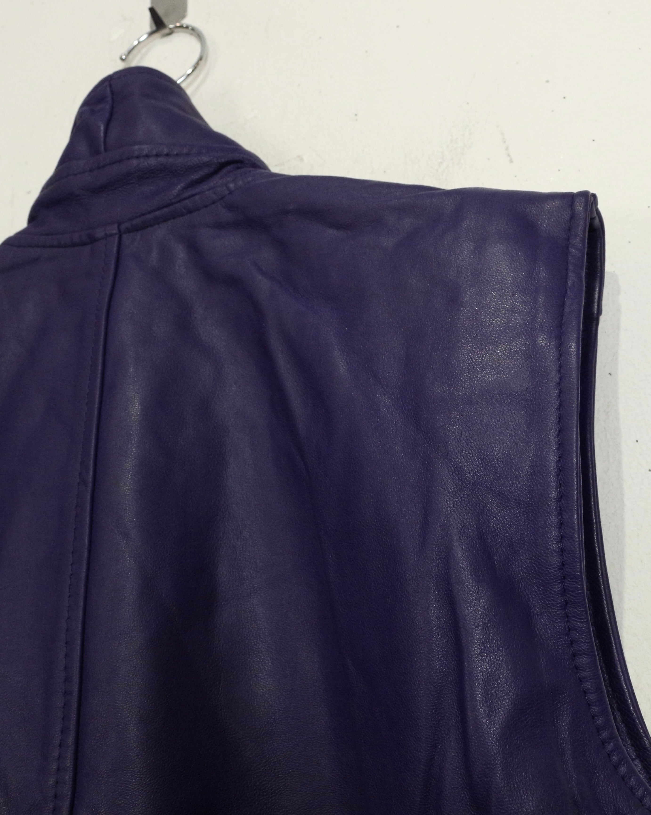 肉厚でしなやかなレザーを贅沢に使用した、発色の良いパープルレザーベスト。