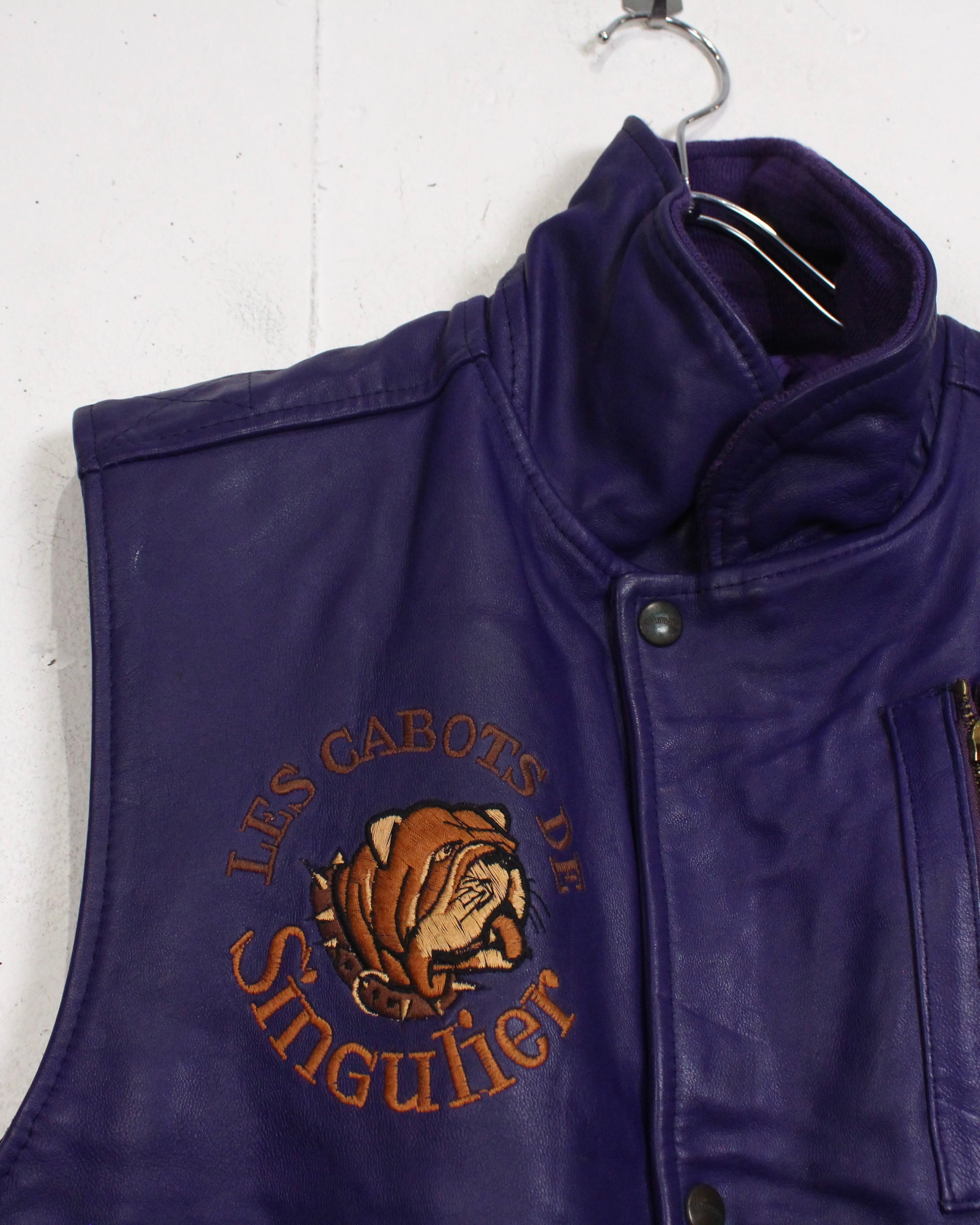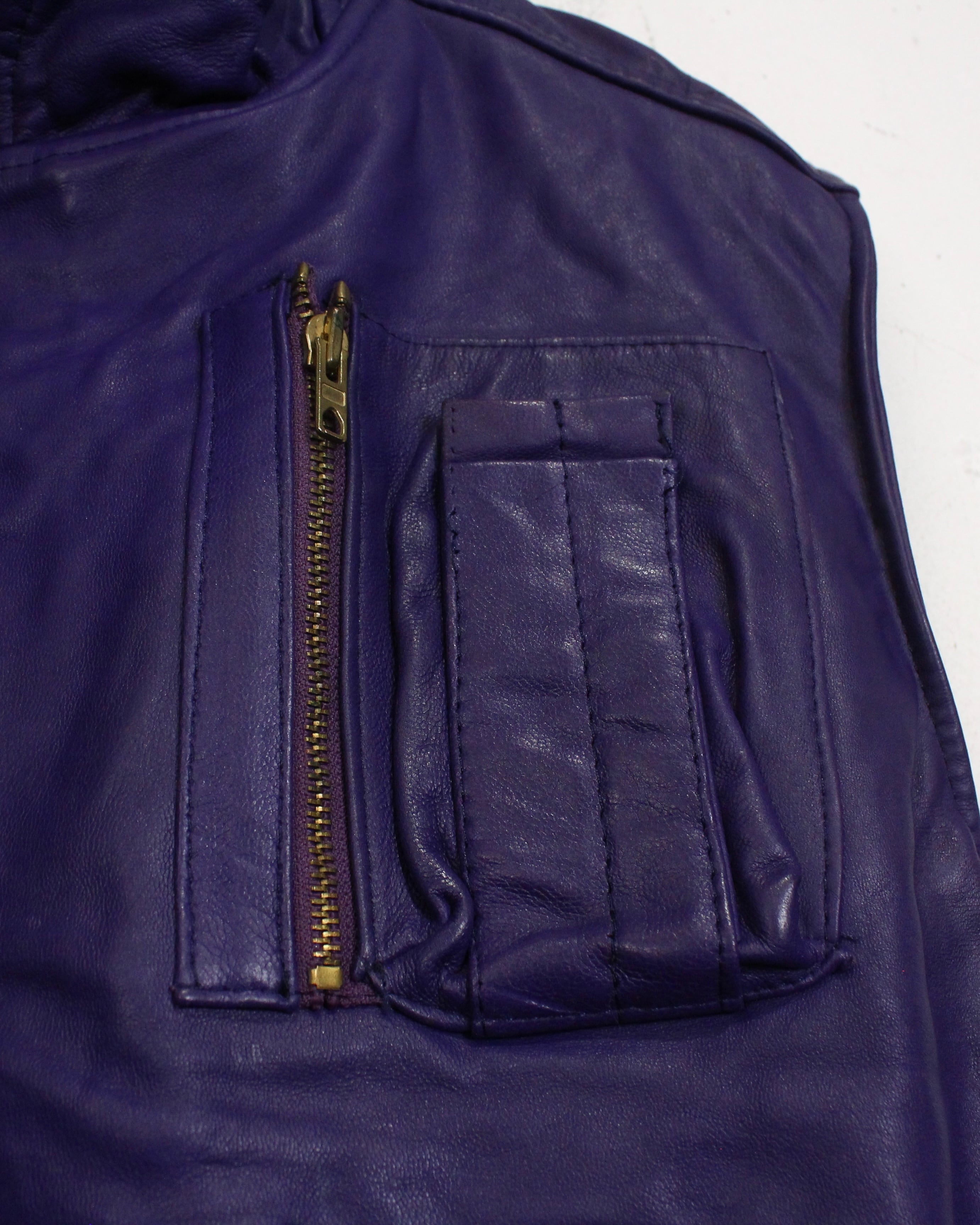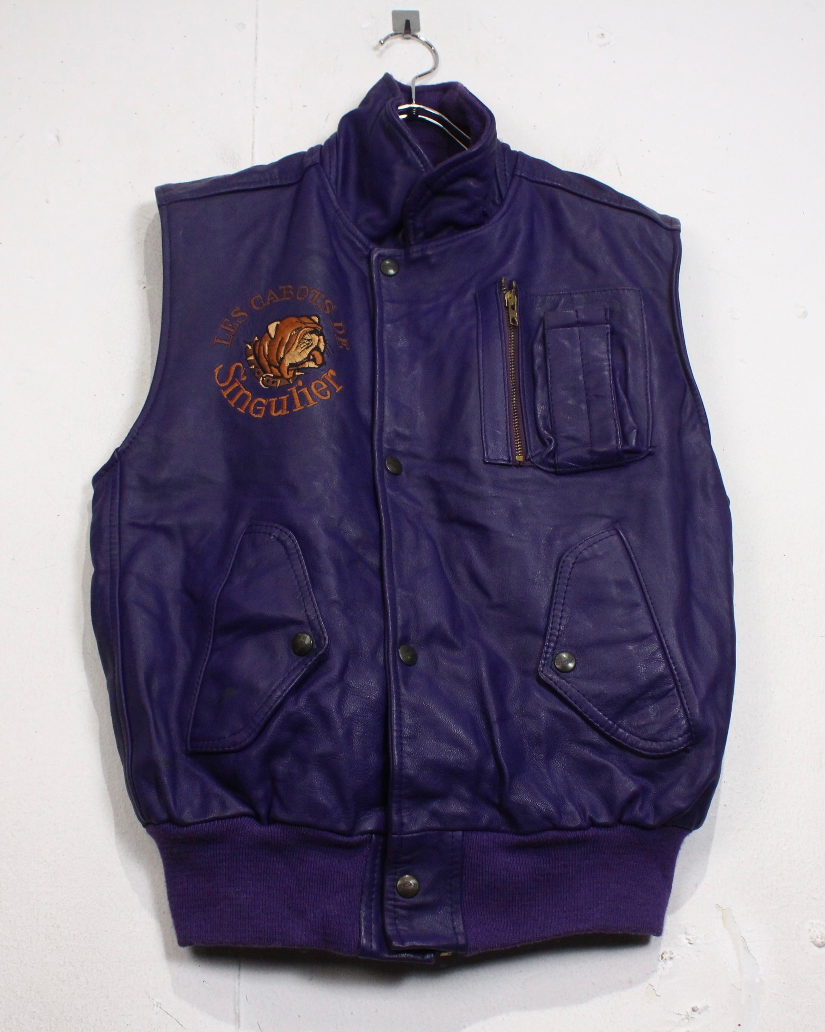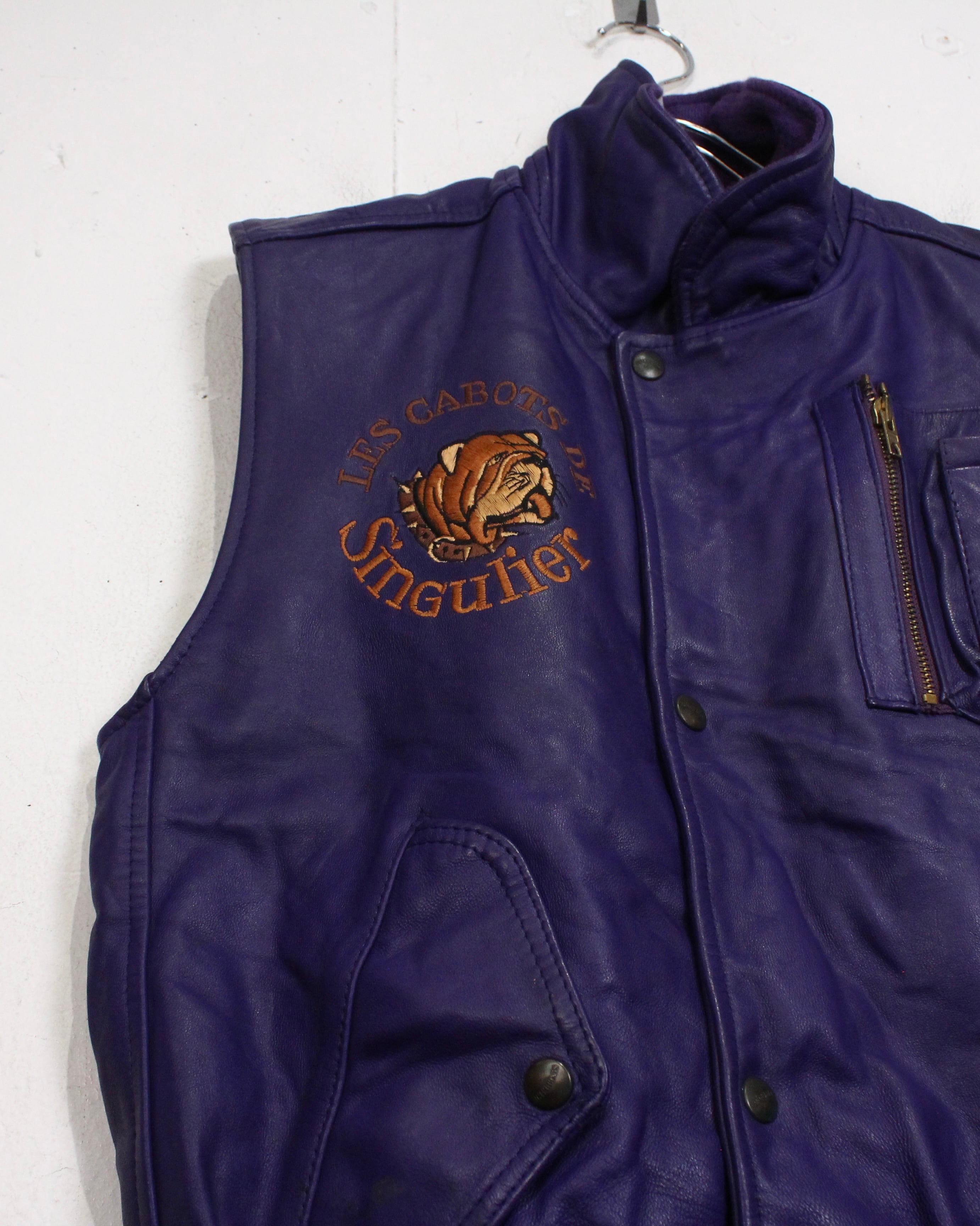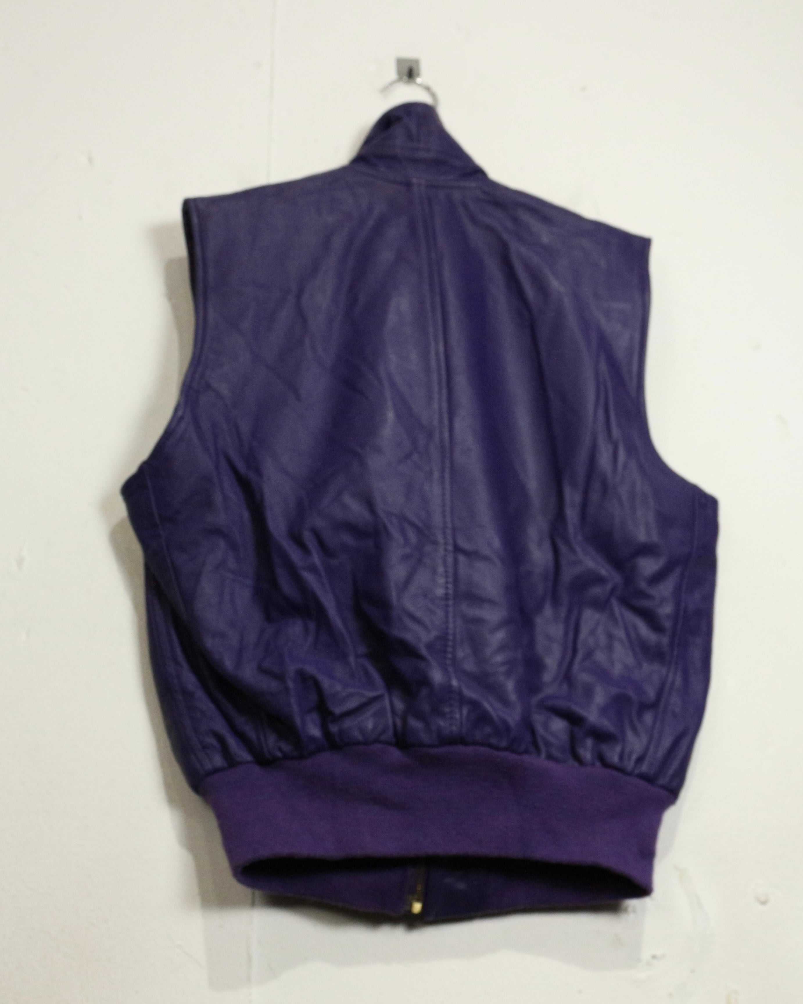 肉厚でしなやかなレザーを贅沢に使用した、発色の良いパープルレザーベスト。
