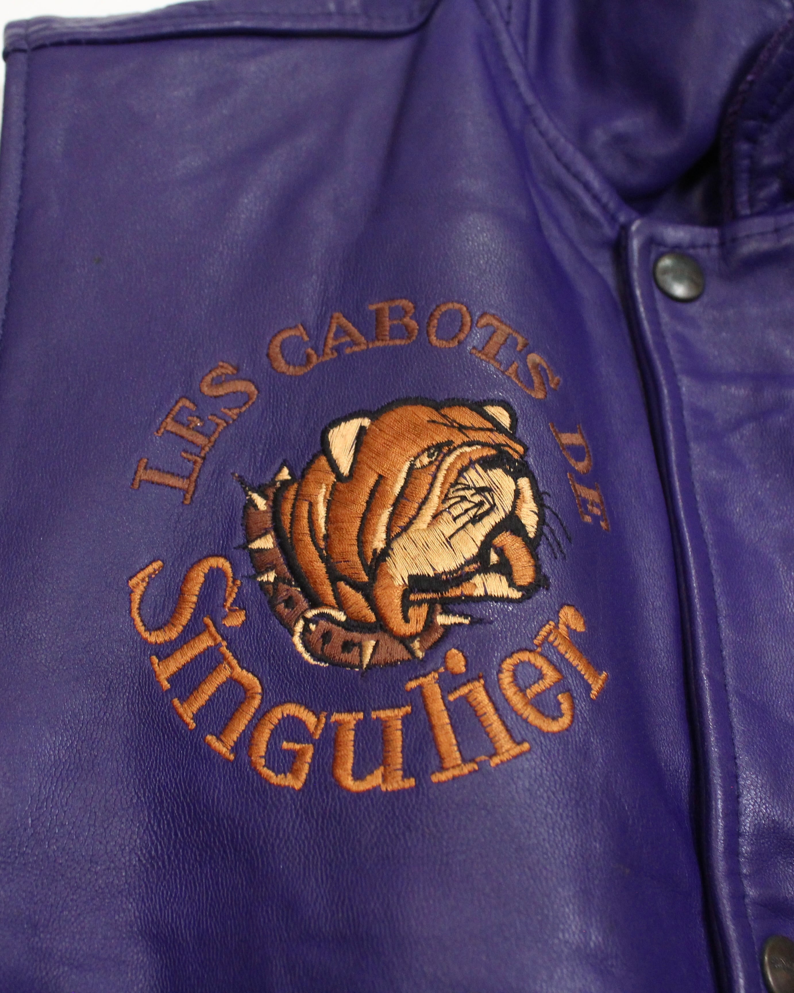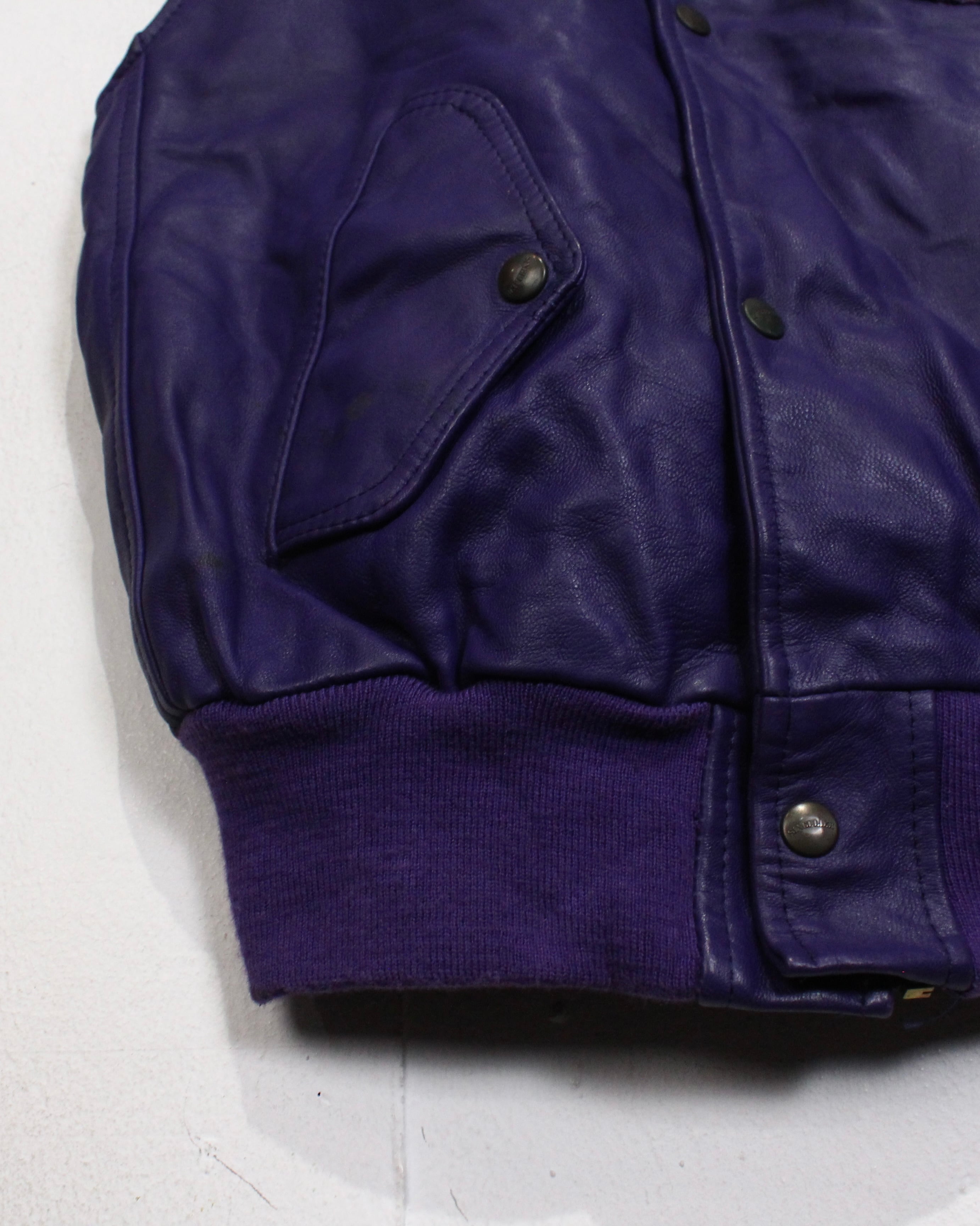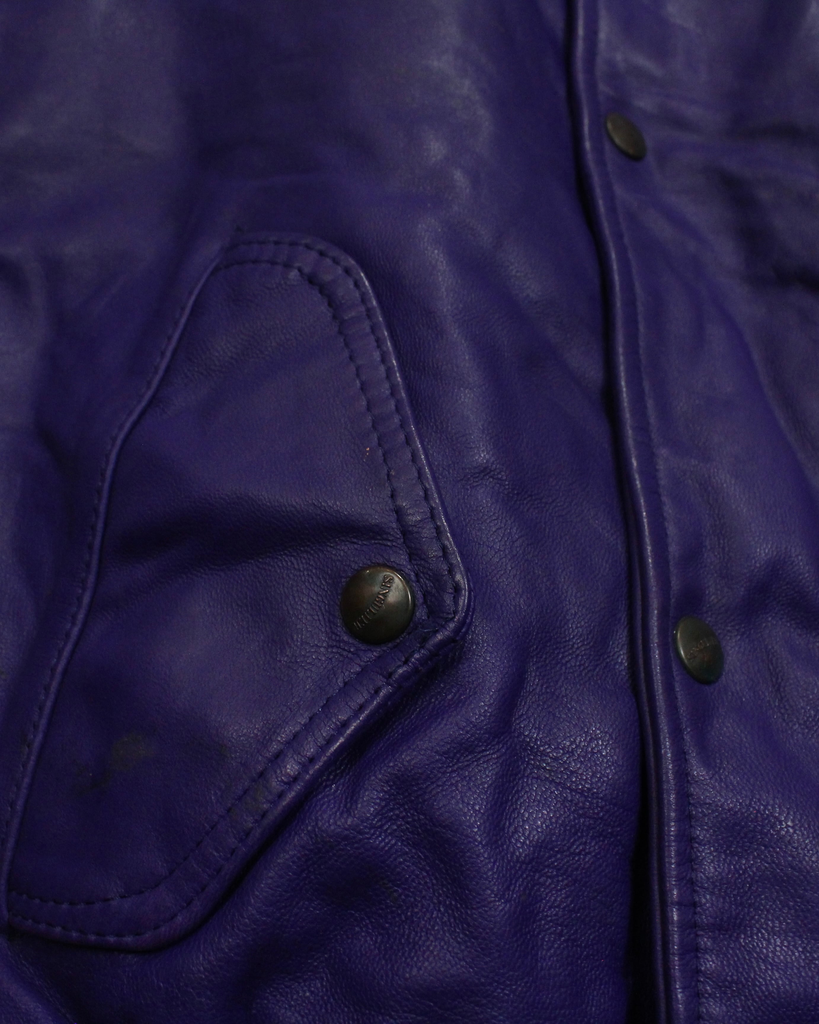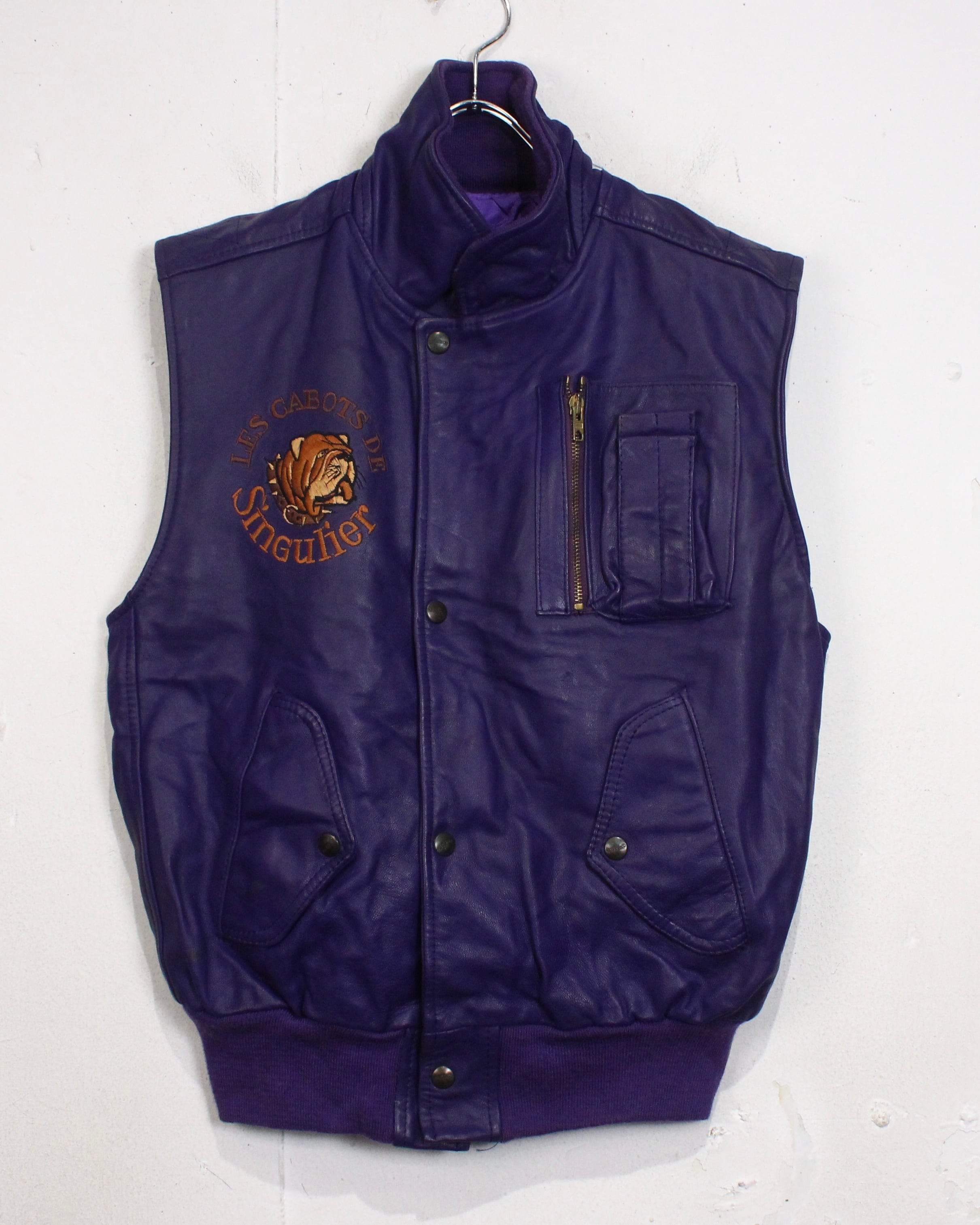 肉厚でしなやかなレザーを贅沢に使用した、発色の良いパープルレザーベスト。