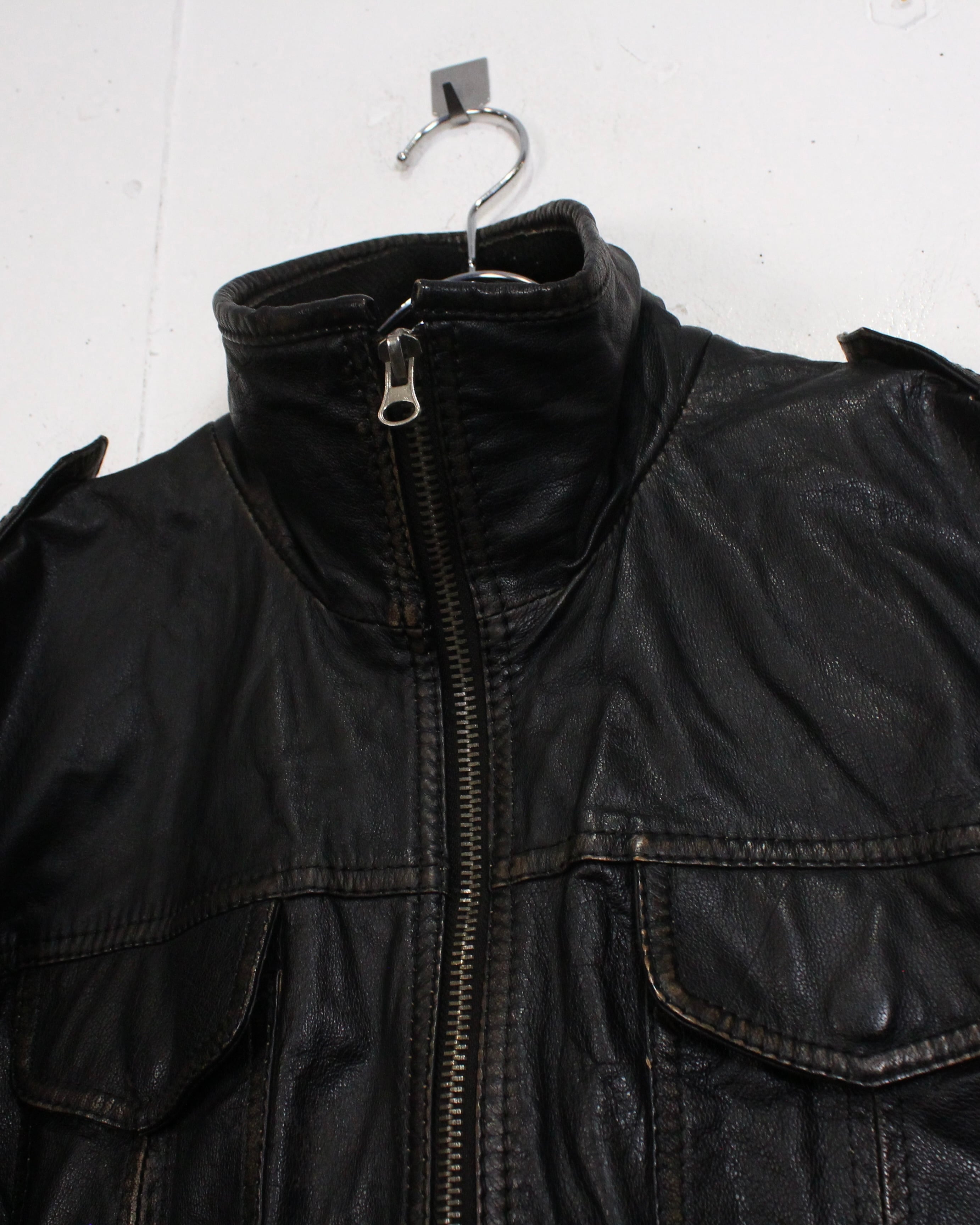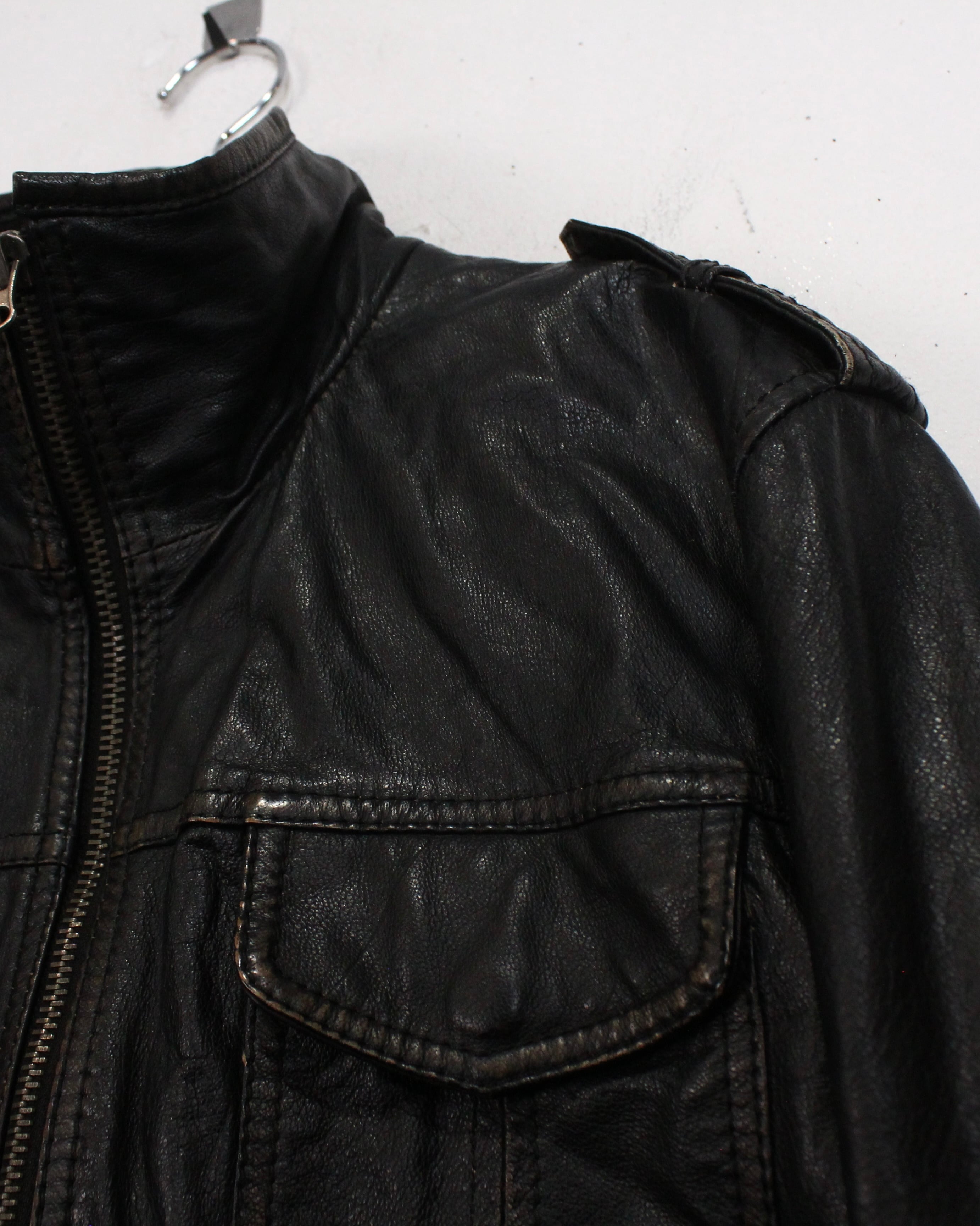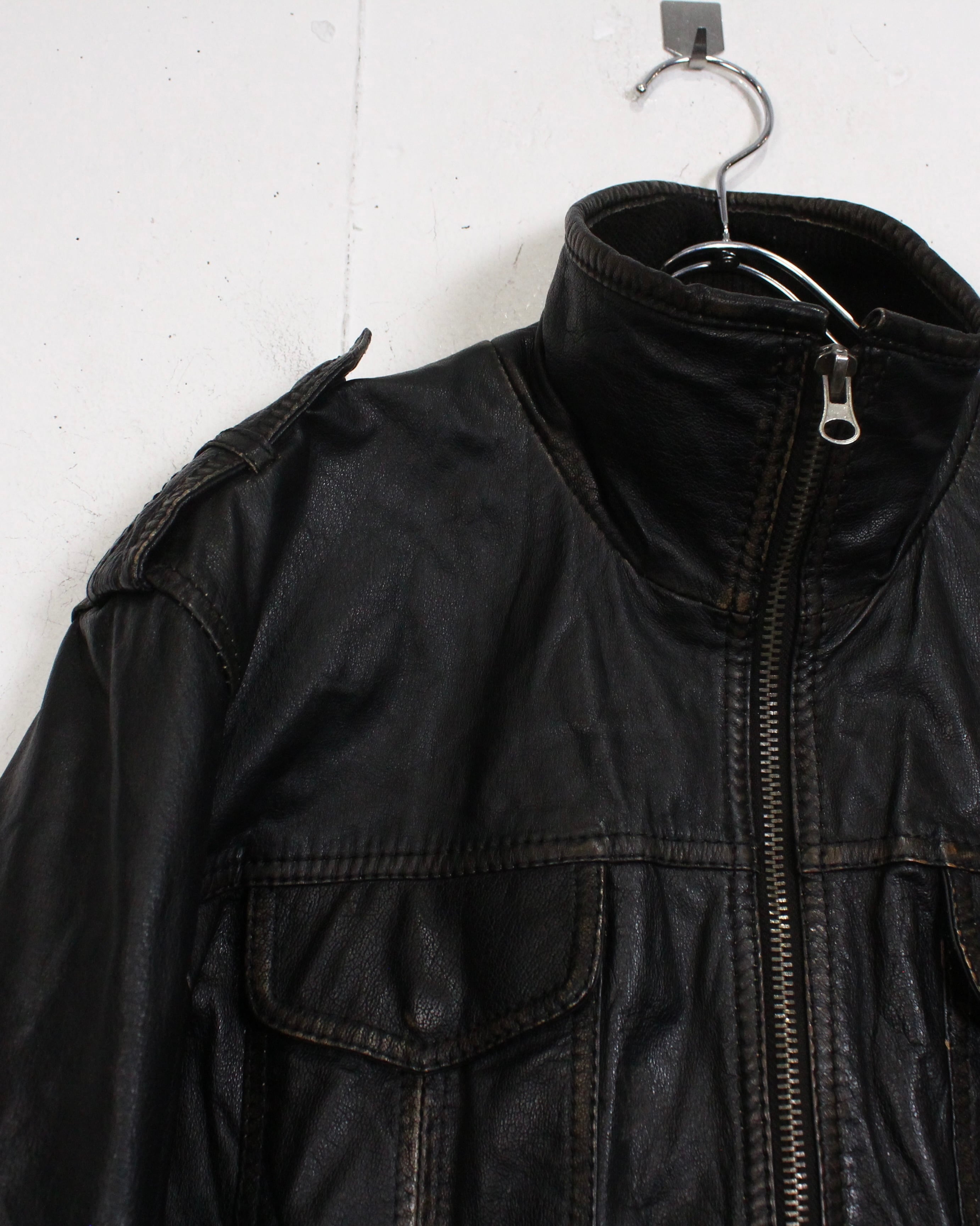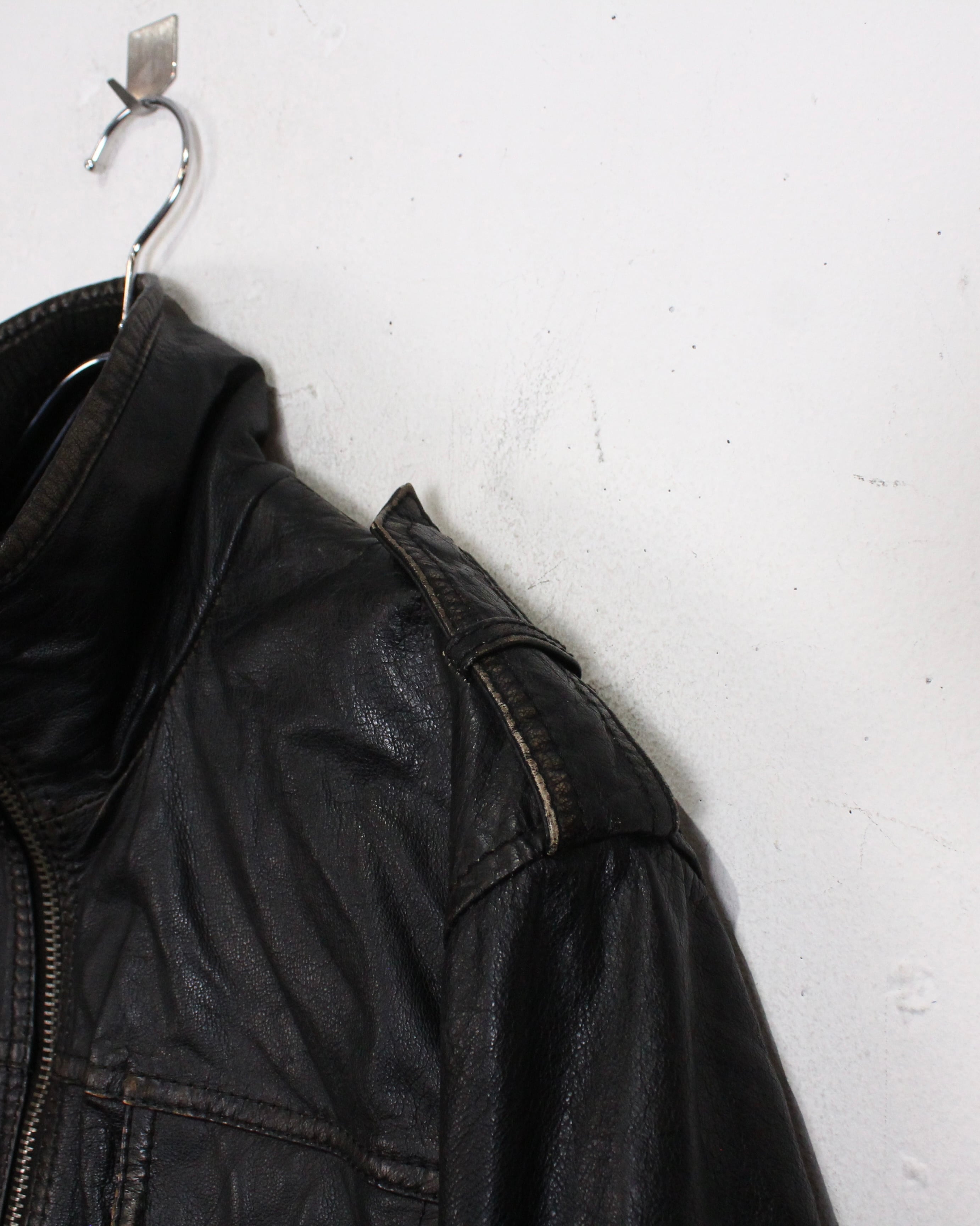 しっとりとした質感とマニッシュな佇まいを兼ね備えたブラックレザージャケット。
