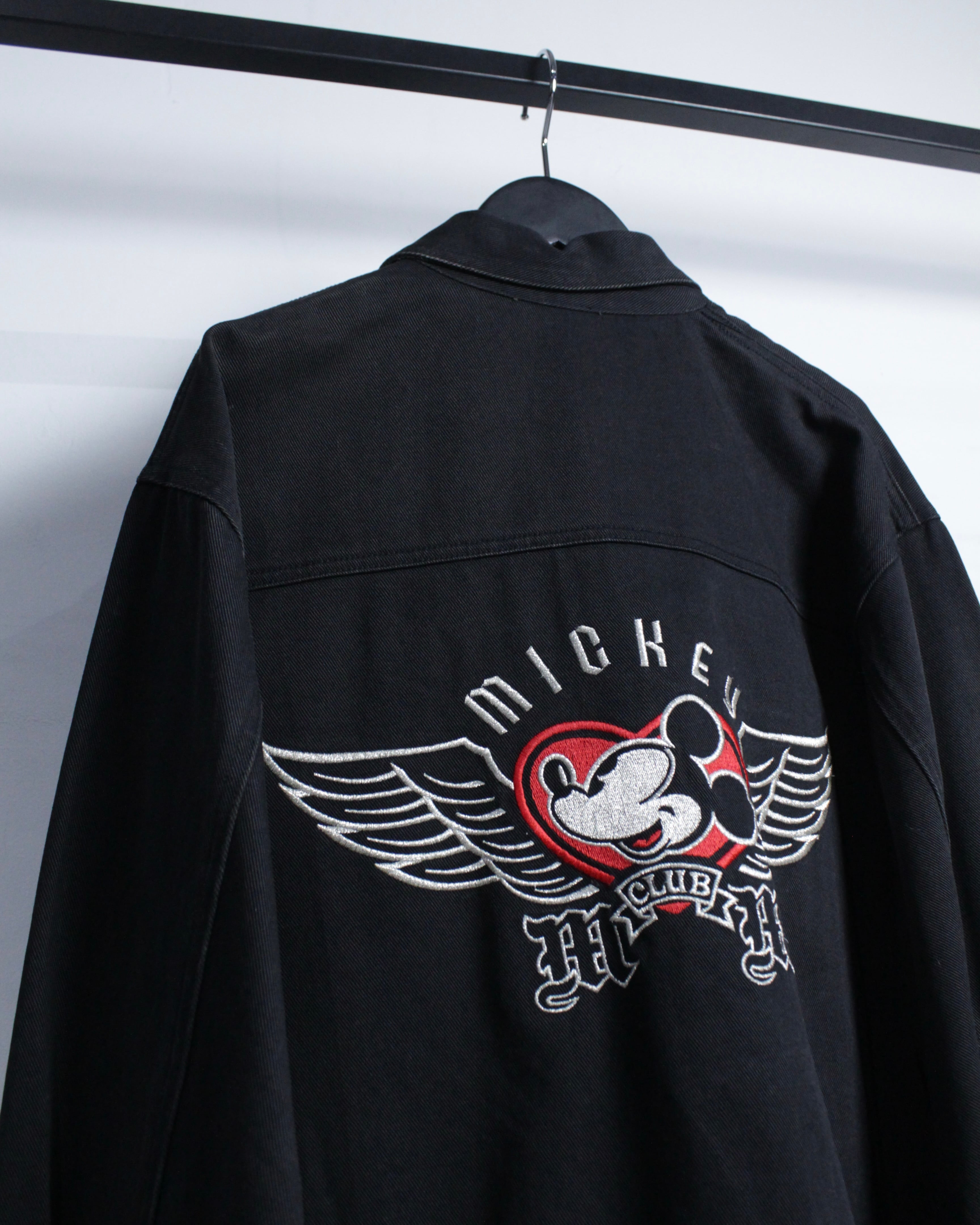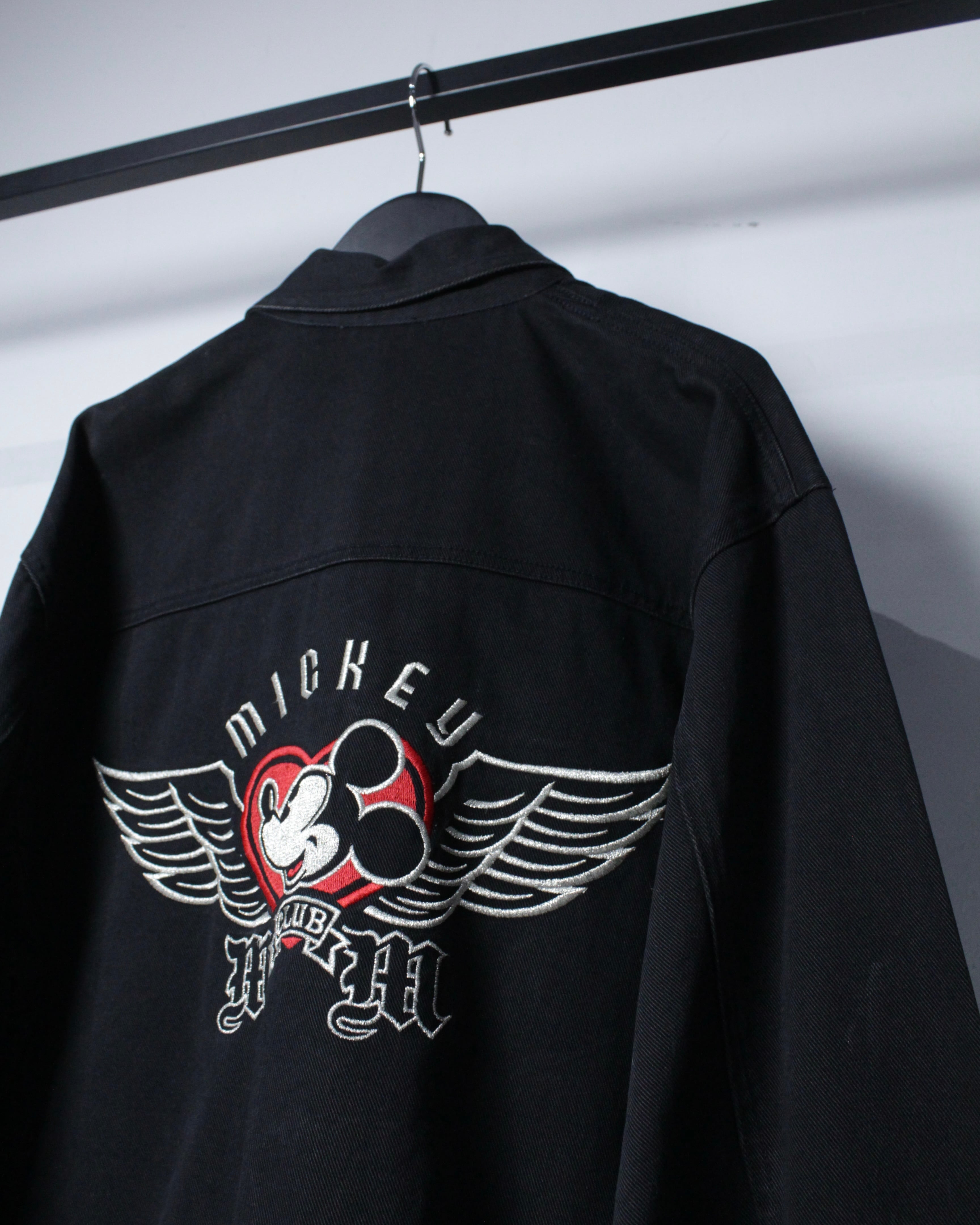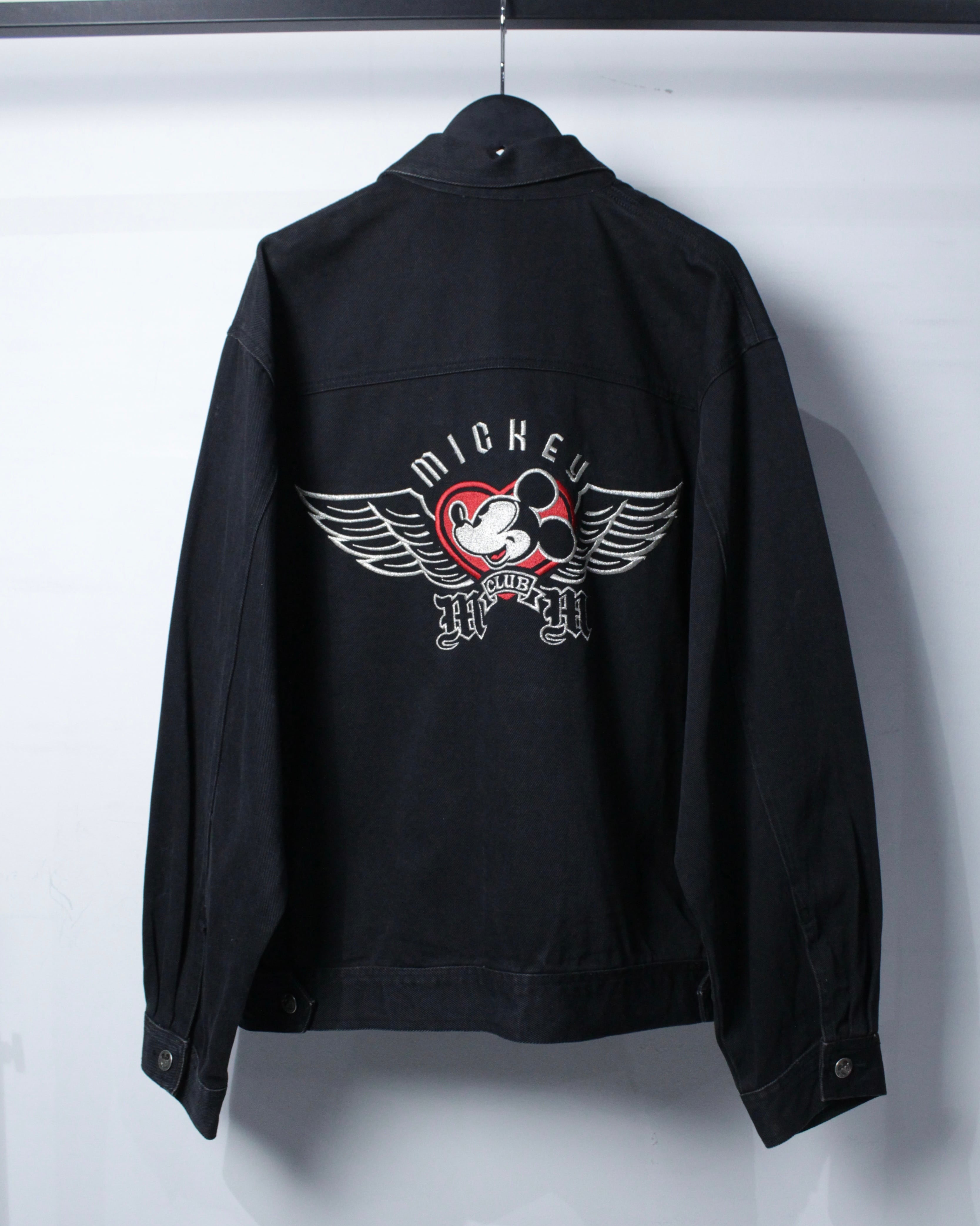 ヴィンテージ業界で球数が少なくなっているブラックデニムのボディに、背面にはハートに翼、そしてミッキーを刺繍で刻んだデニムジャケット。
