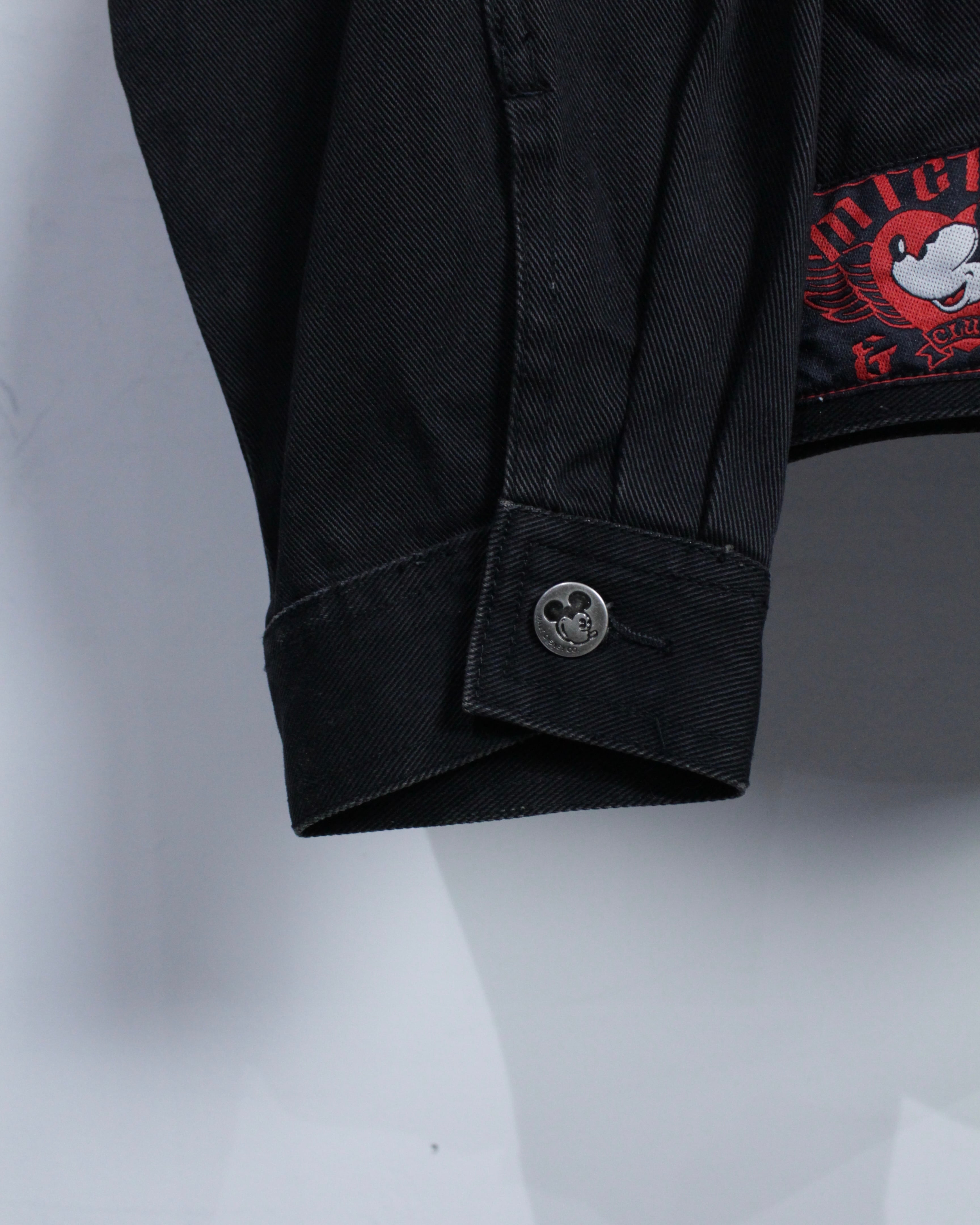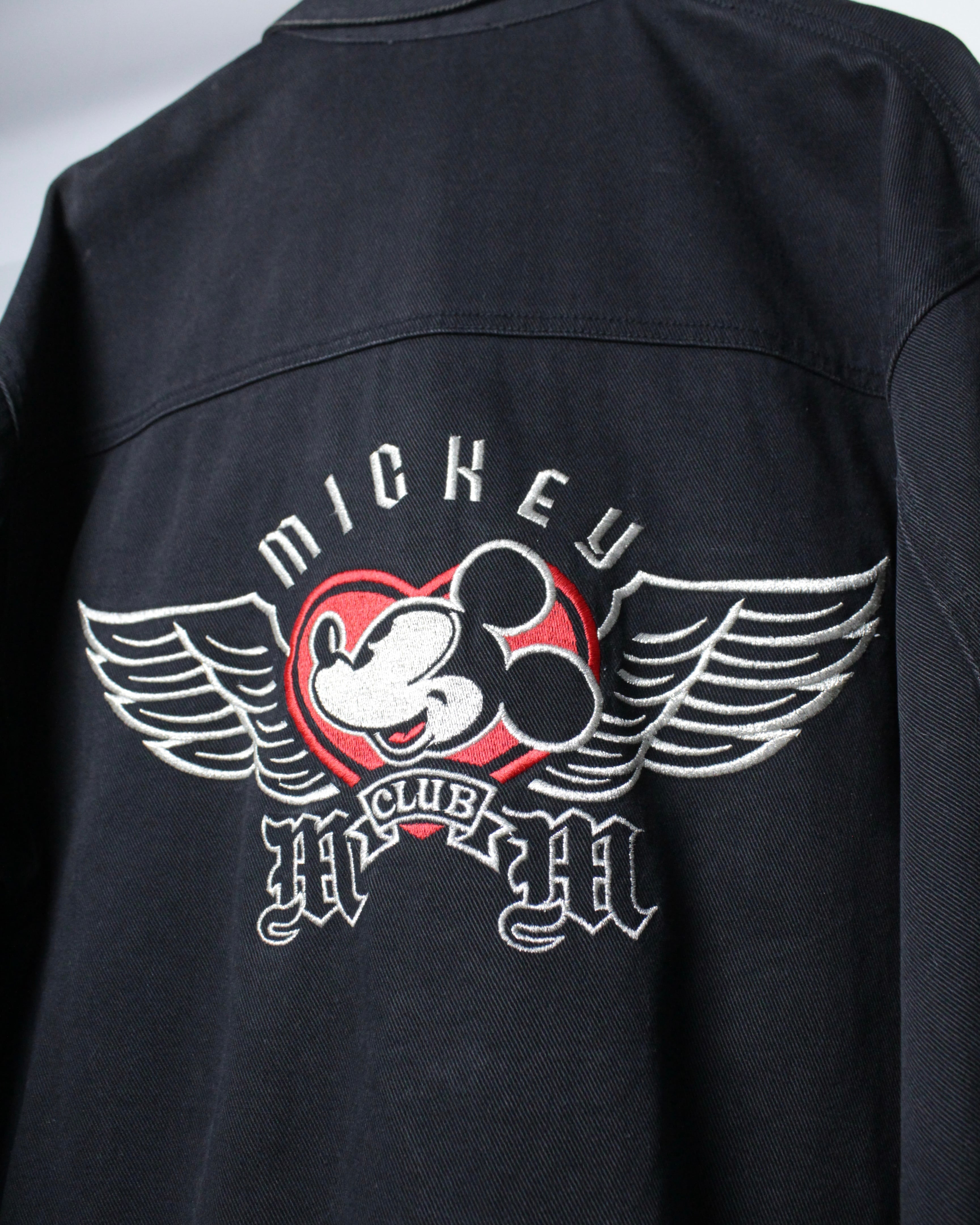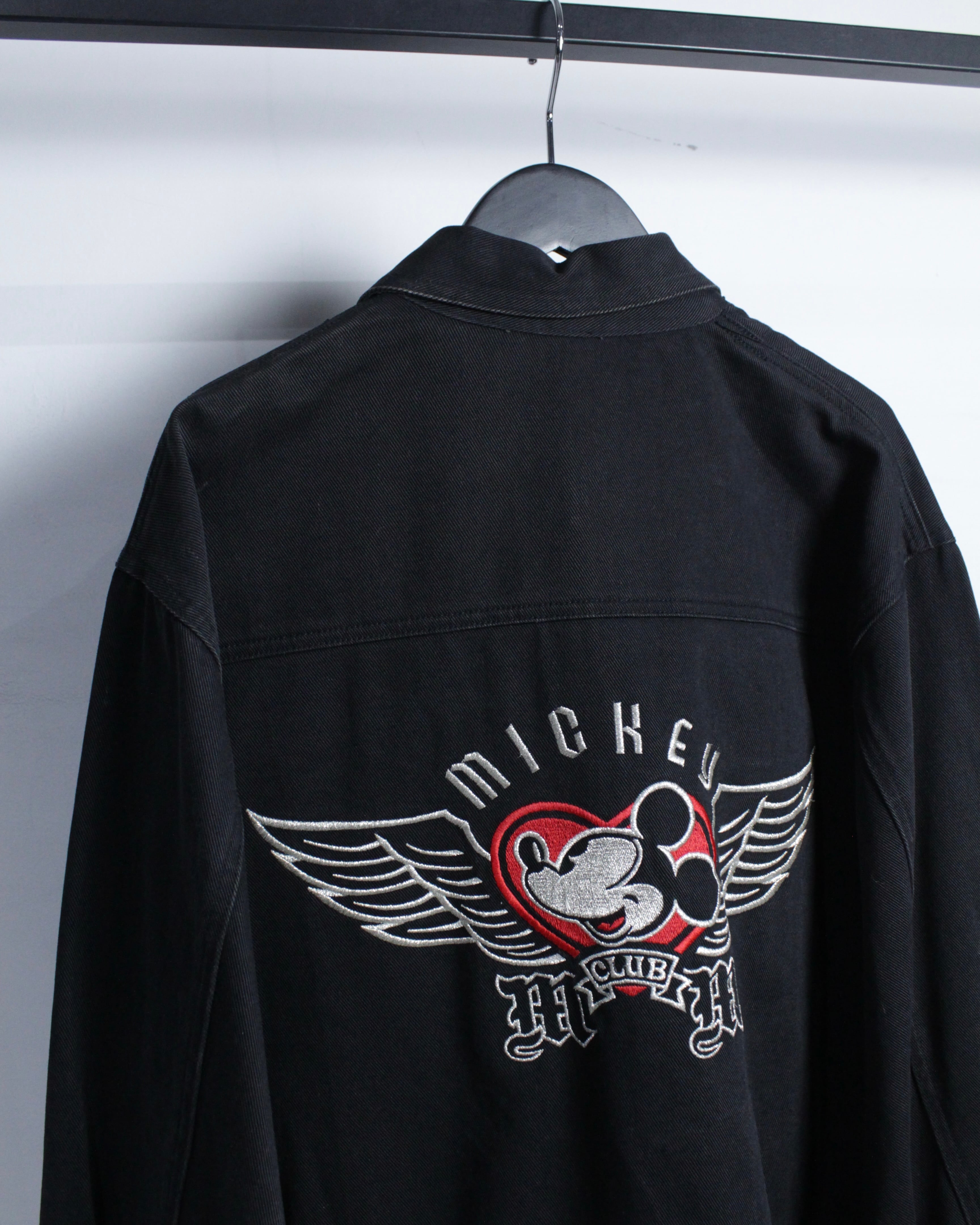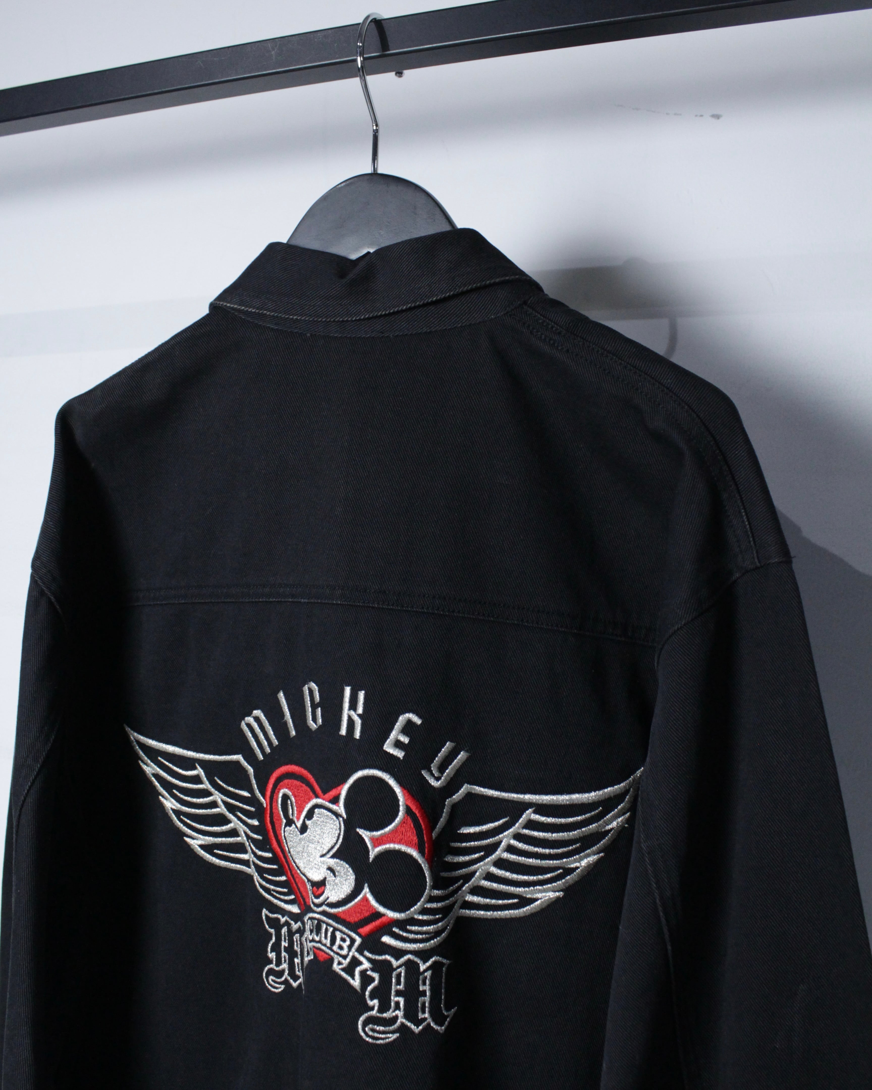 ヴィンテージ業界で球数が少なくなっているブラックデニムのボディに、背面にはハートに翼、そしてミッキーを刺繍で刻んだデニムジャケット。