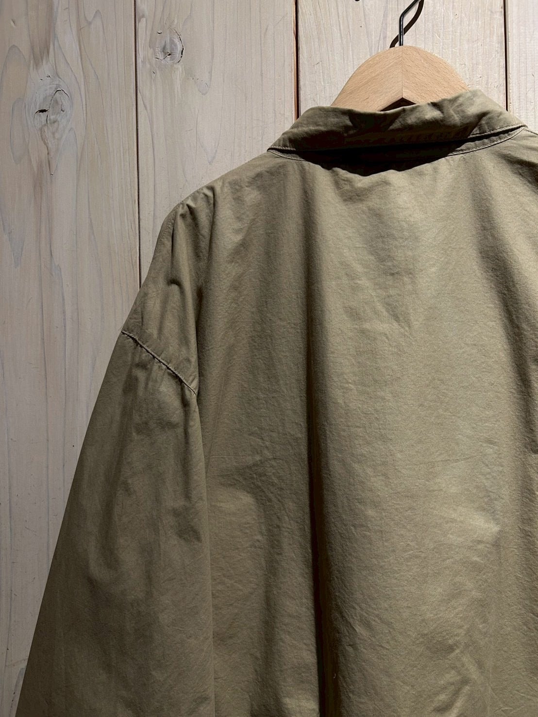 軽量でさらりと羽織れる素材は、季節の変わり目に最適。インナーにシャツやスウェットを仕込んでもストレスのない着心地で、春秋のメインアウターとしてはもちろん、冬場はコートのインナーとしても活躍してくれるかと。