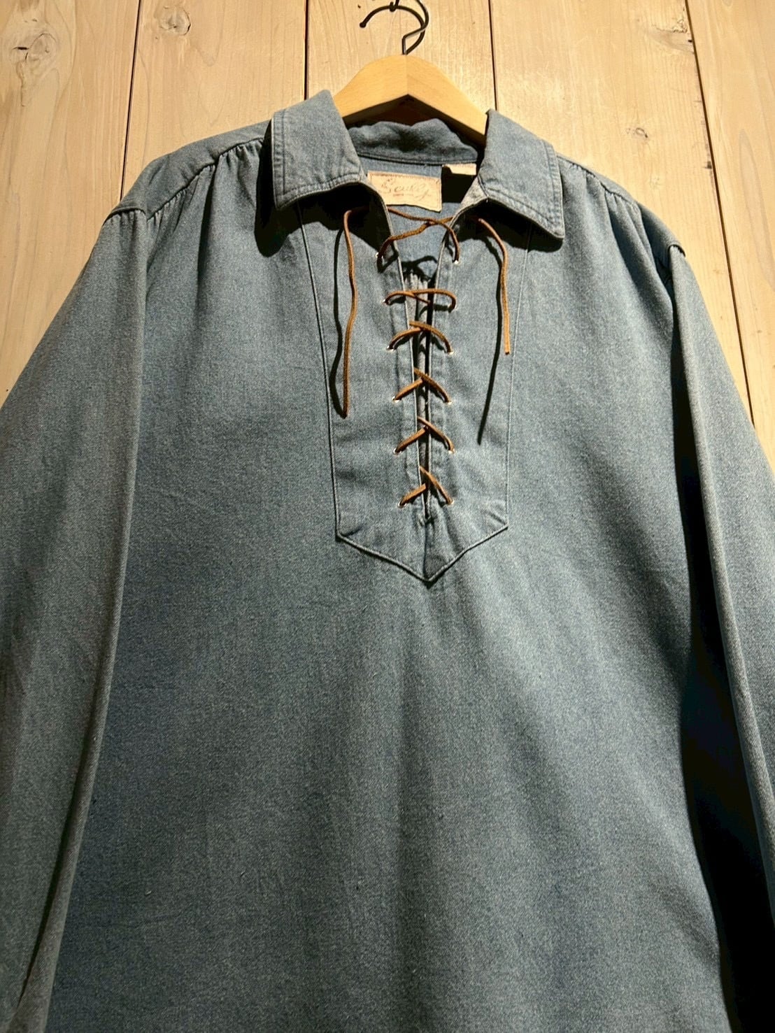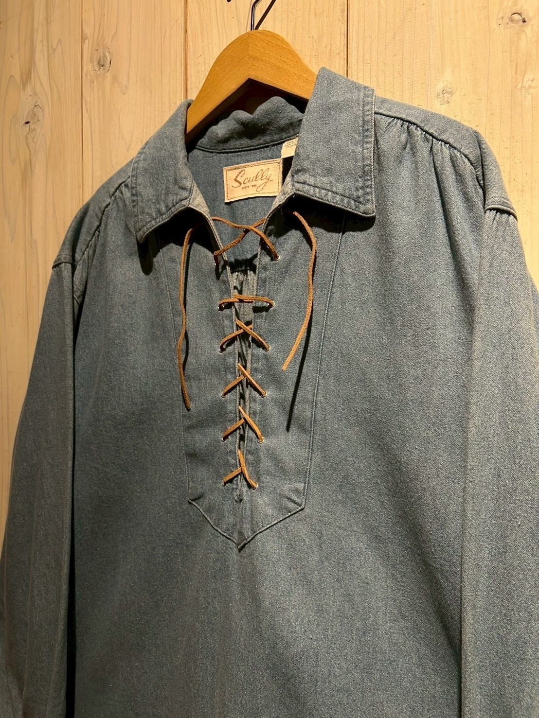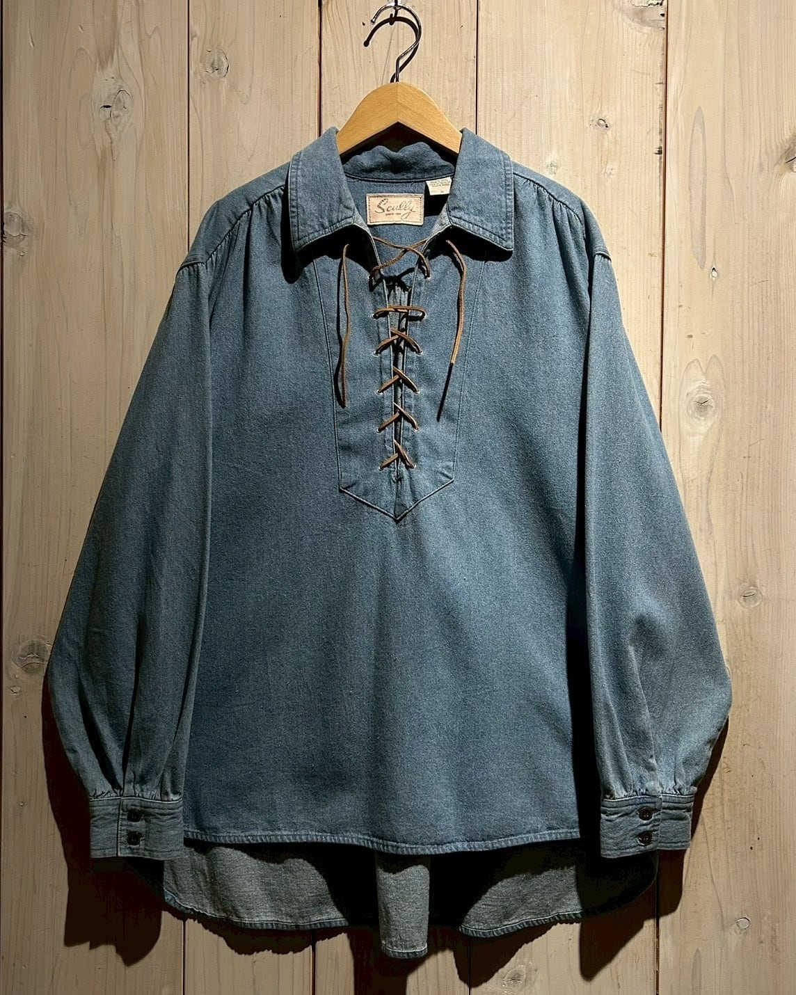 “Scully”らしい伝統とファッション性が合わさった、存在感抜群のレースアップデニムスキッパーシャツです。
