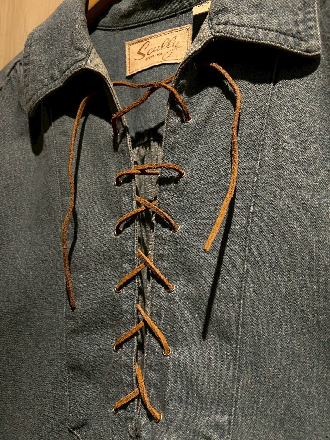 1906年創業、ウエスタンウェアの老舗として確固たる地位を築いてきた“Scully”より、レースアップ仕様のデニムスキッパーシャツをご紹介いたします。