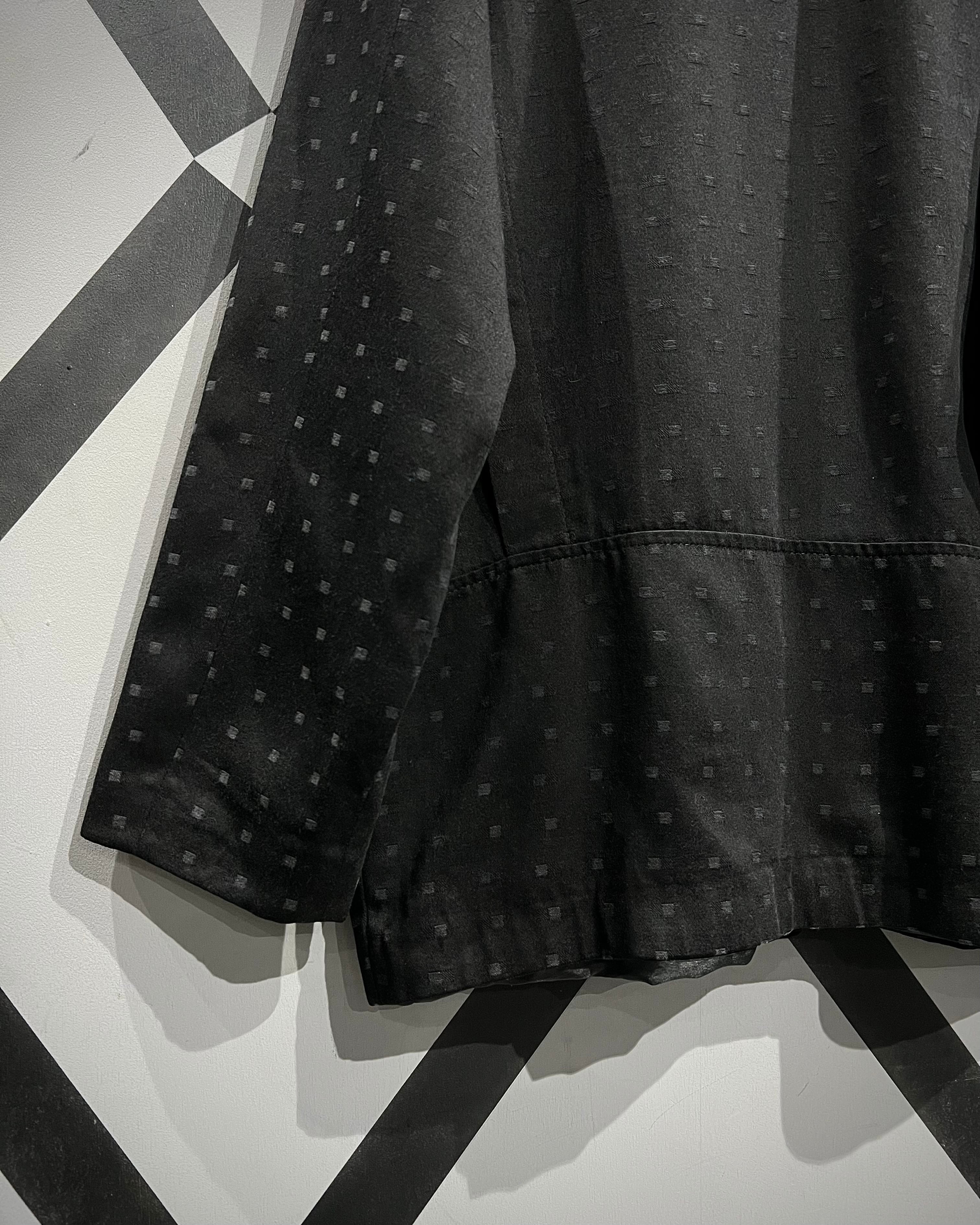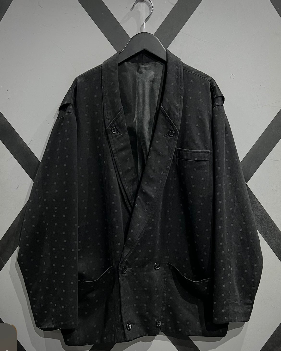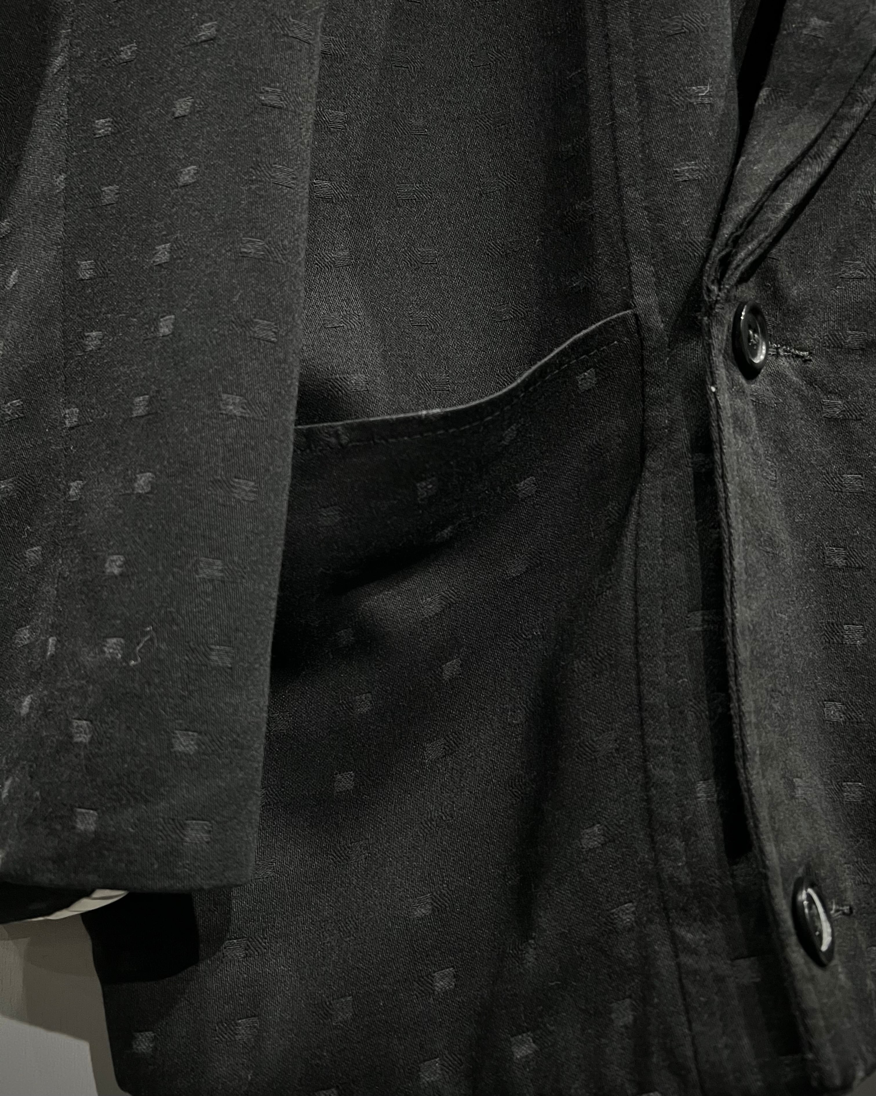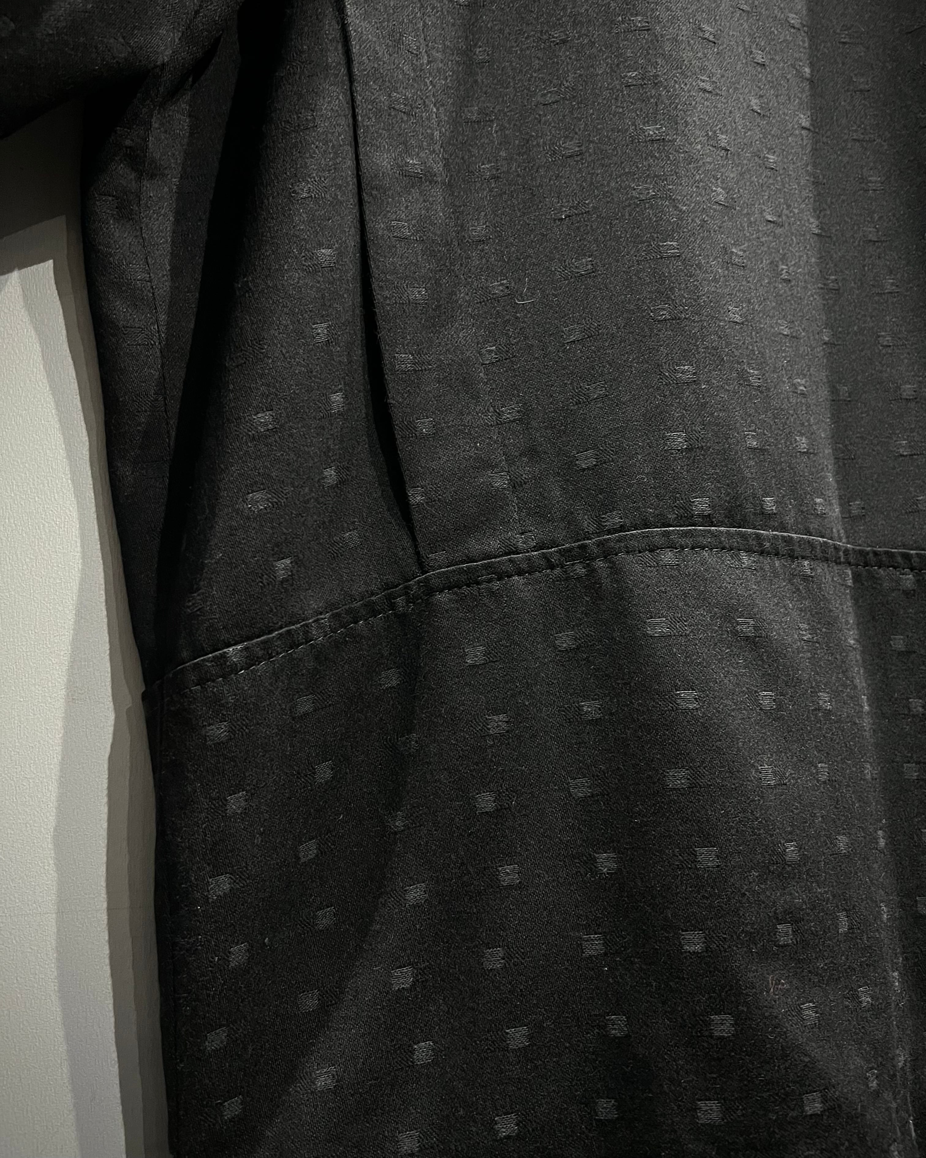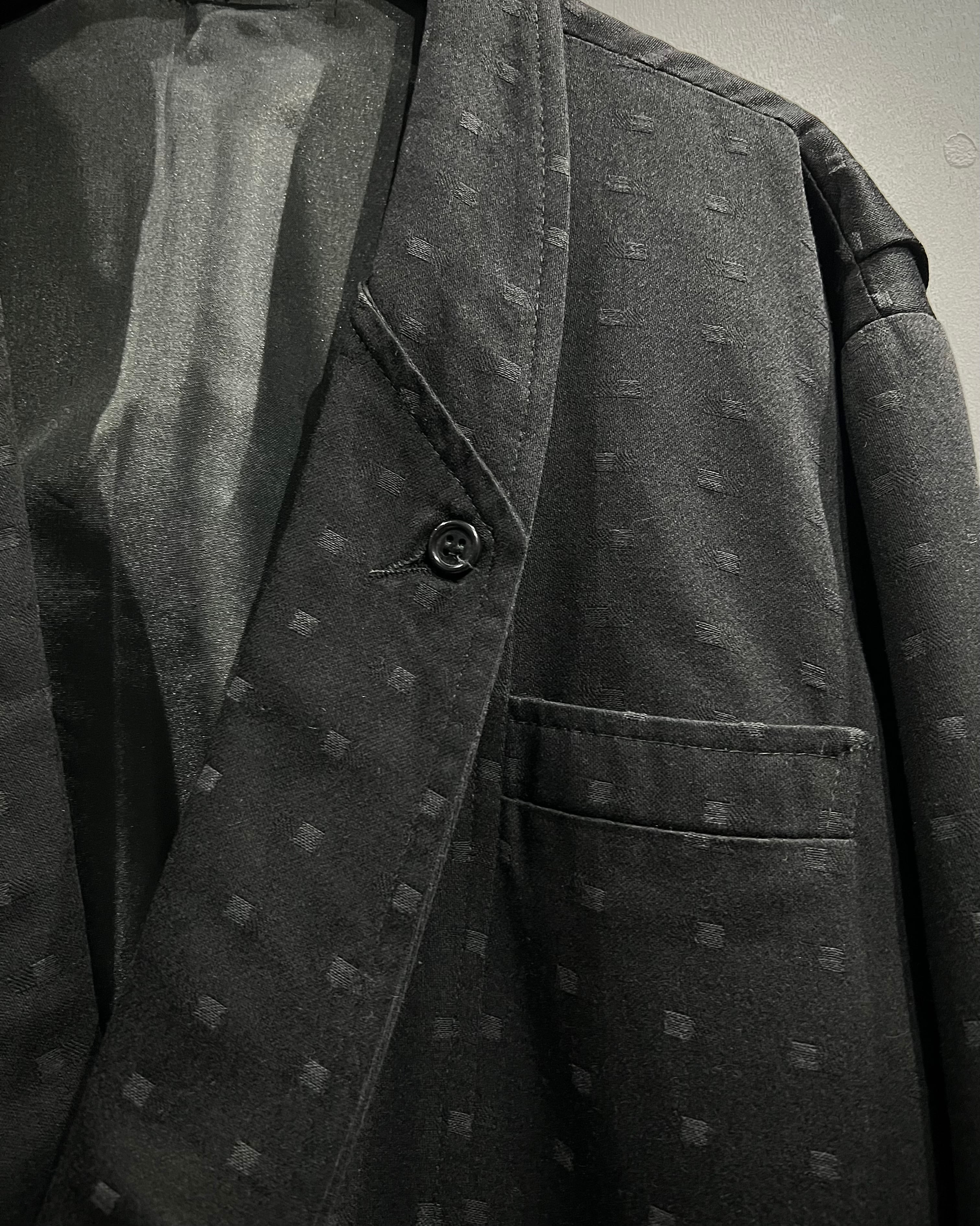 マットなブラックを基調に、さりげなく浮かび上がる織りのドットパターン。光の当たり方によって陰影が生まれ、この年代ならではの空気感を漂わせています。