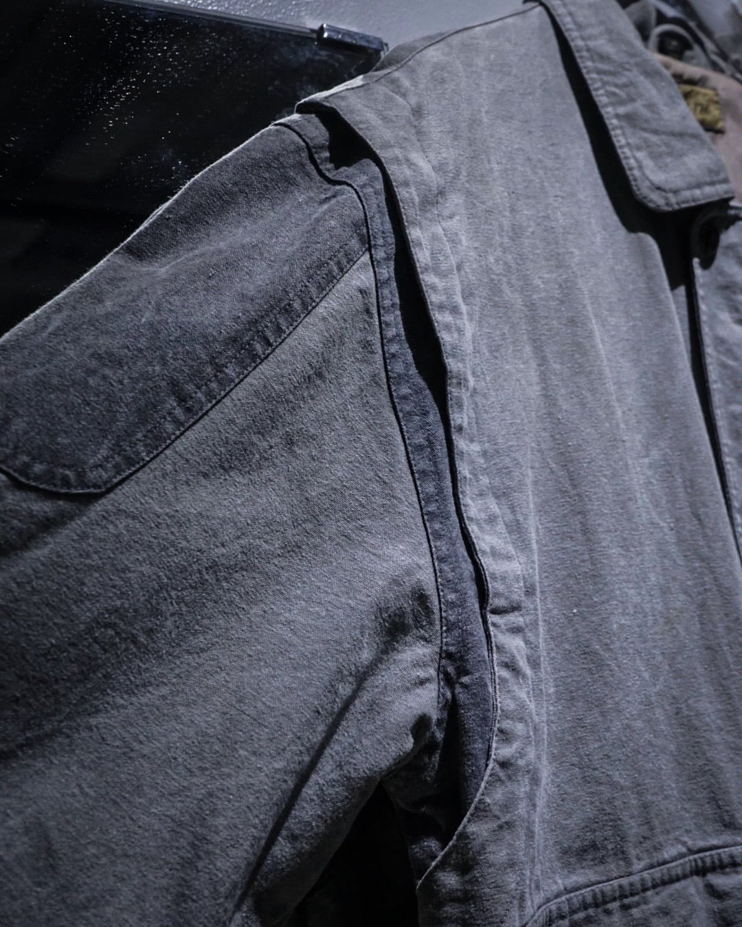 マットな質感のコットンファブリックは、程よく肉感がありながらも柔らかく、着込むことでさらに風合いが増していく素材感。フェードしたグレーカラーが奥行きを生み、こなれ感を漂わせています。