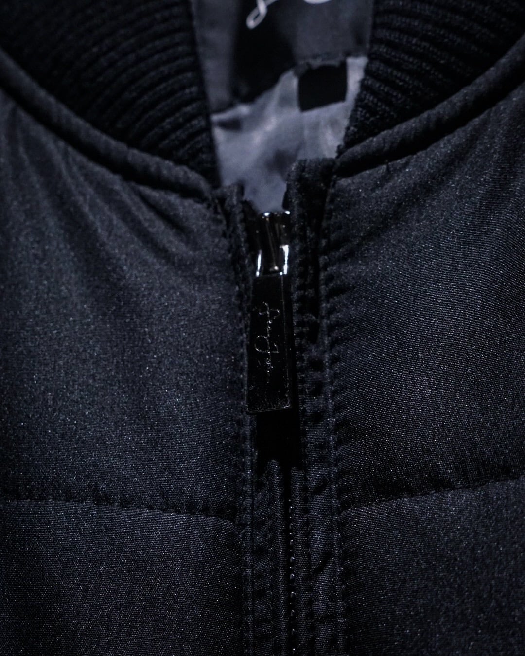 フロントはジップ、ネックにはブランドのシグネチャーロゴ刺繍を配置し、さりげなくも確かな主張を演出。