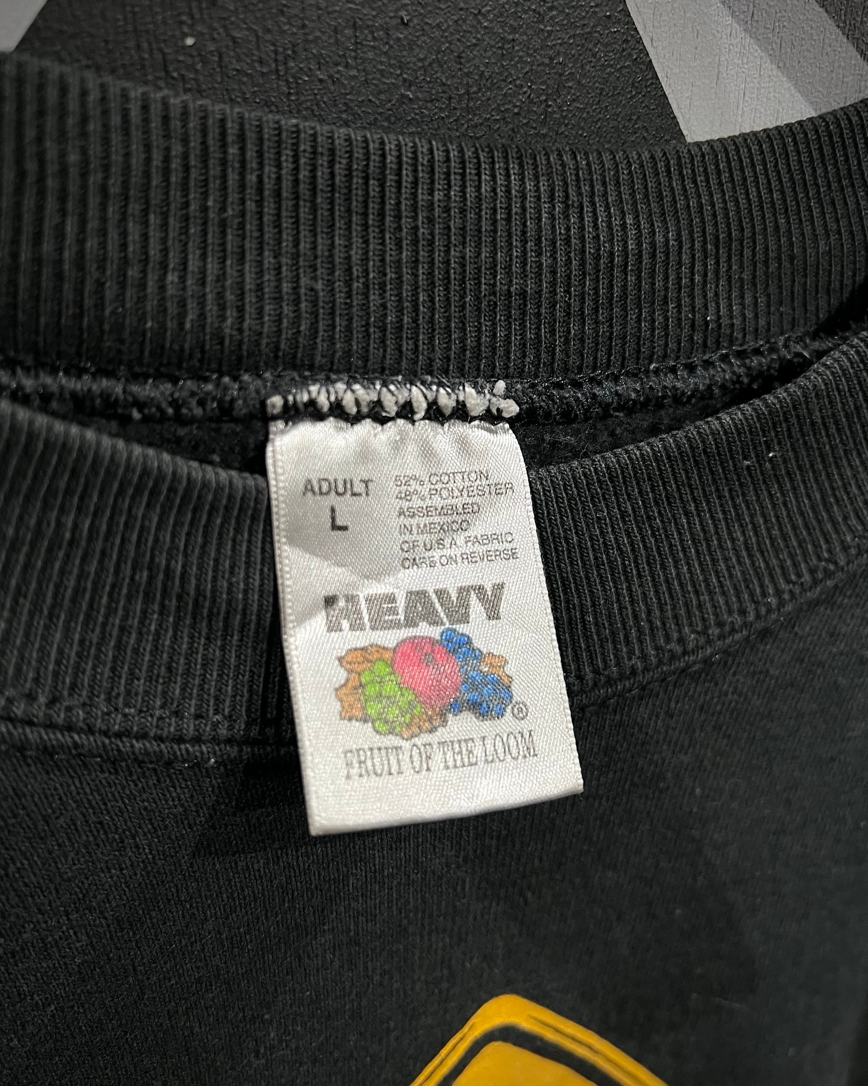 ボディは90's FRUIT OF THE LOOM、コットン×ポリエステルの程よい肉感で、デイリーに着やすい質感が◎