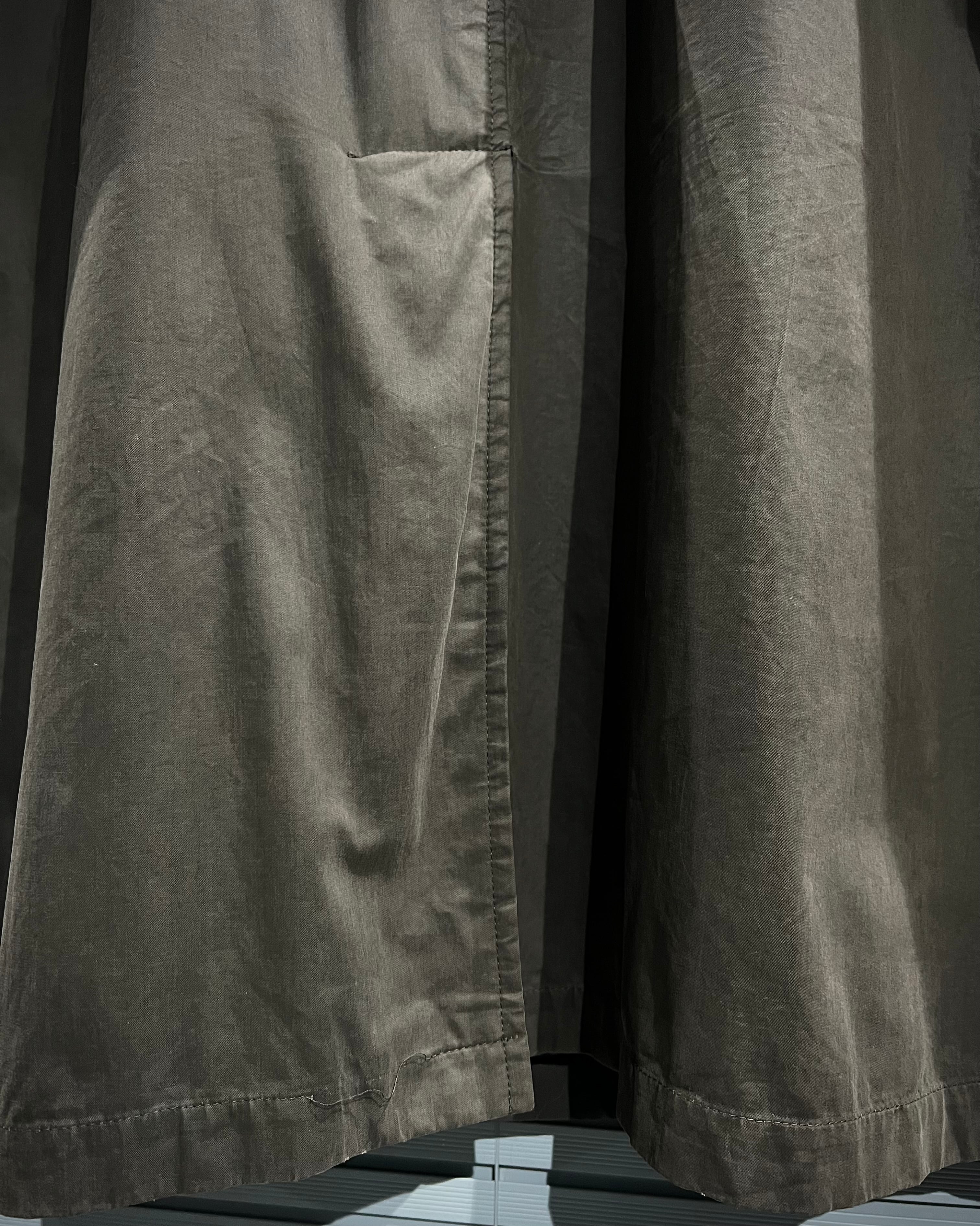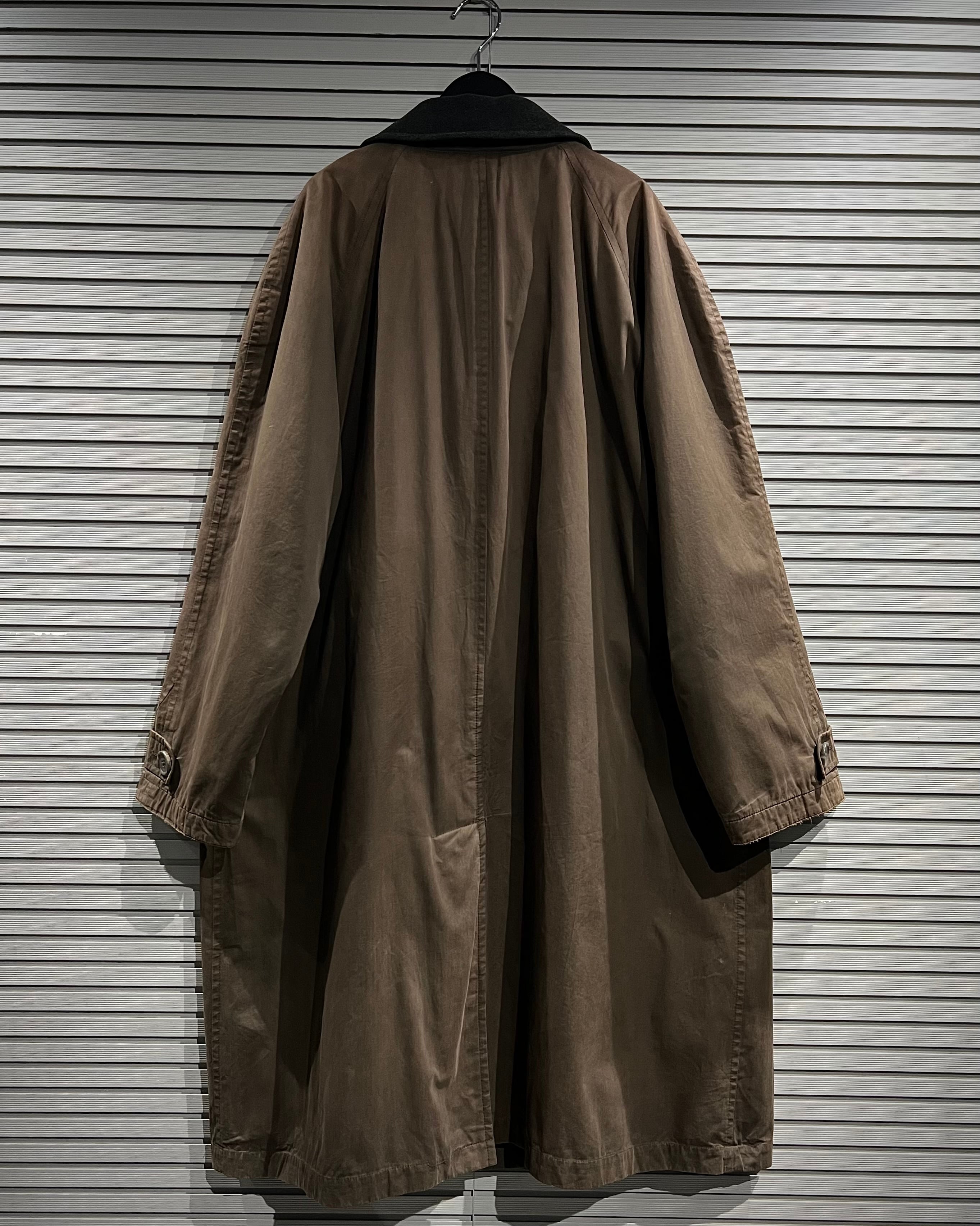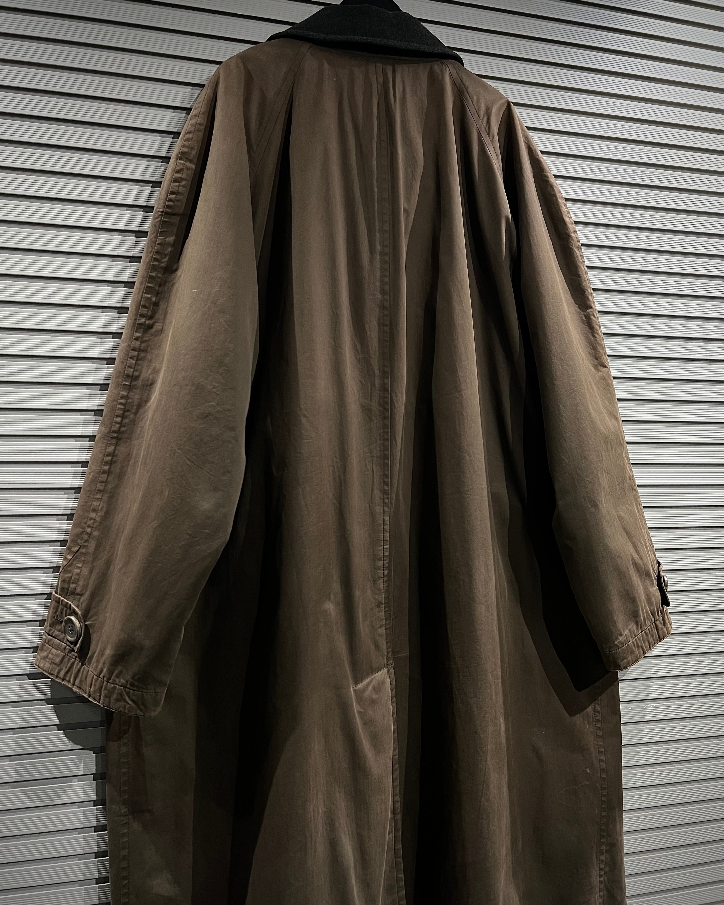 フロントは比翼仕立てでボタンを隠し、クリーンなフロントラインを表現。大ぶりのボタンや袖口のストラップに、バックはセンターベント入りで足捌きも良く、ロング丈ながら軽快な着用感が◎
