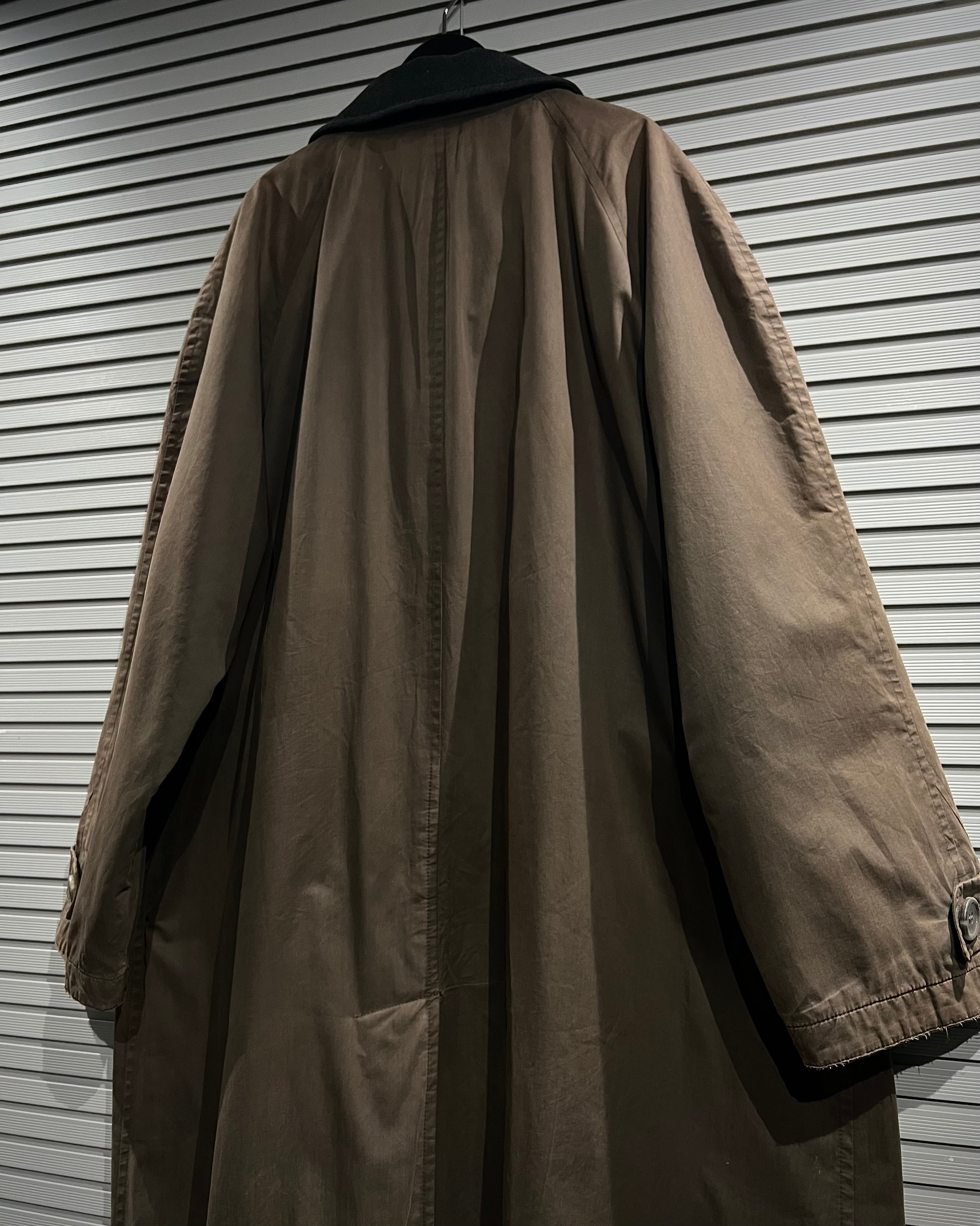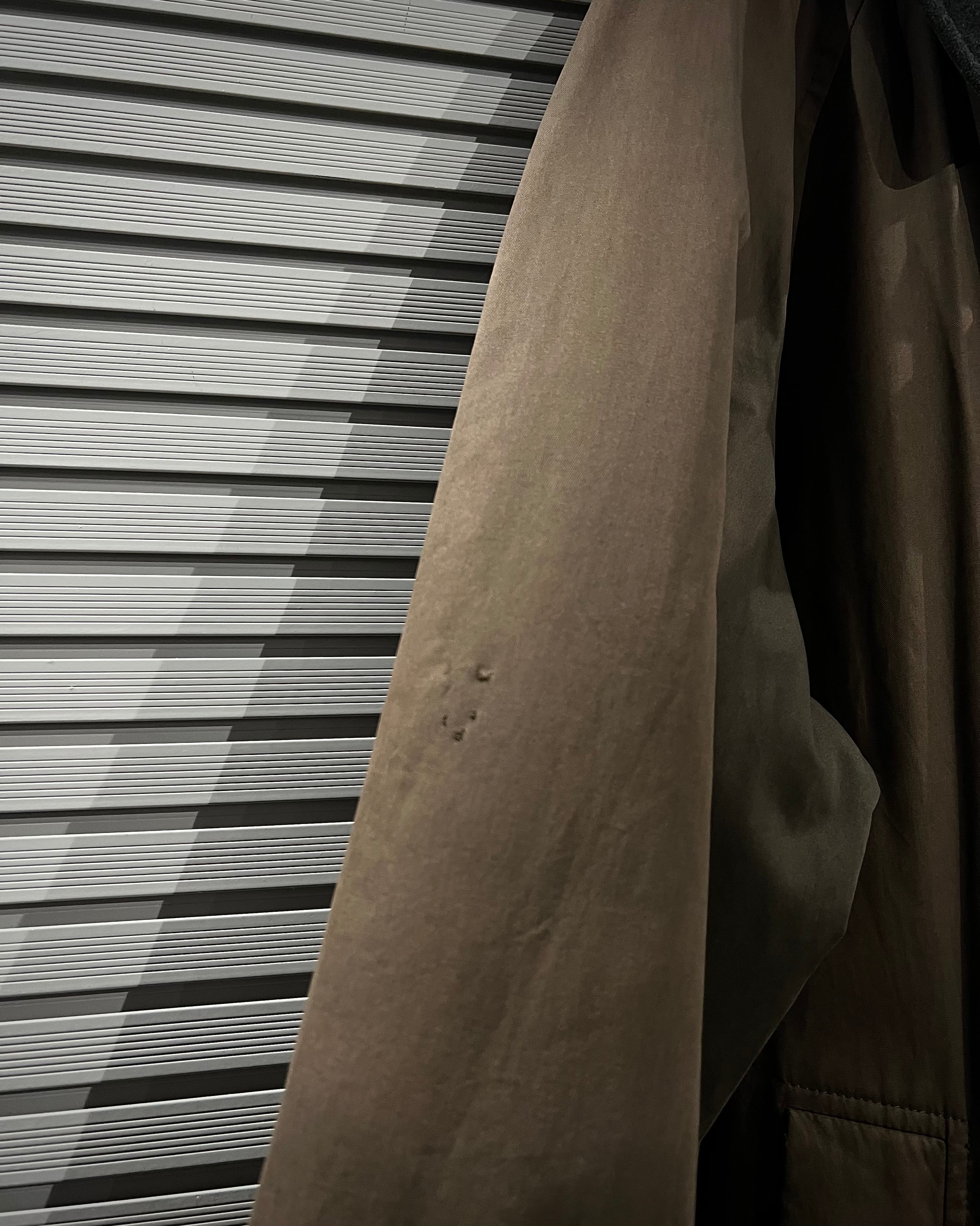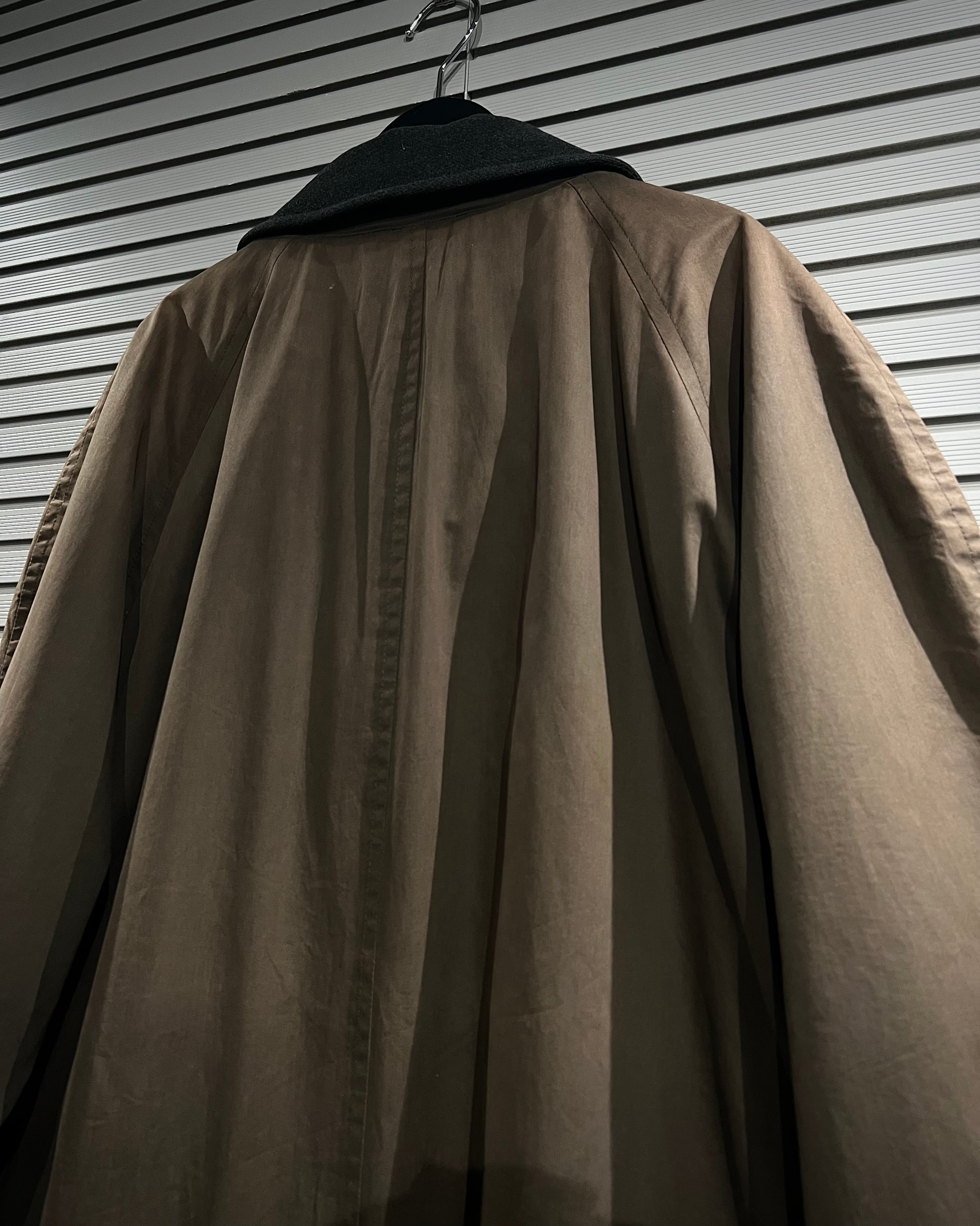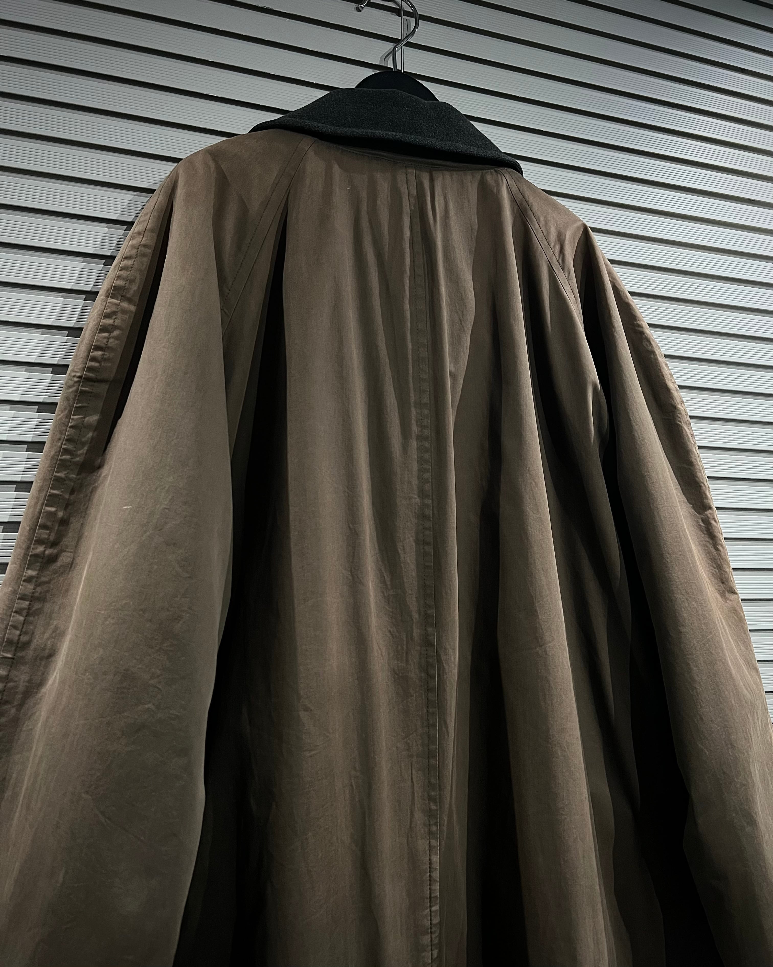 程よくハリのあるブラウンボディは、落ち着きと色気を兼ね備えた絶妙なトーン。ミニマルなステンカラー型をベースにしながら、襟部分をウールで切り替えることで奥行きのある表情を演出しています。