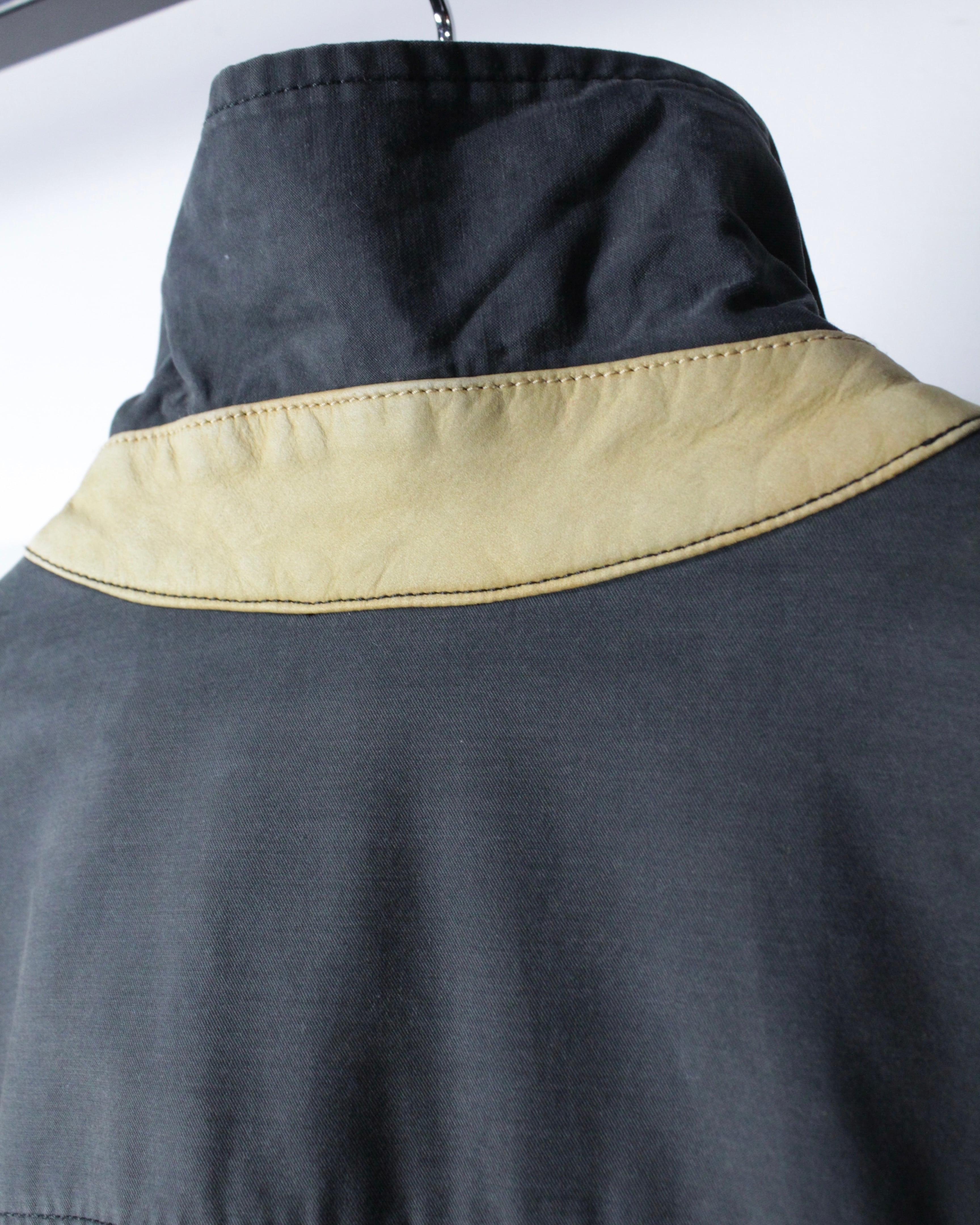 襟部分にはキャメルブラウンのレザーを切り替えた異素材使いの光るクオリティハイな1着に仕上がっています。