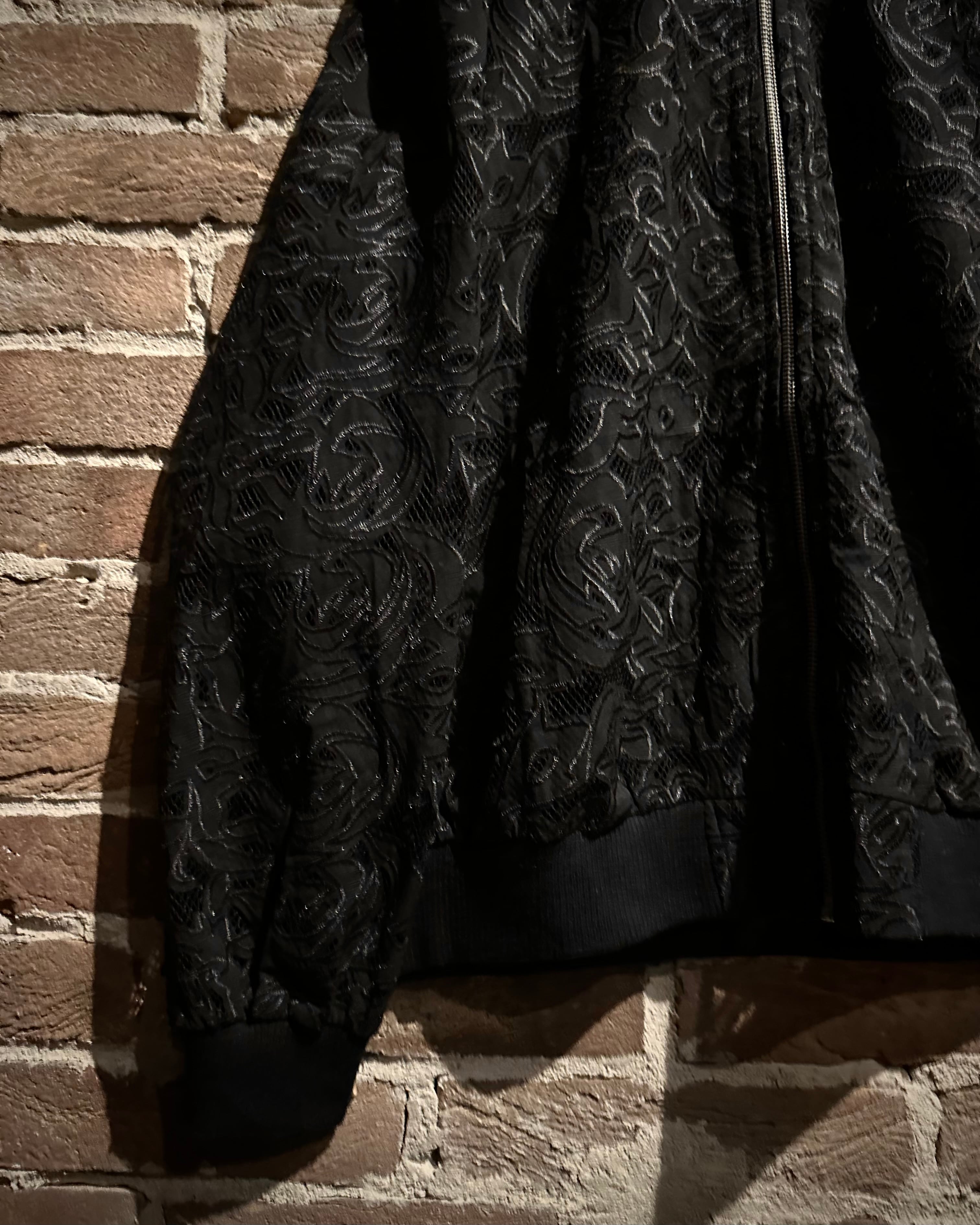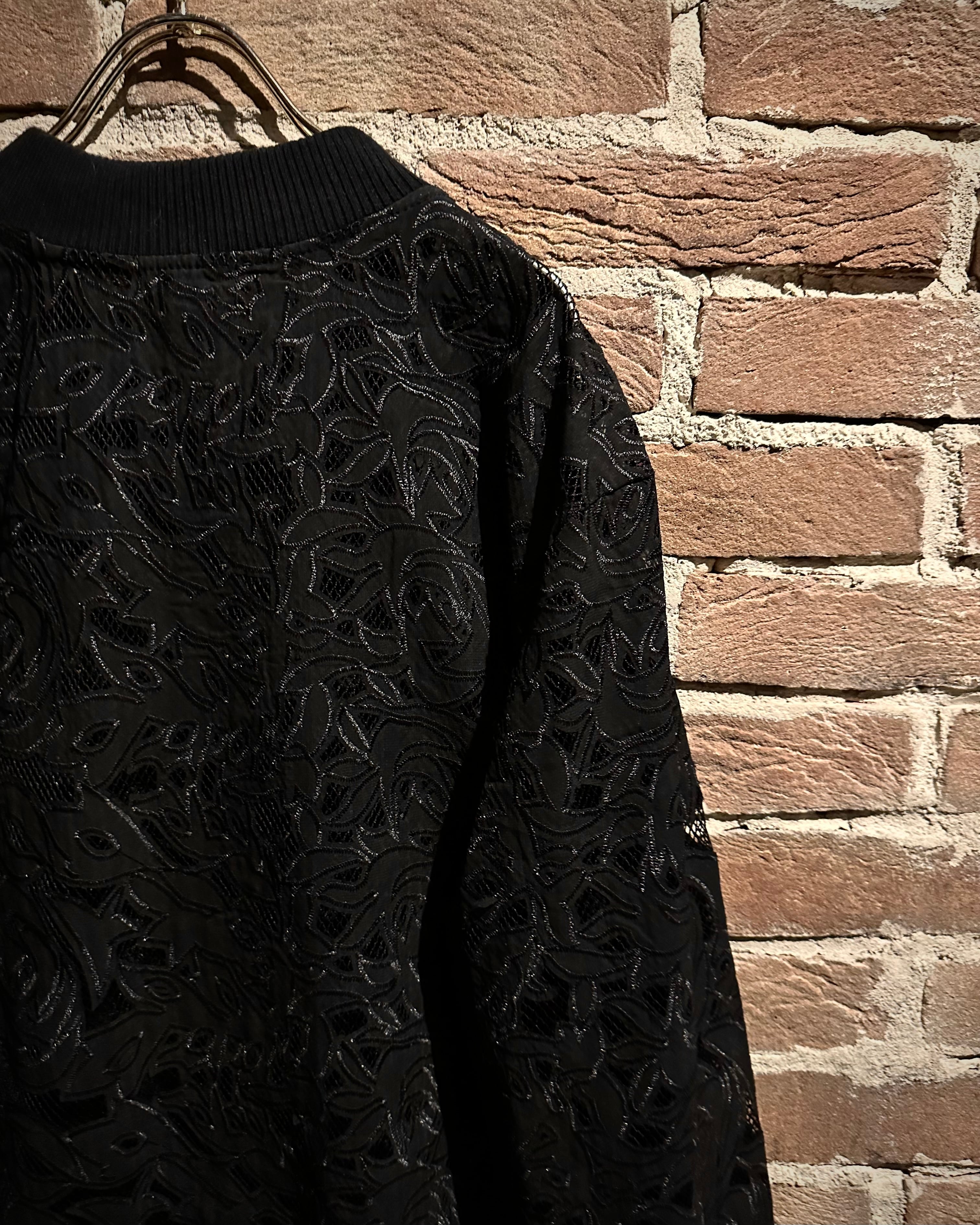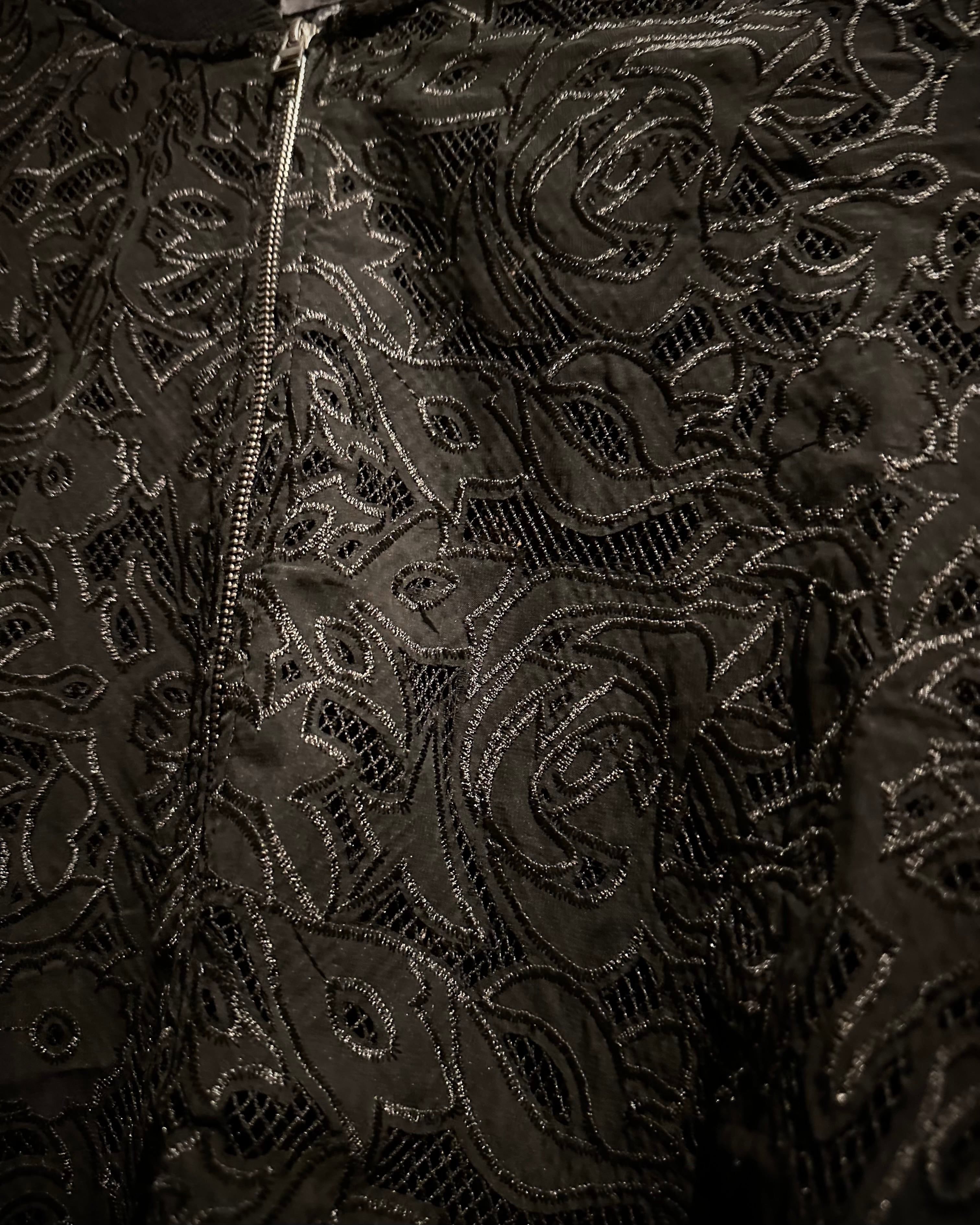 ライトなメッシュ素材をベースに、オールブラックで刺繍を贅沢に施したボンバージャケット。