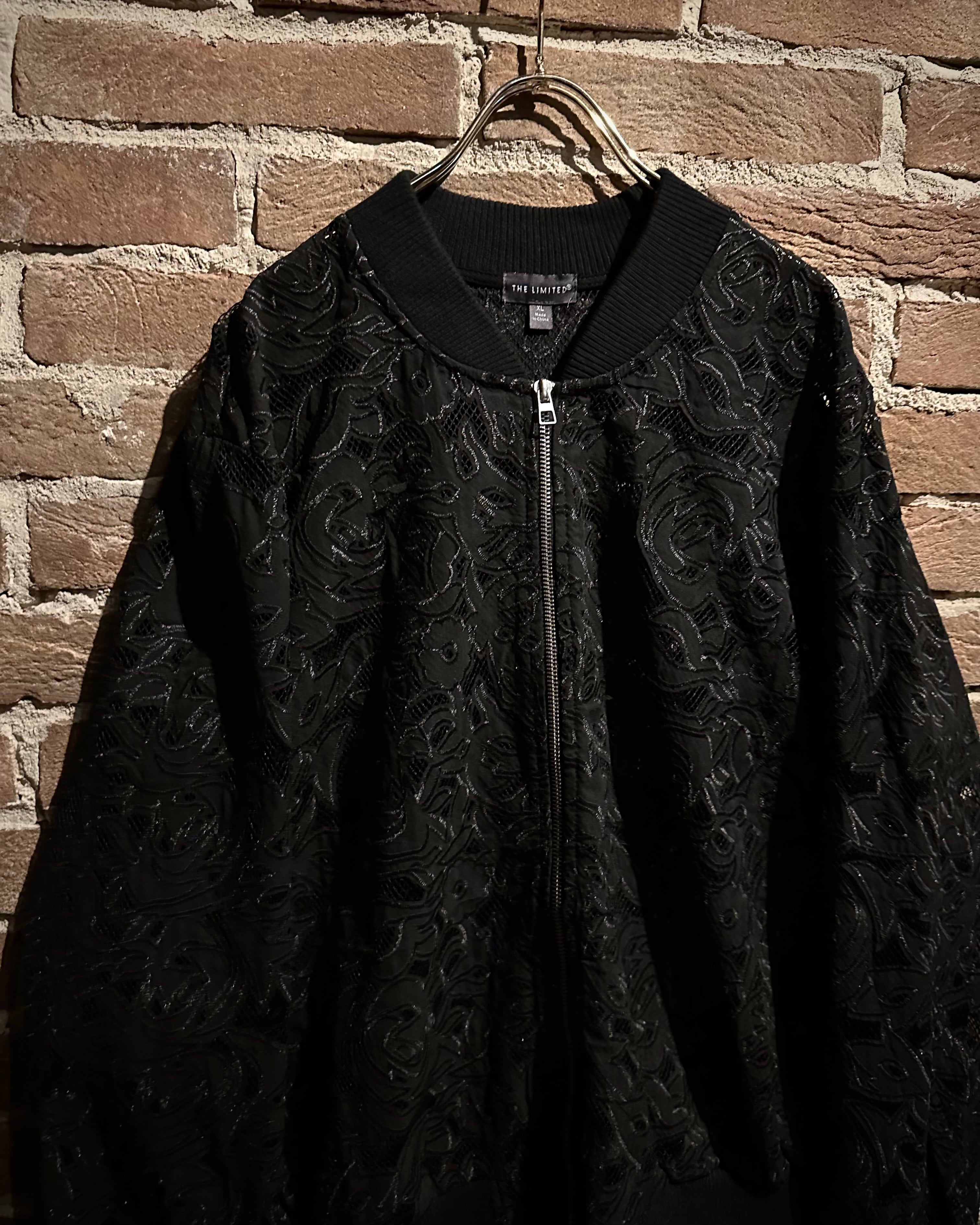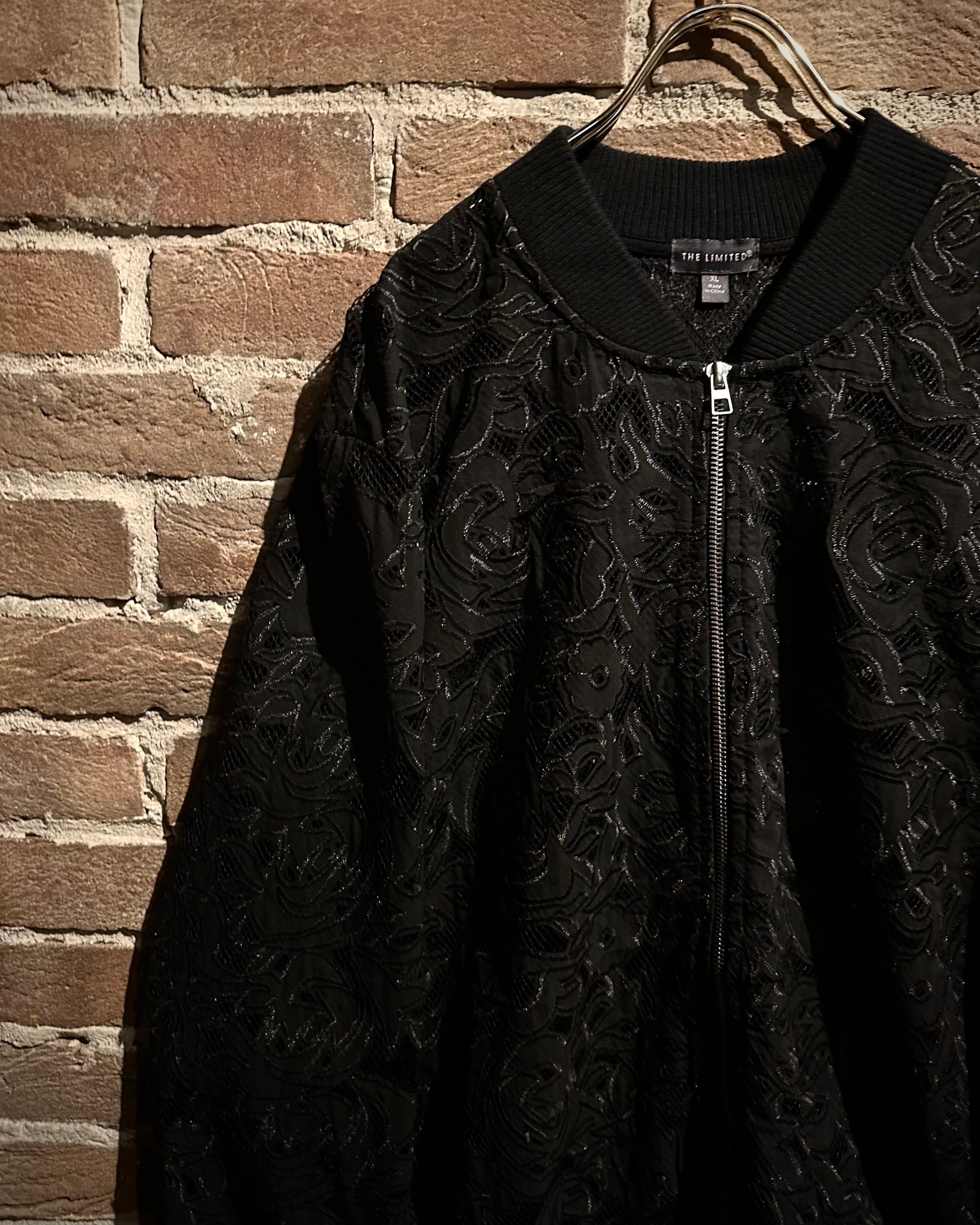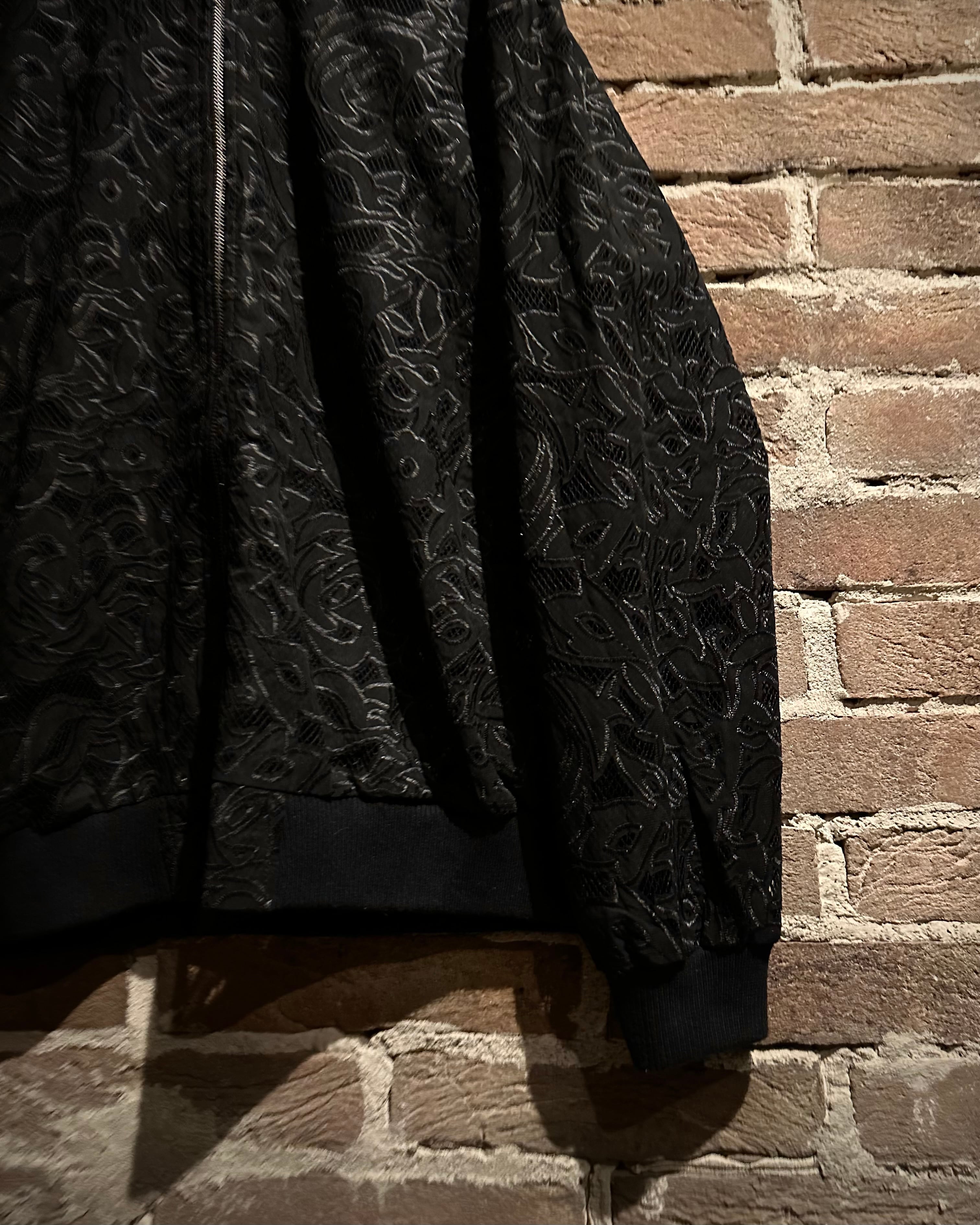 ライトなメッシュ素材をベースに、オールブラックで刺繍を贅沢に施したボンバージャケット。