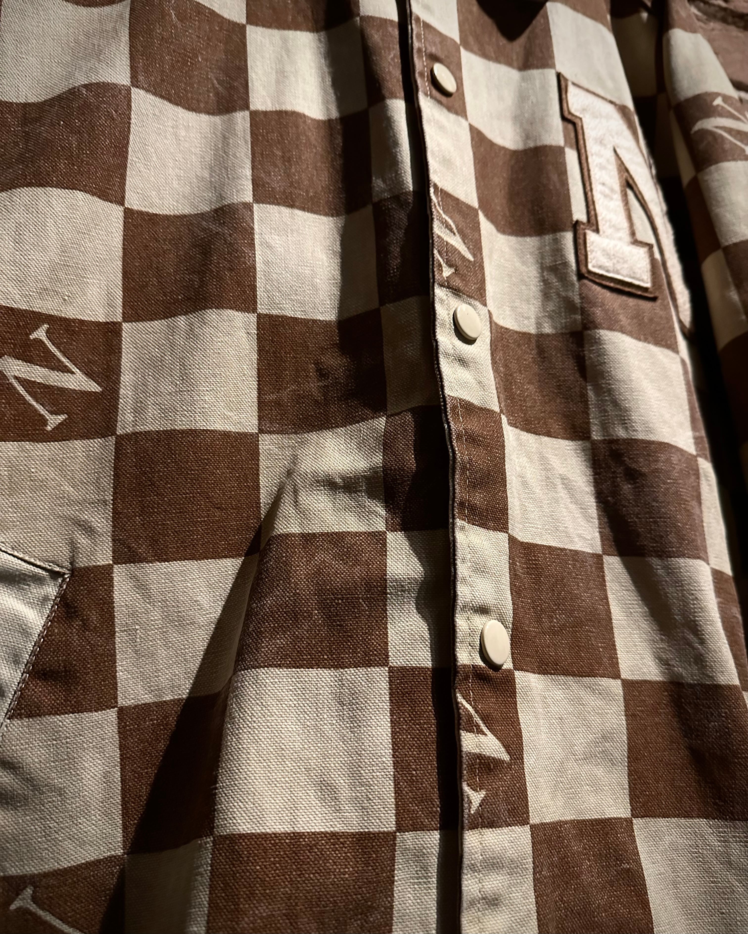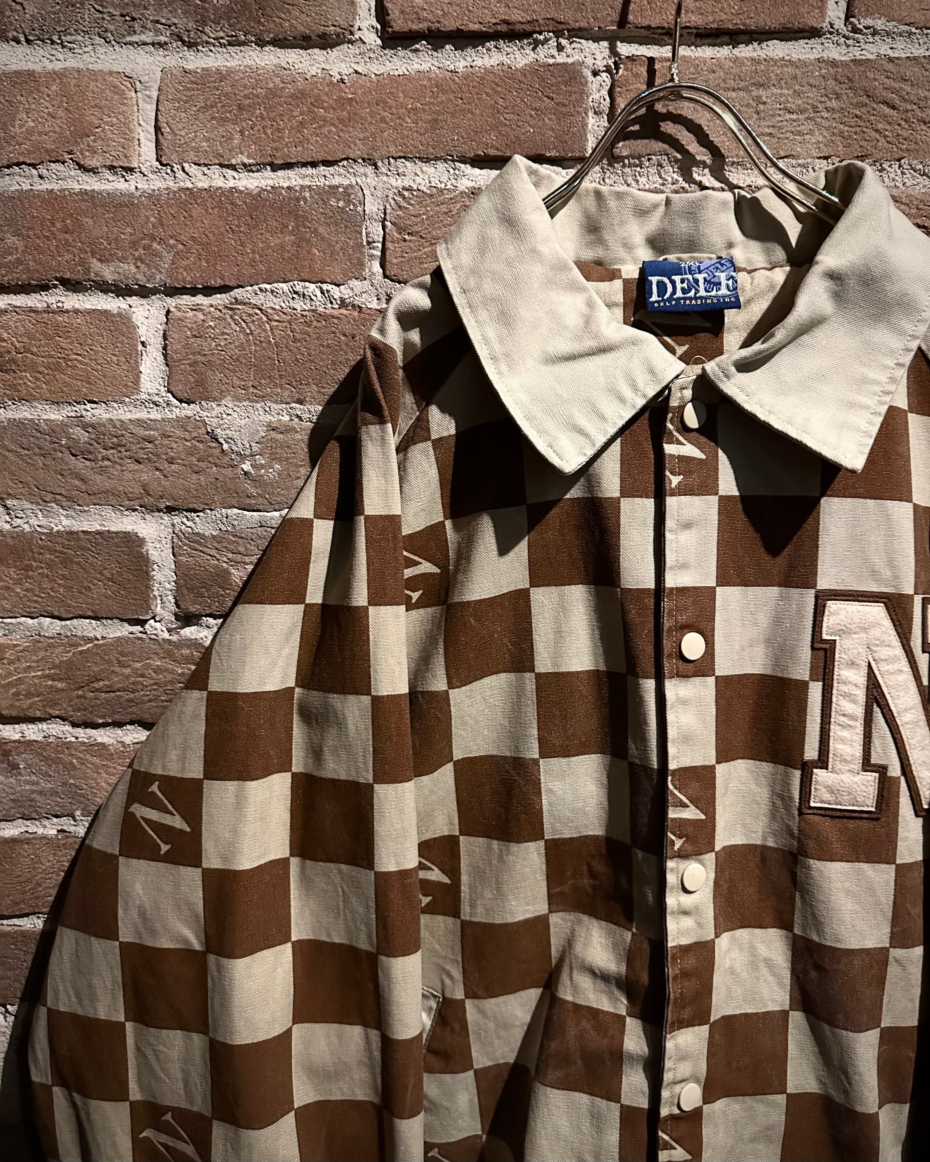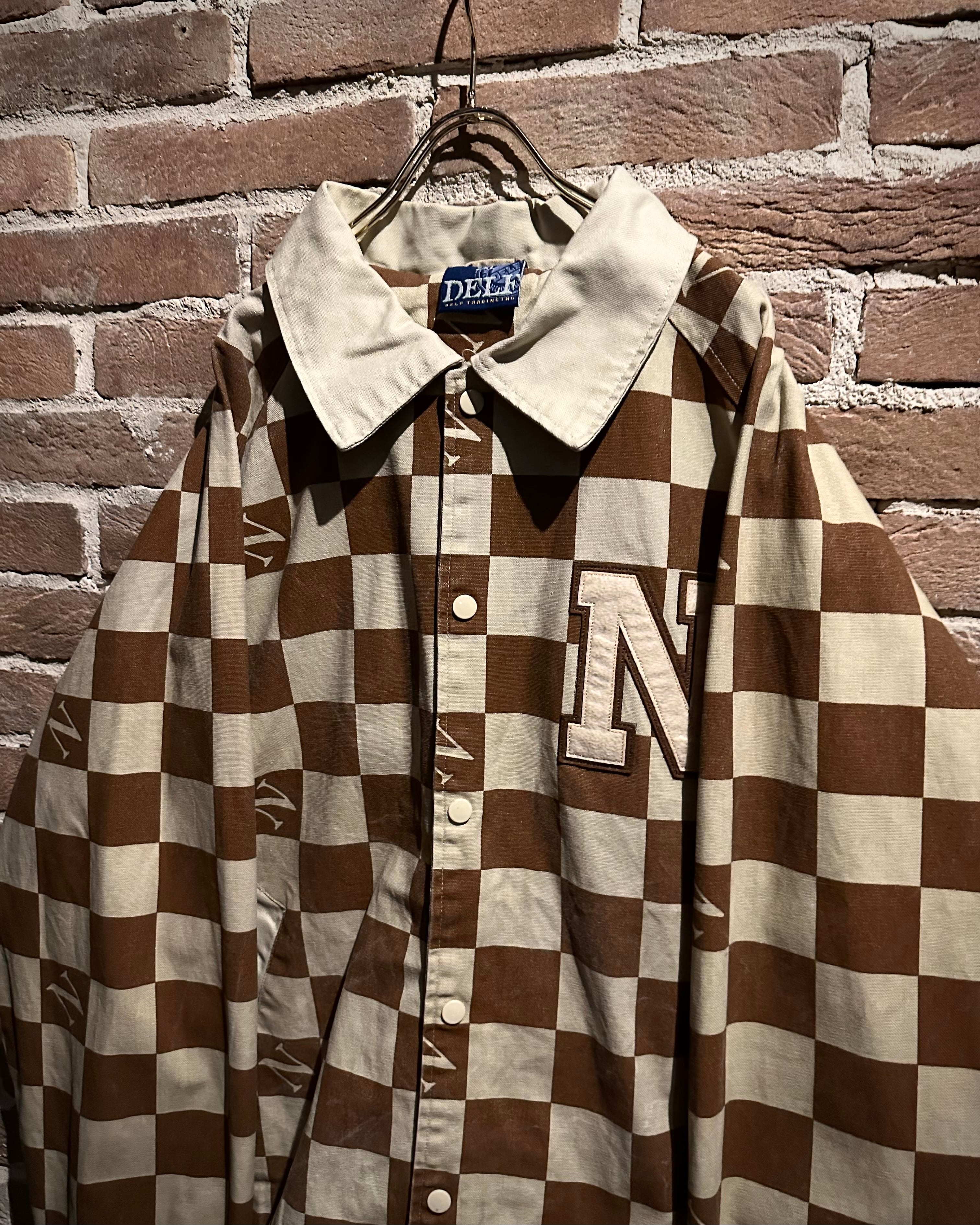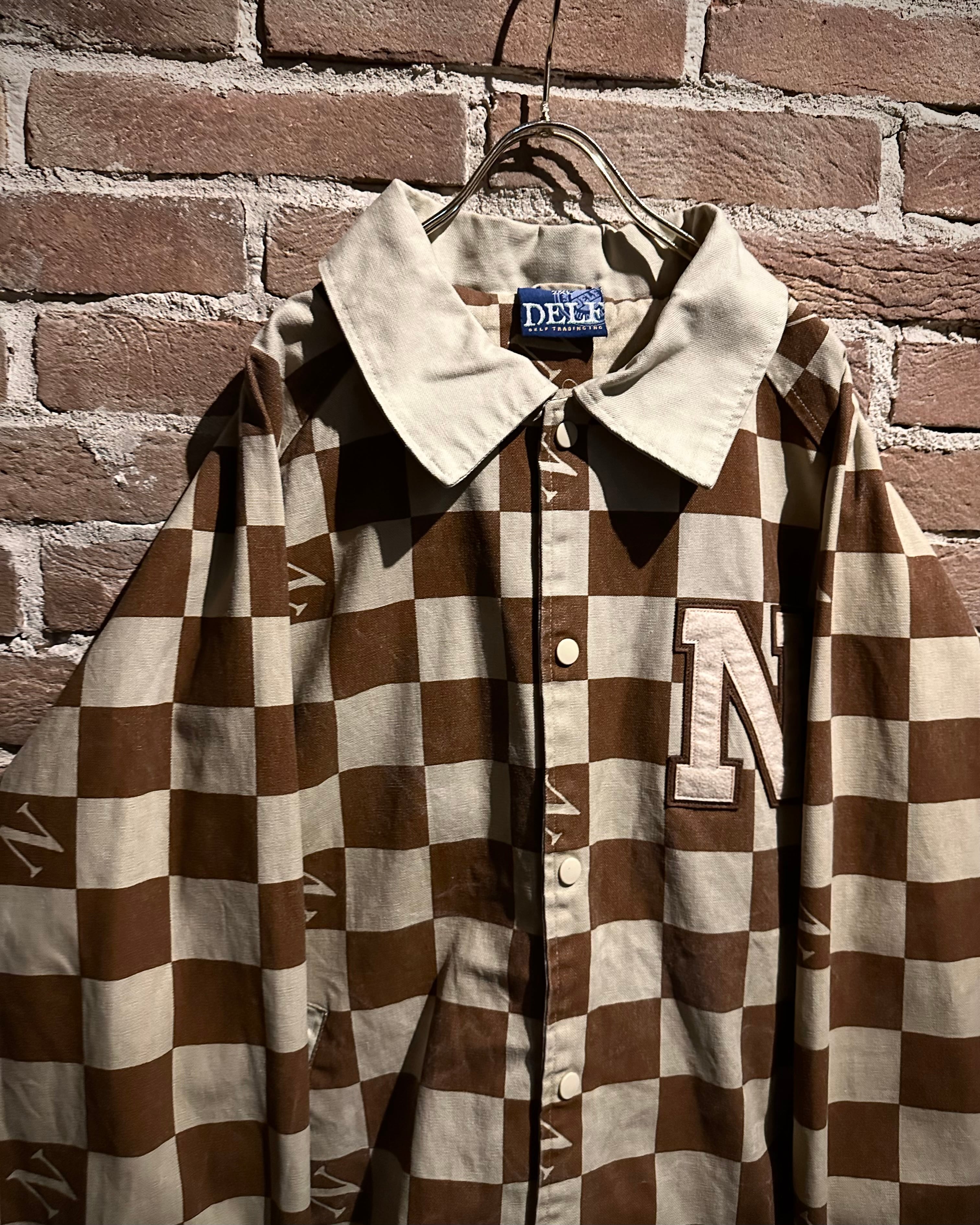 ブラウン×ベージュの落ち着いた配色は、主張がありながらも上品な印象。左胸にはロゴワッペンを施し、どこかスタジャンライクなムードをプラスしています。総柄でありながらバランスの取れたデザインで、ストリートとラグジュアリーの要素が絶妙にミックスされた仕上がりに。