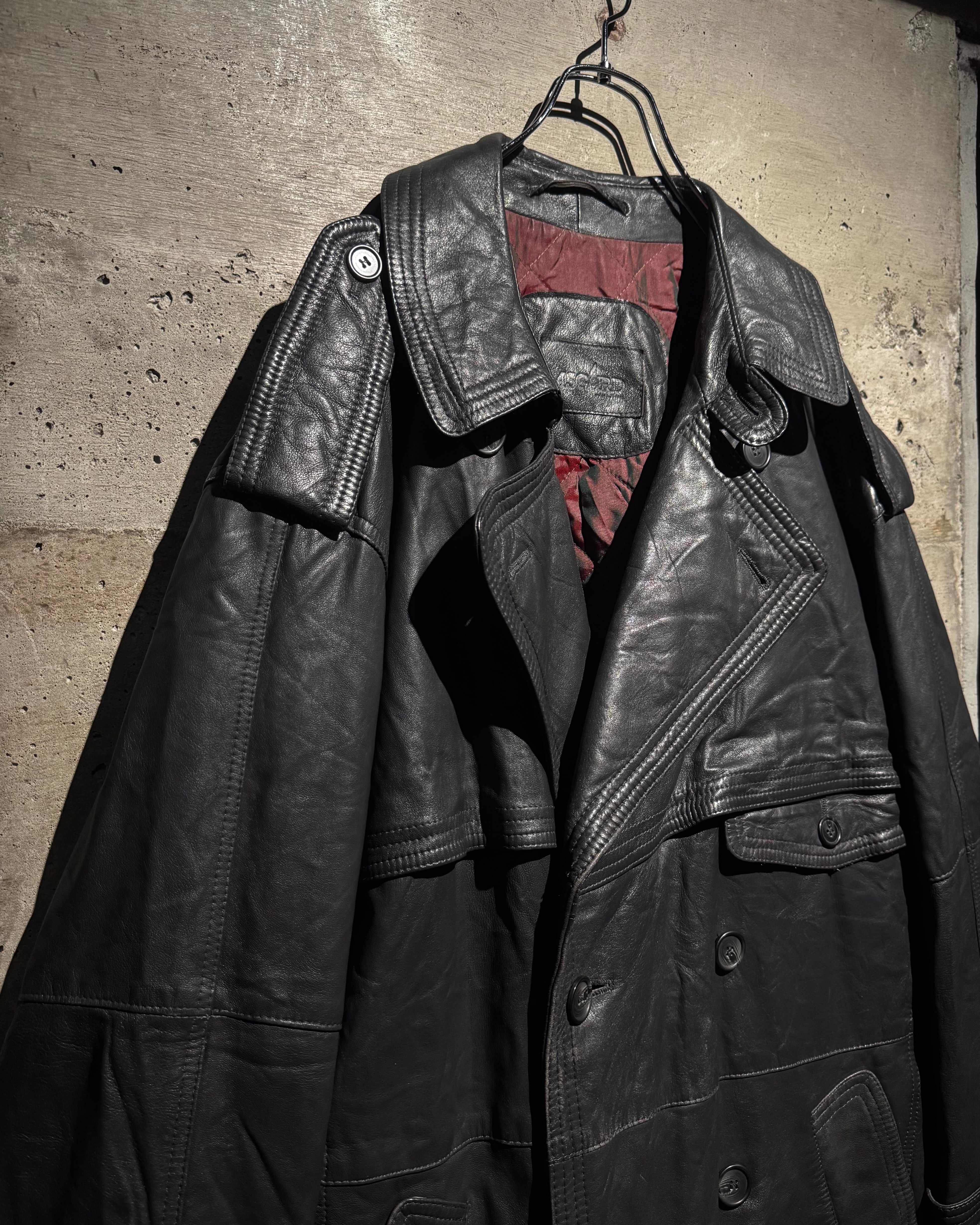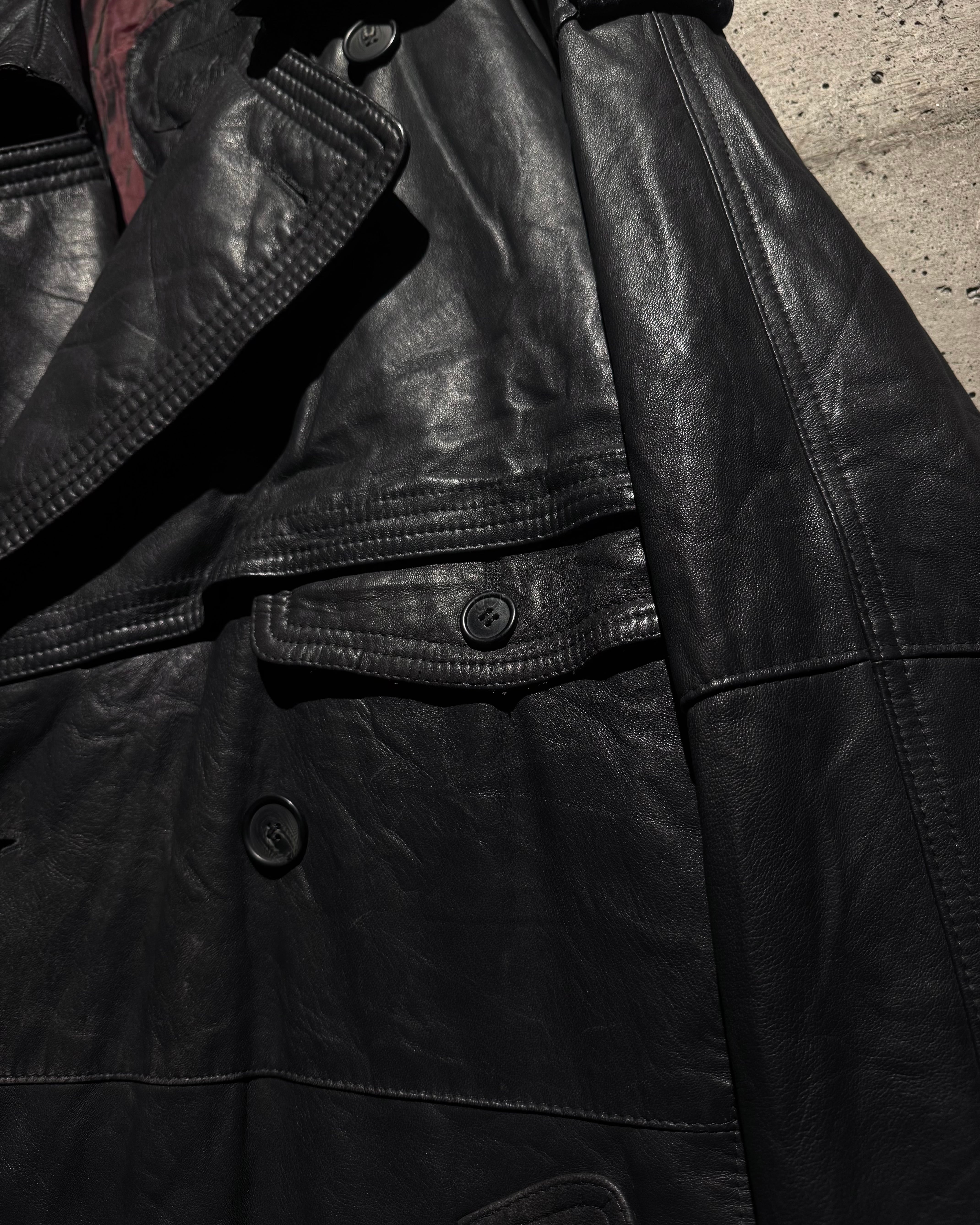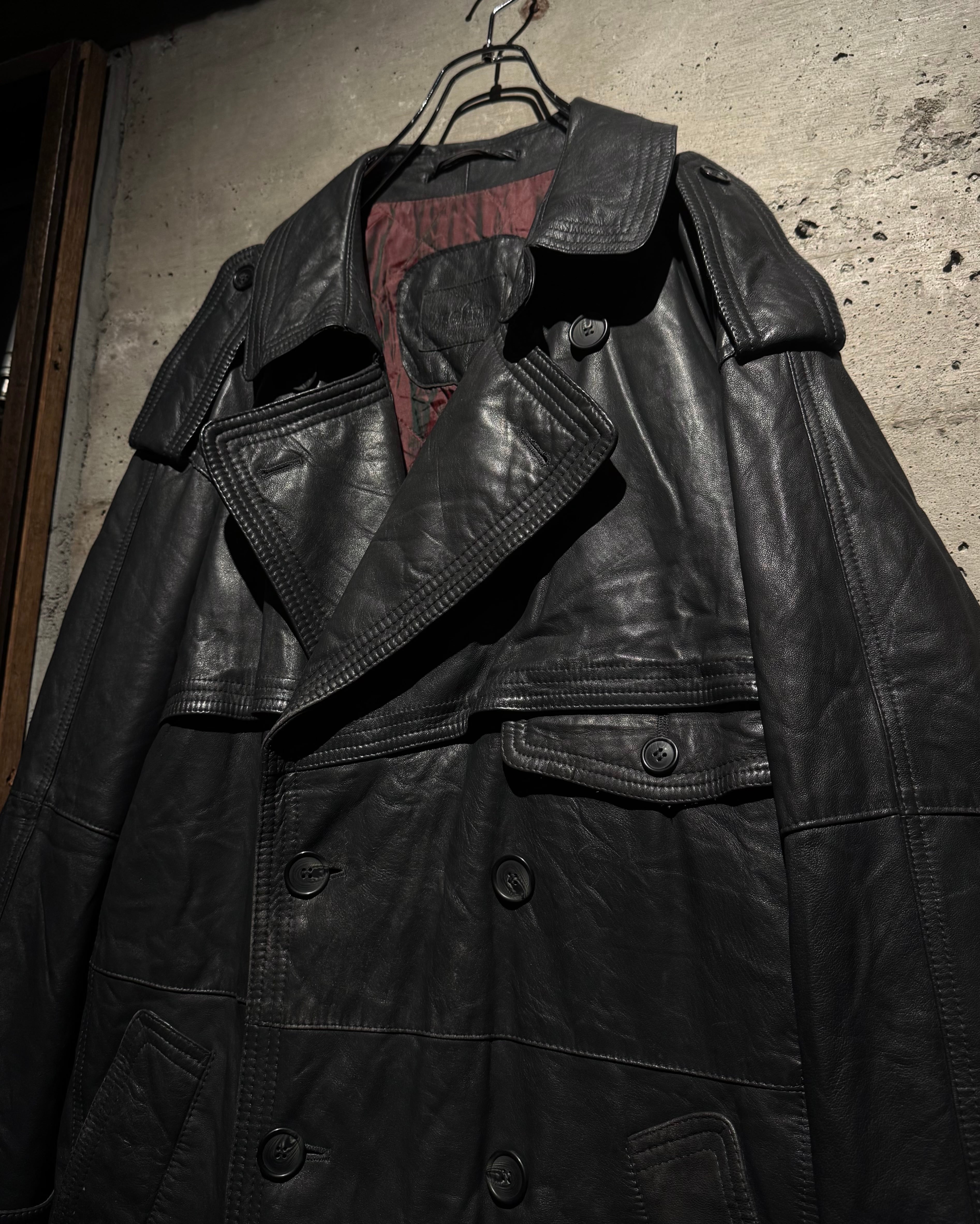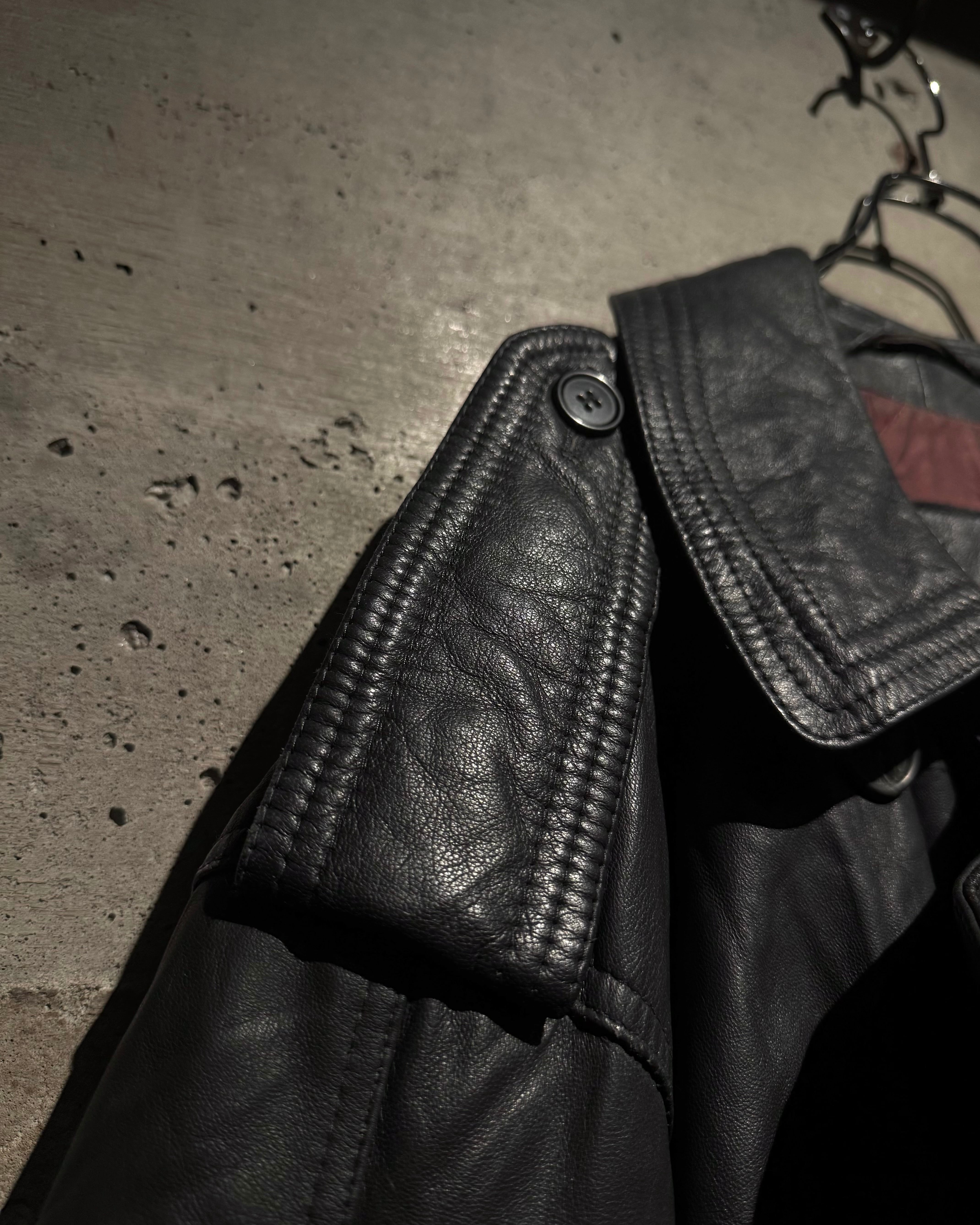 重厚かつしなやかなレザーを使用した、ユーロメイドのダブルブレストトレンチコートの1着。