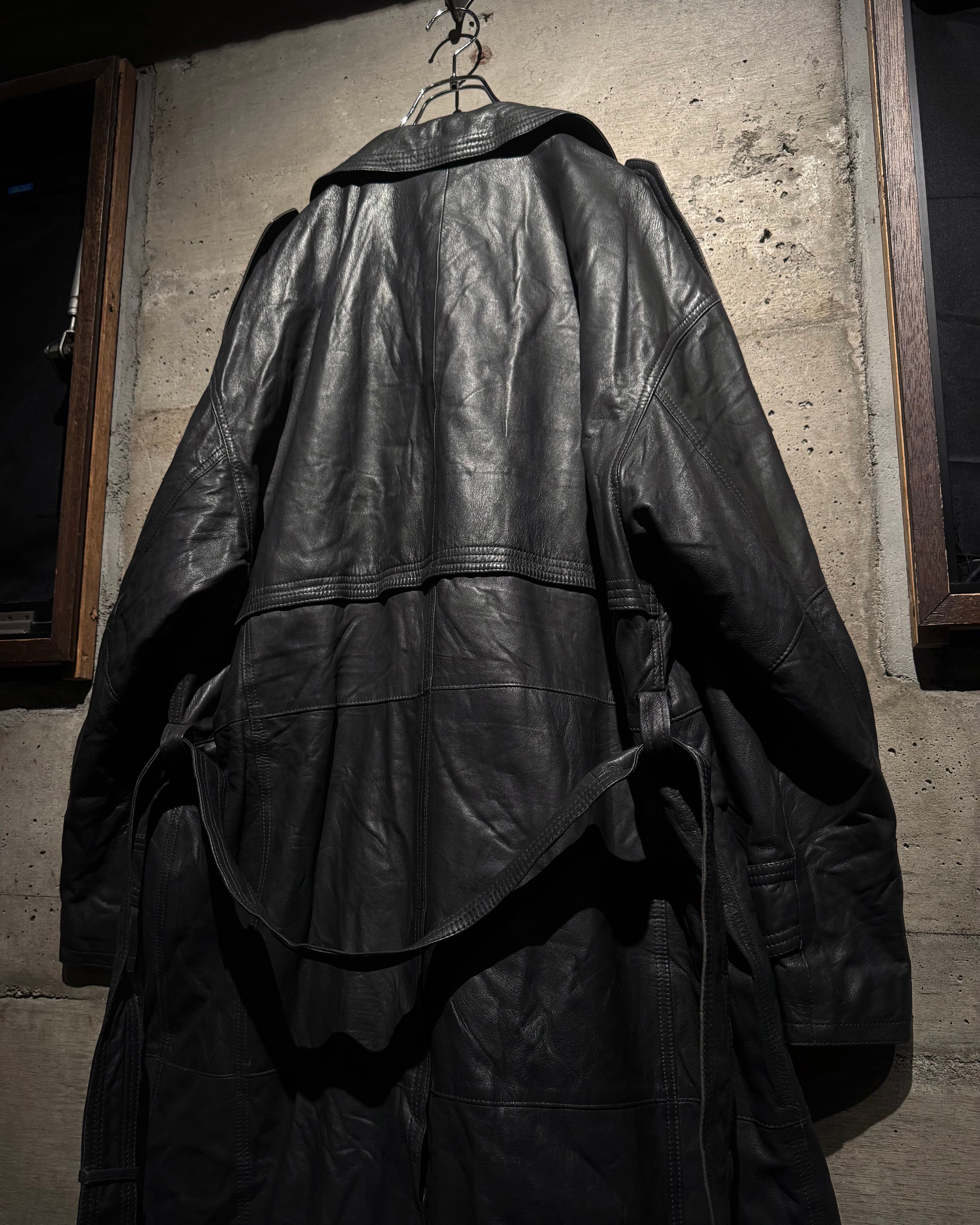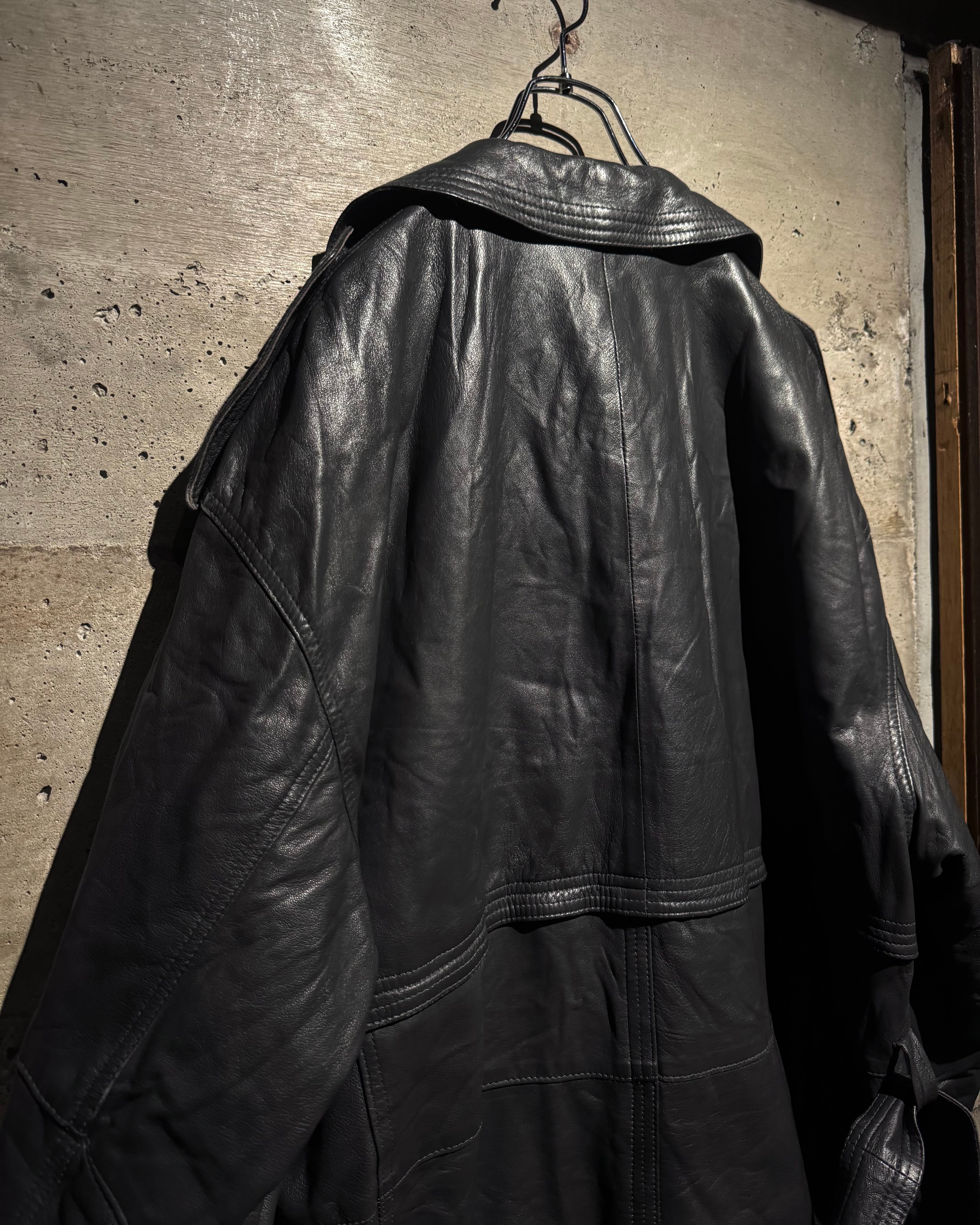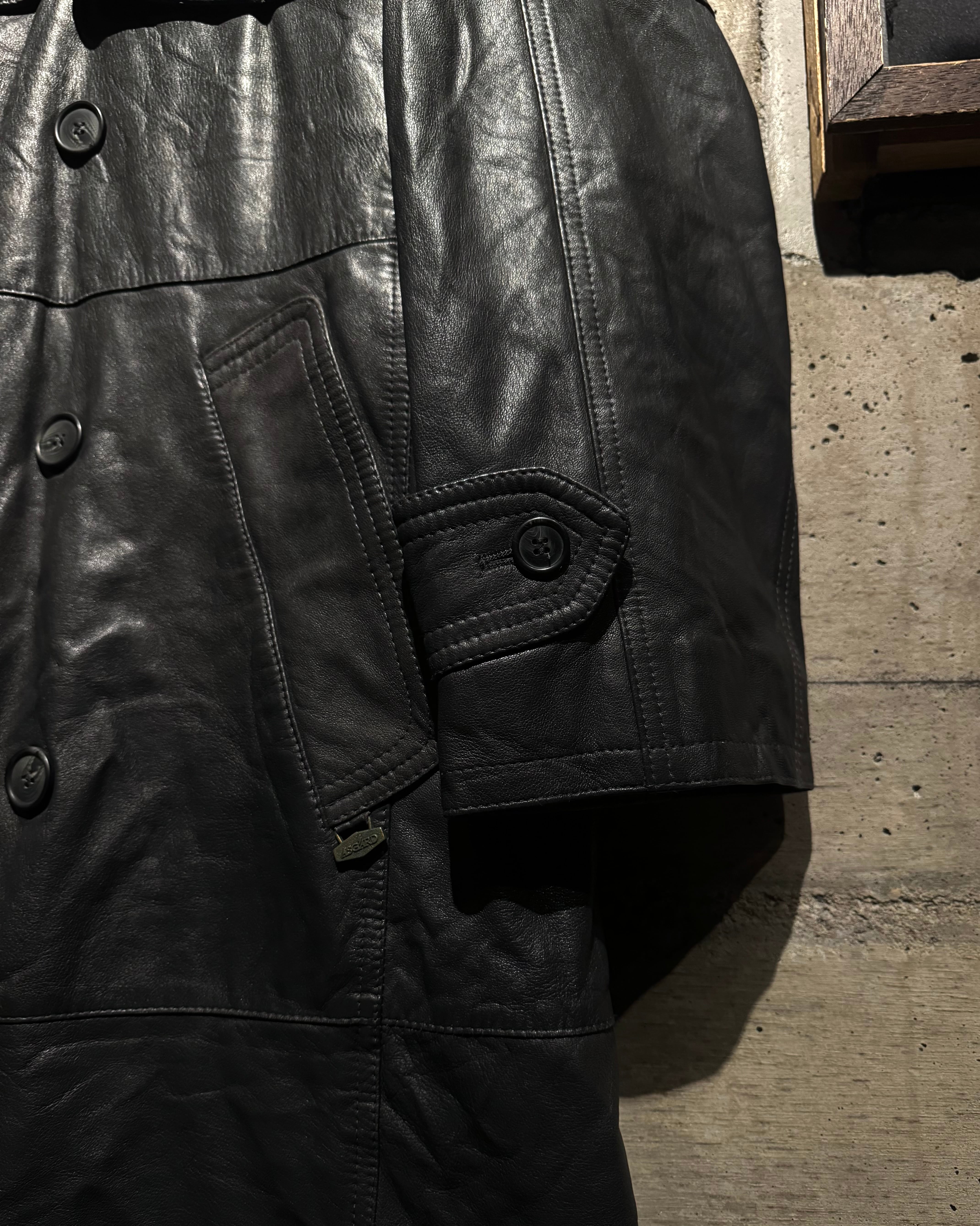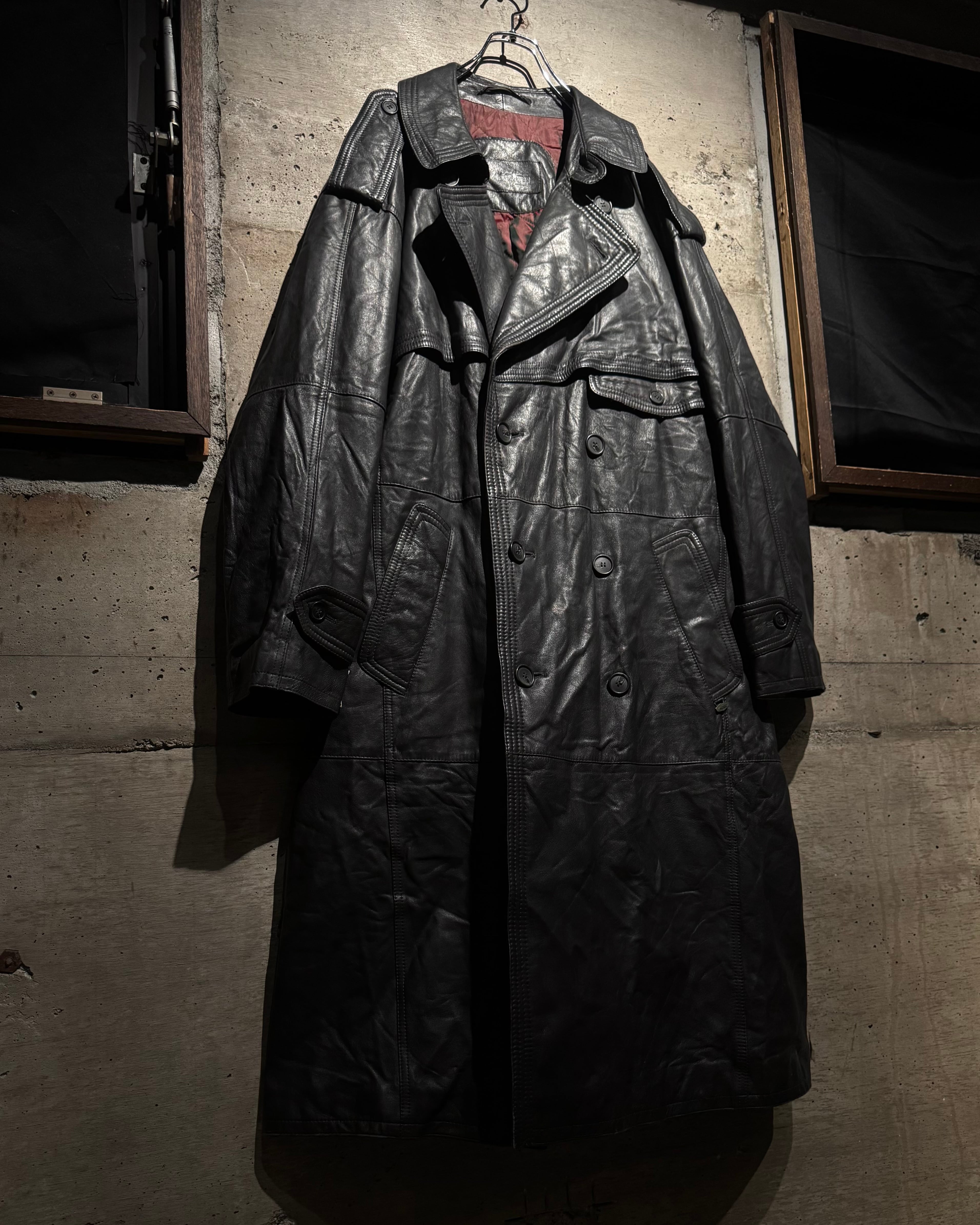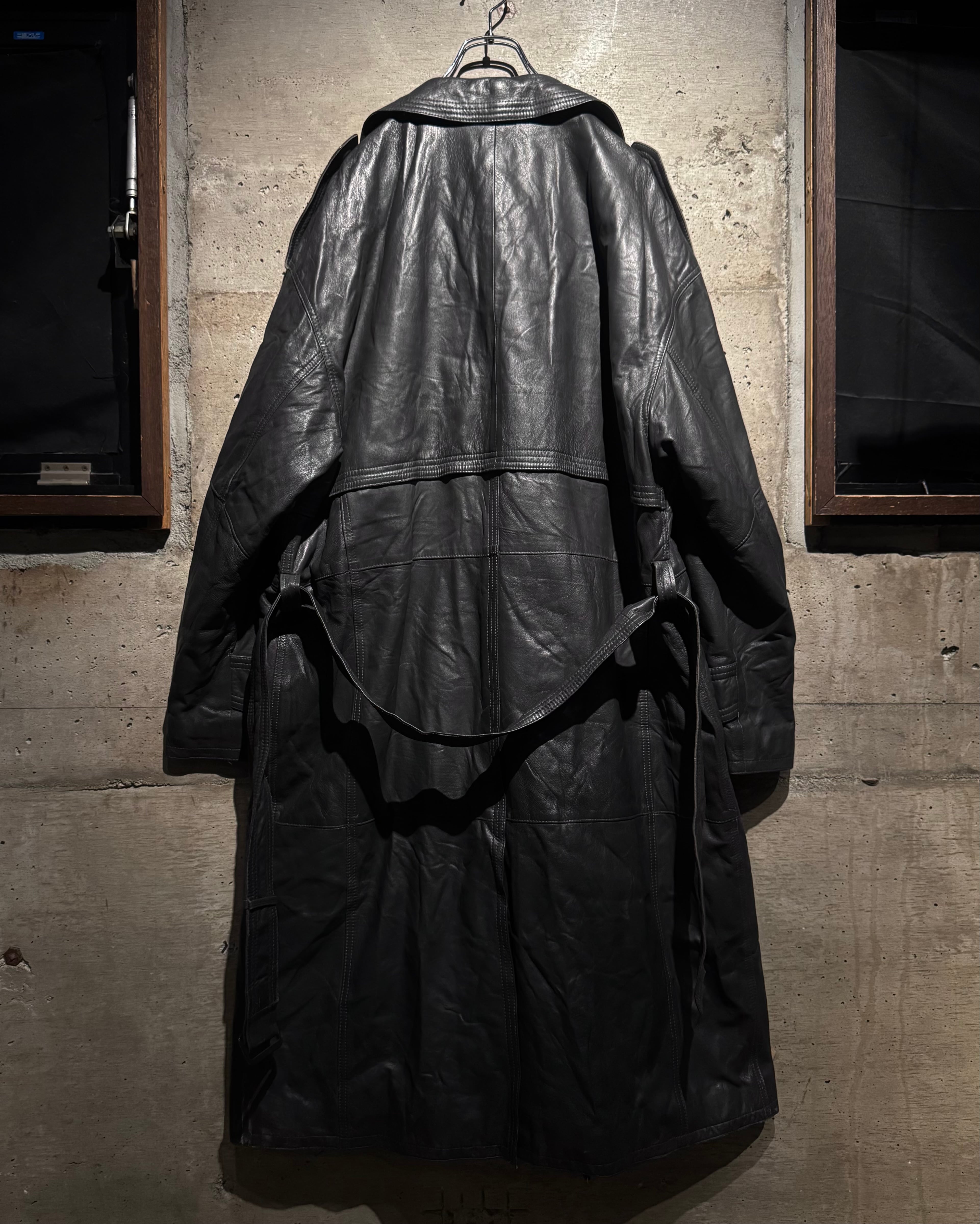 重厚かつしなやかなレザーを使用した、ユーロメイドのダブルブレストトレンチコートの1着。
