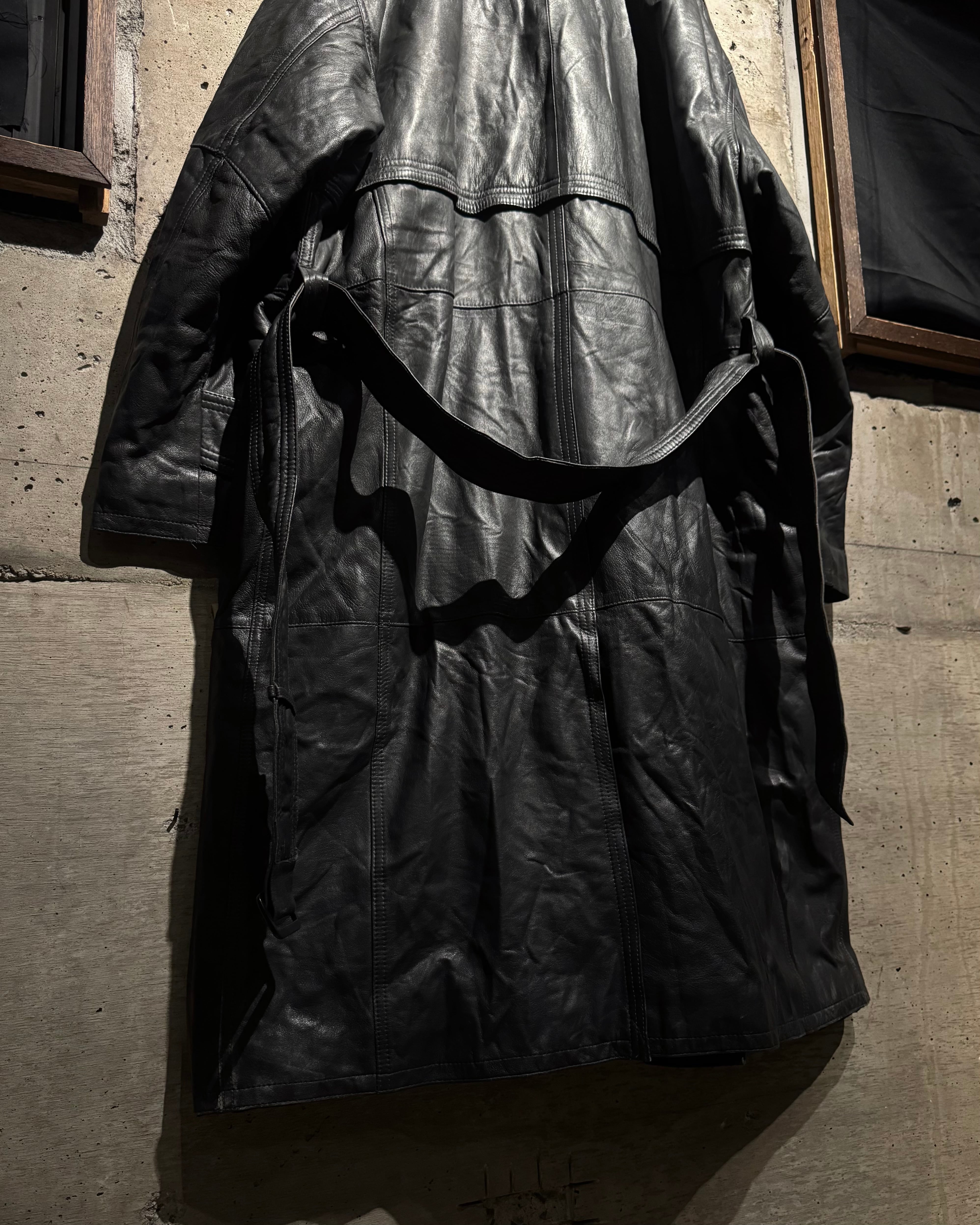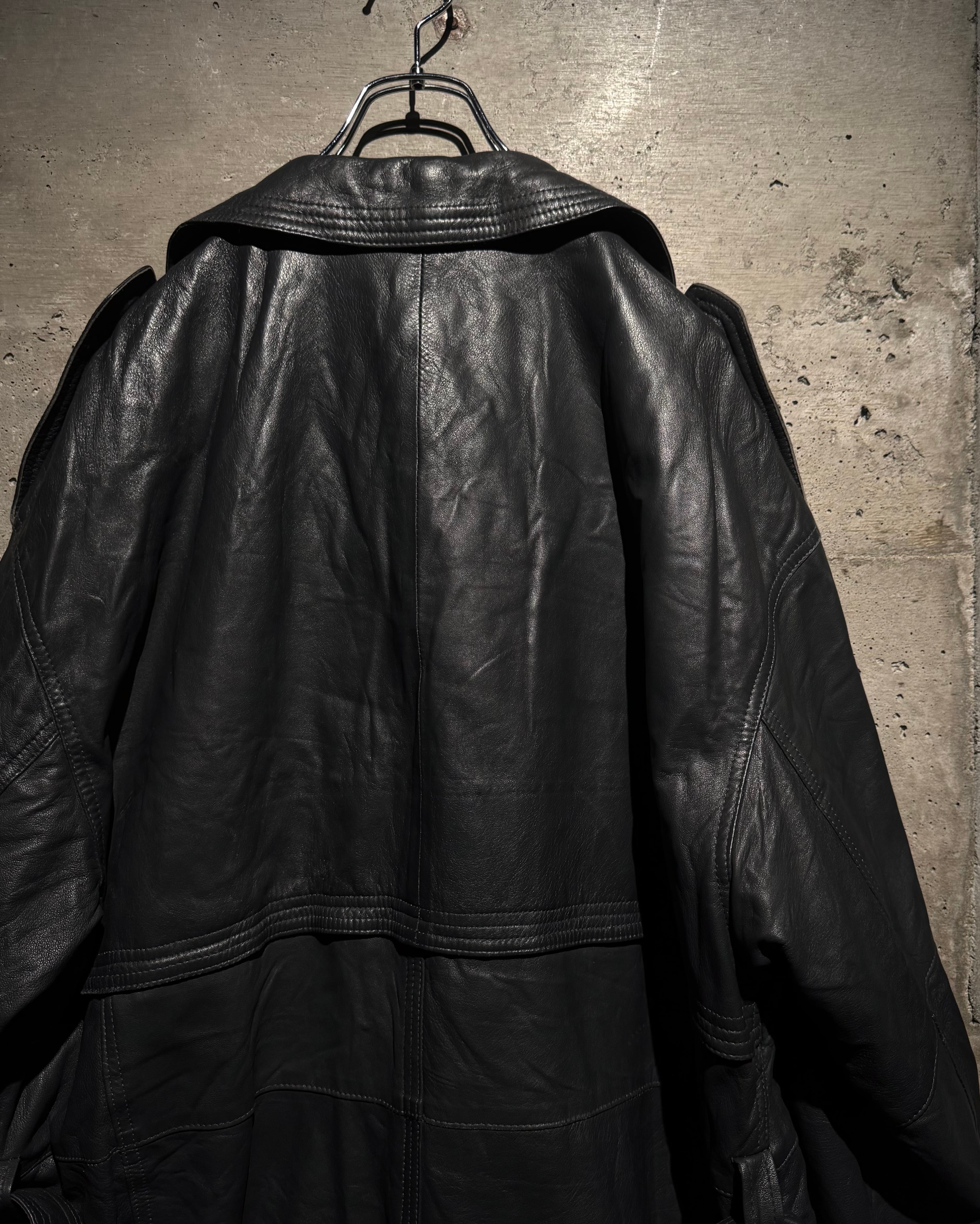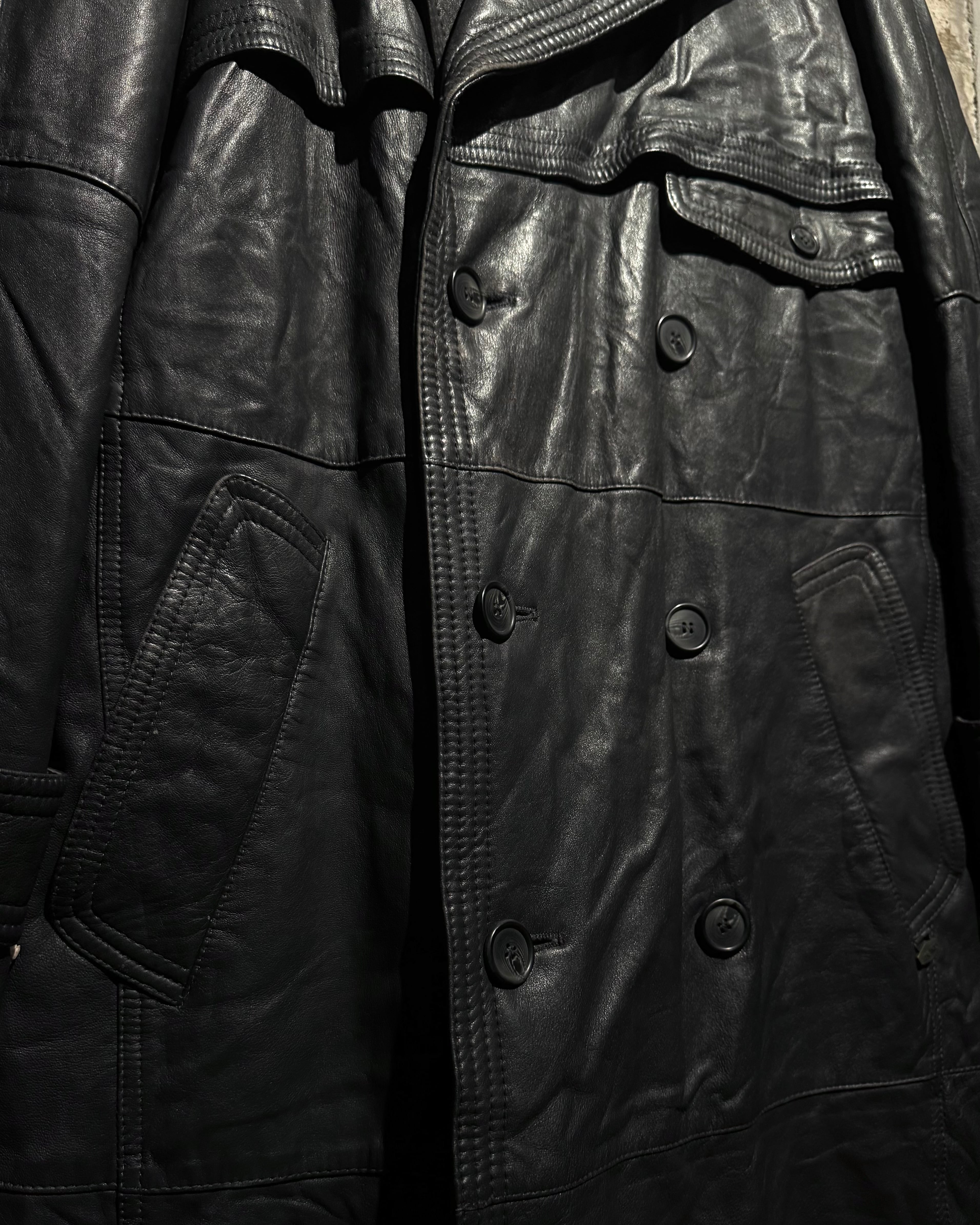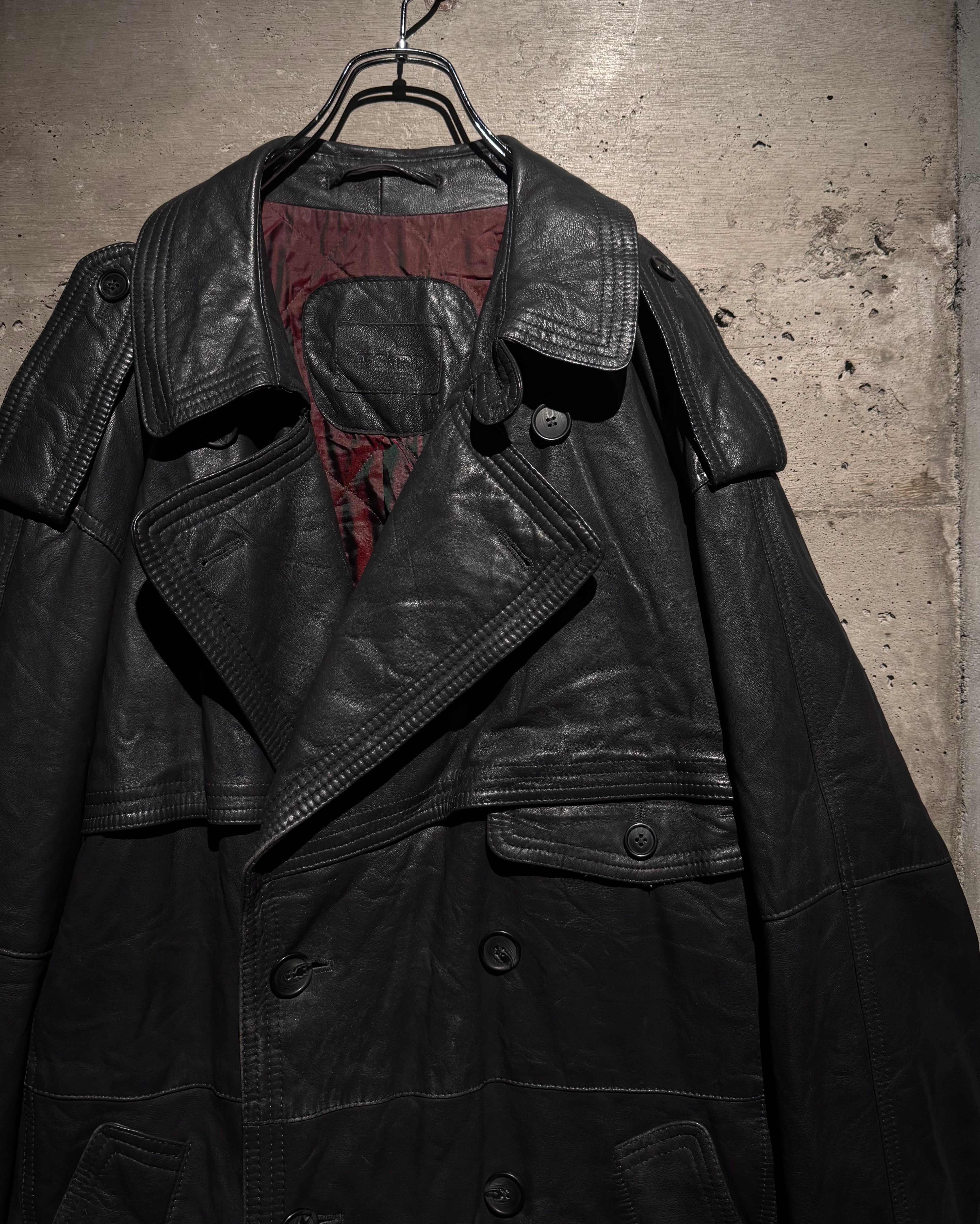重厚かつしなやかなレザーを使用した、ユーロメイドのダブルブレストトレンチコートの1着。