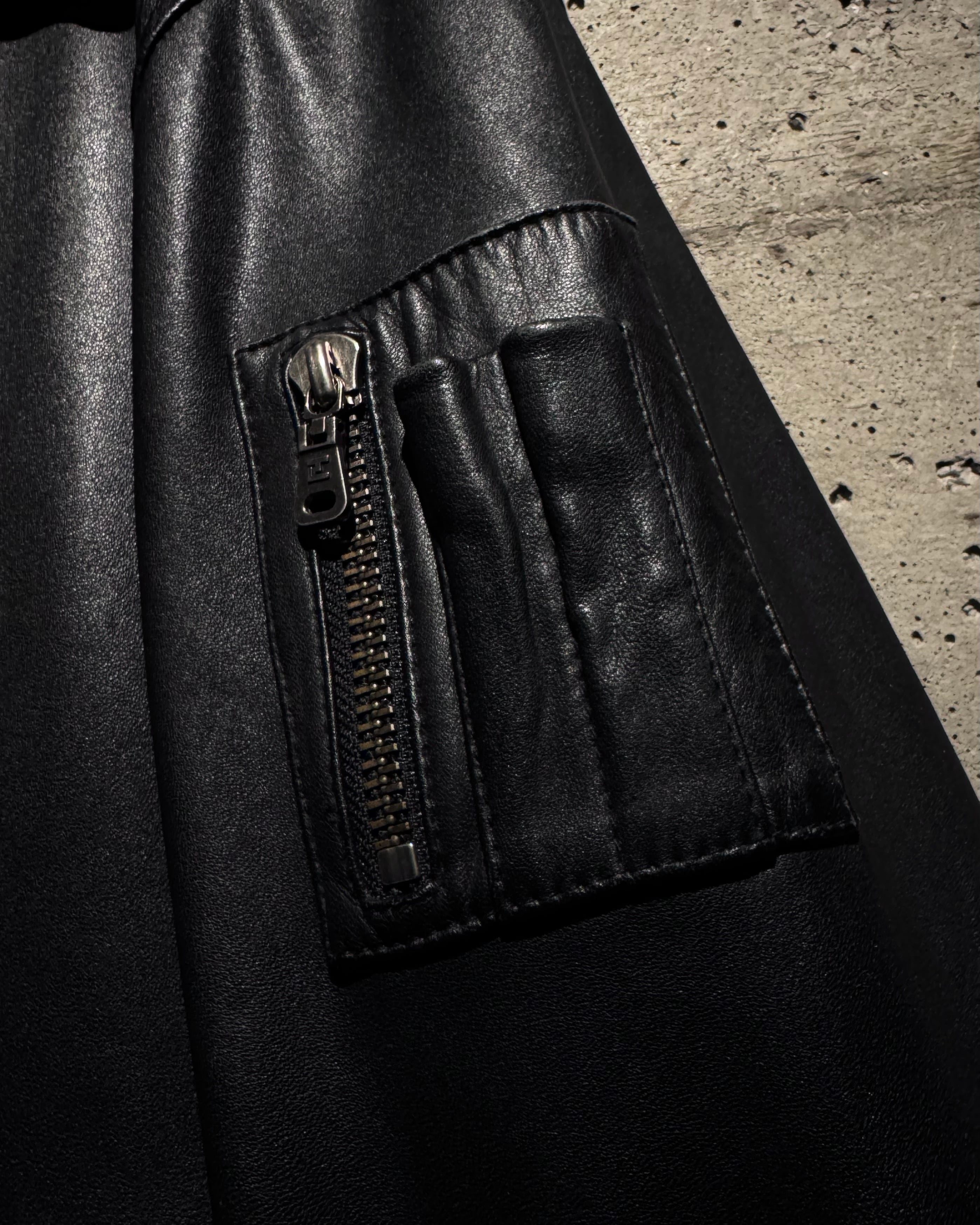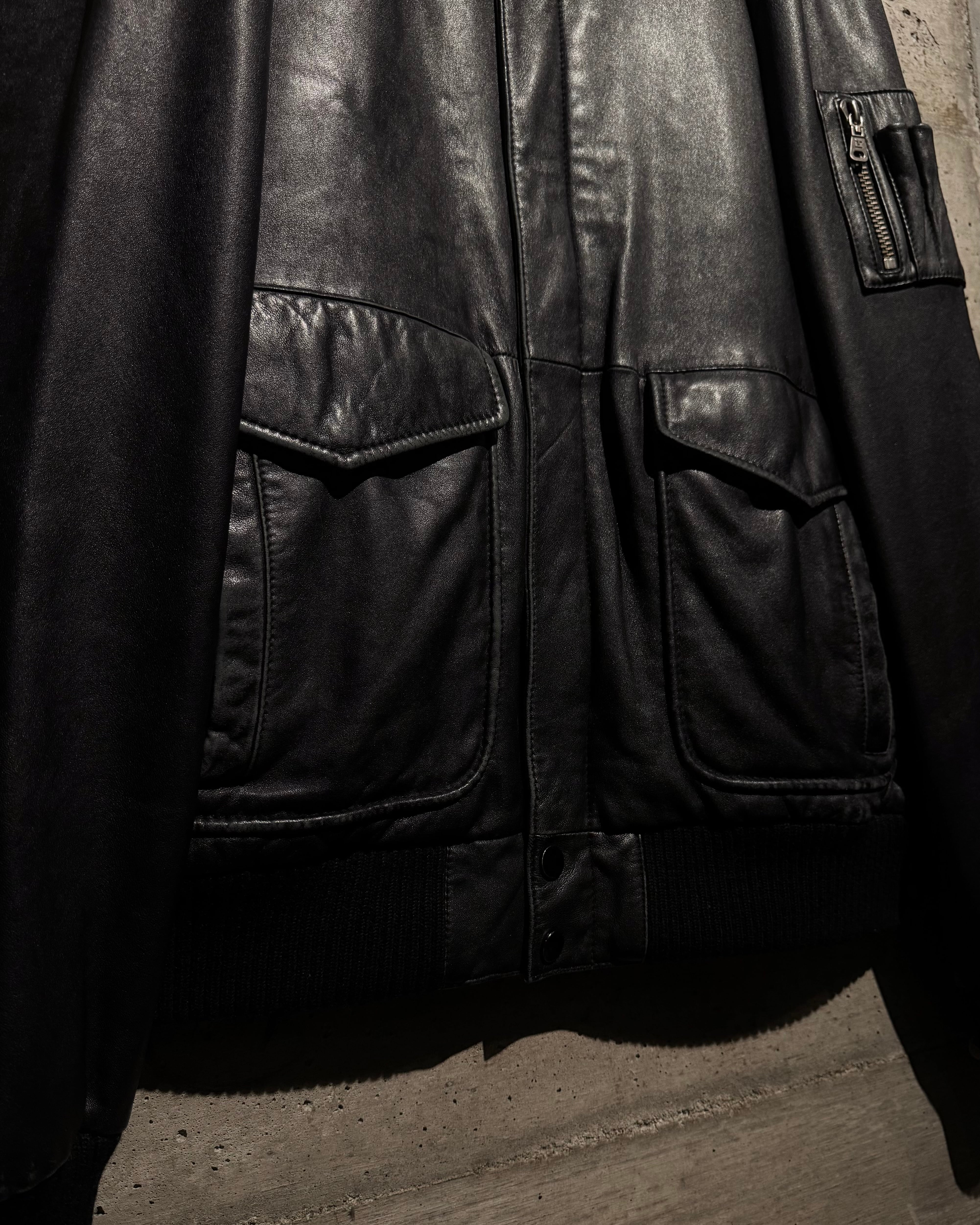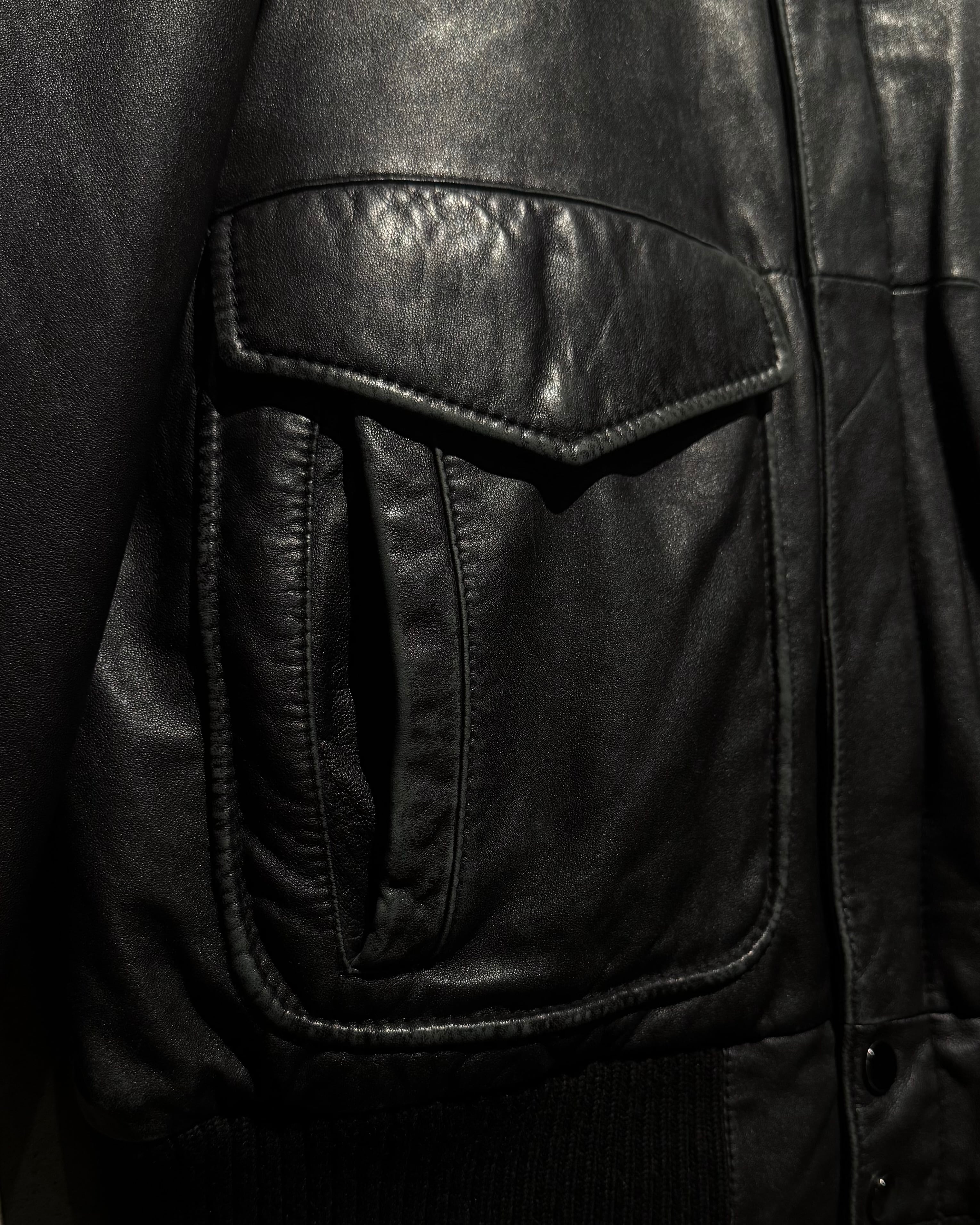 フライトジャケットのディテールを踏襲した、ラムナッパレザージャケットの1着。