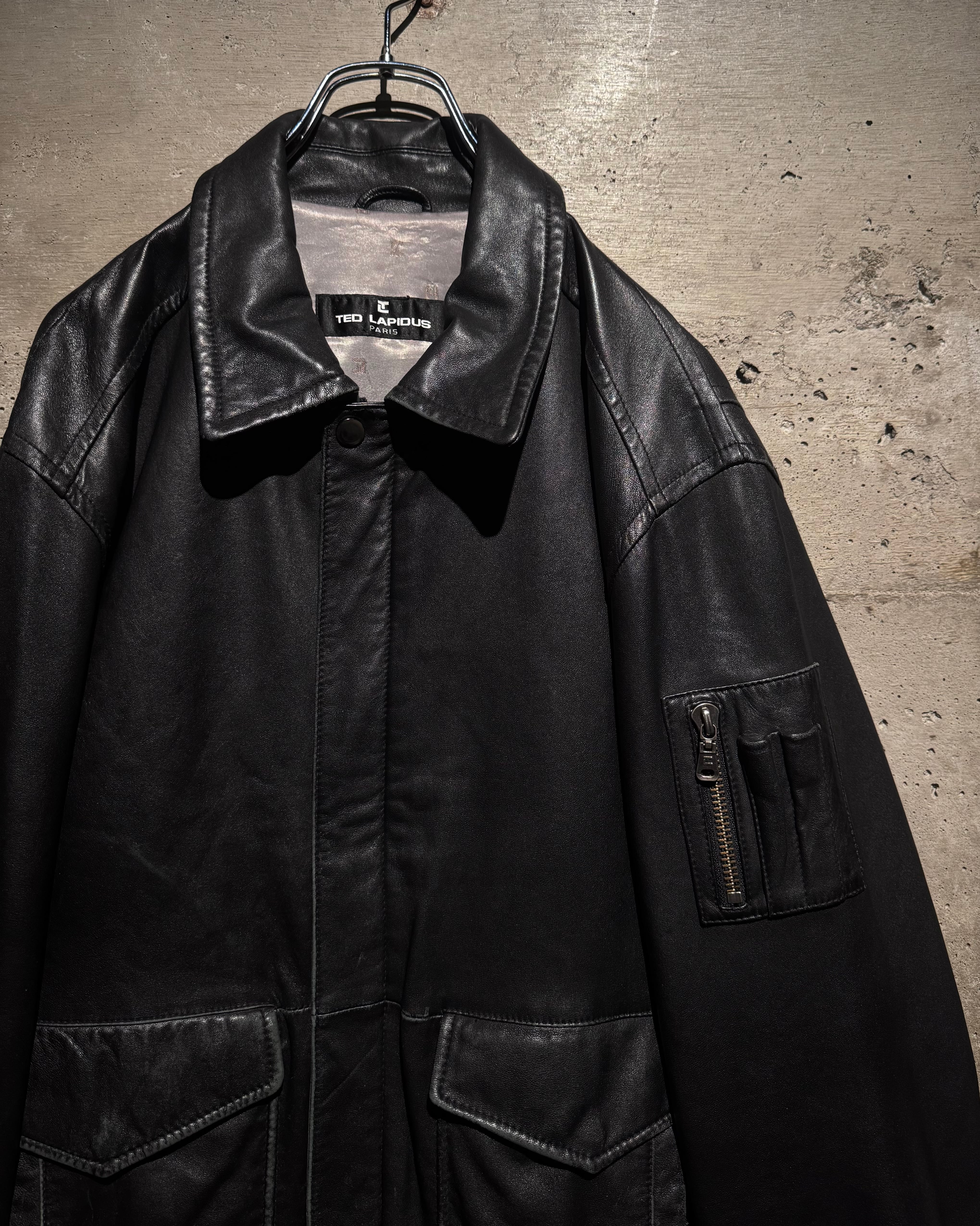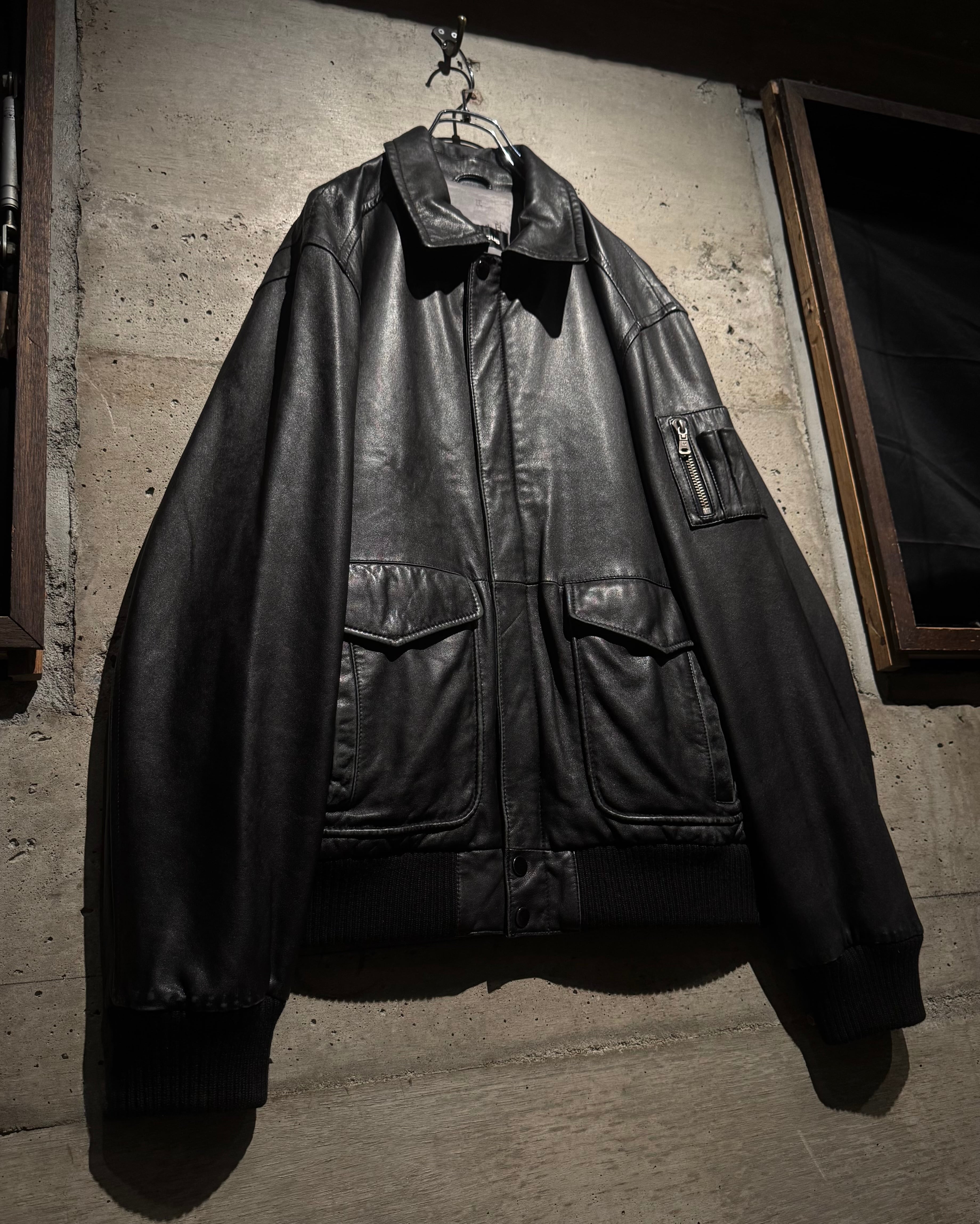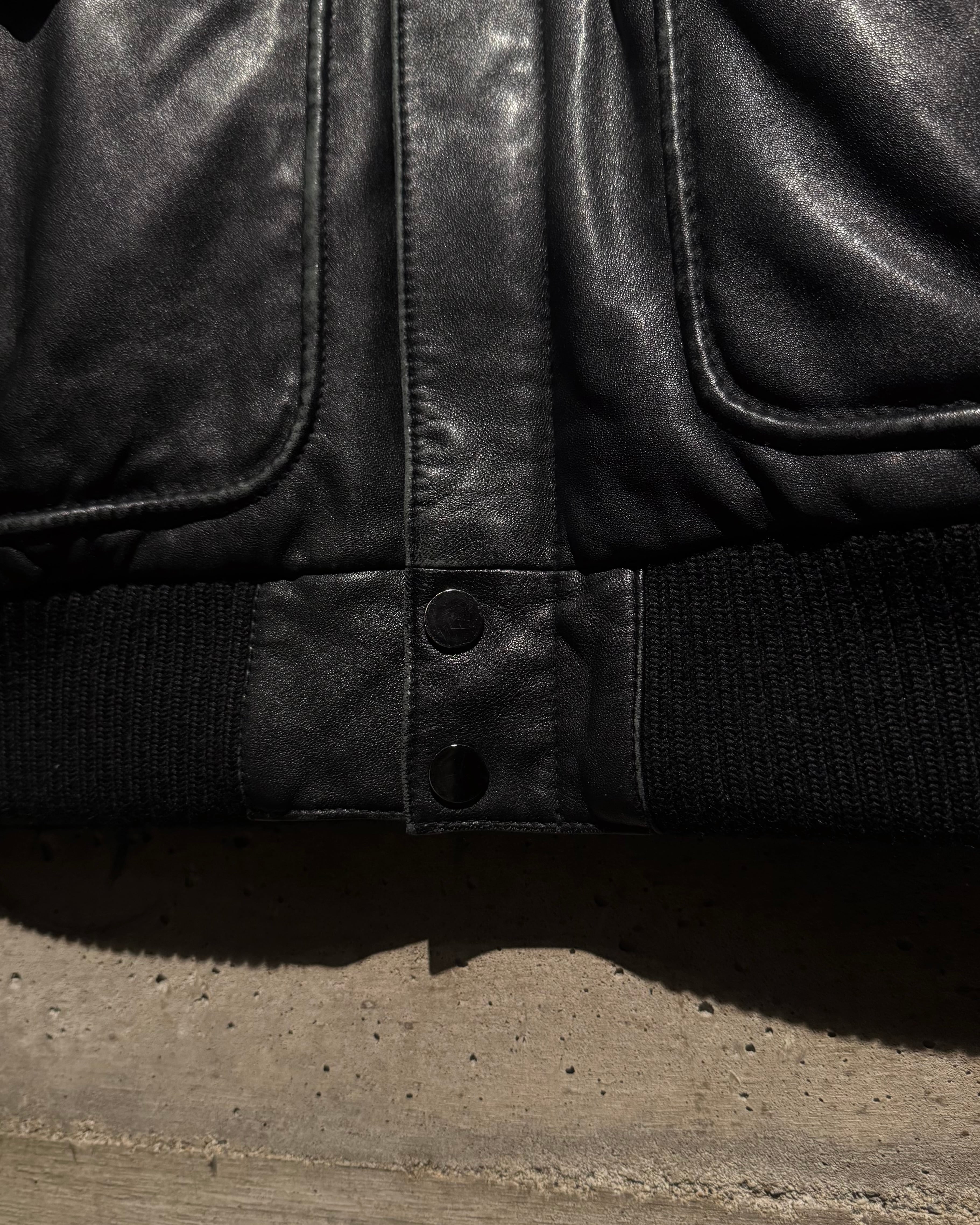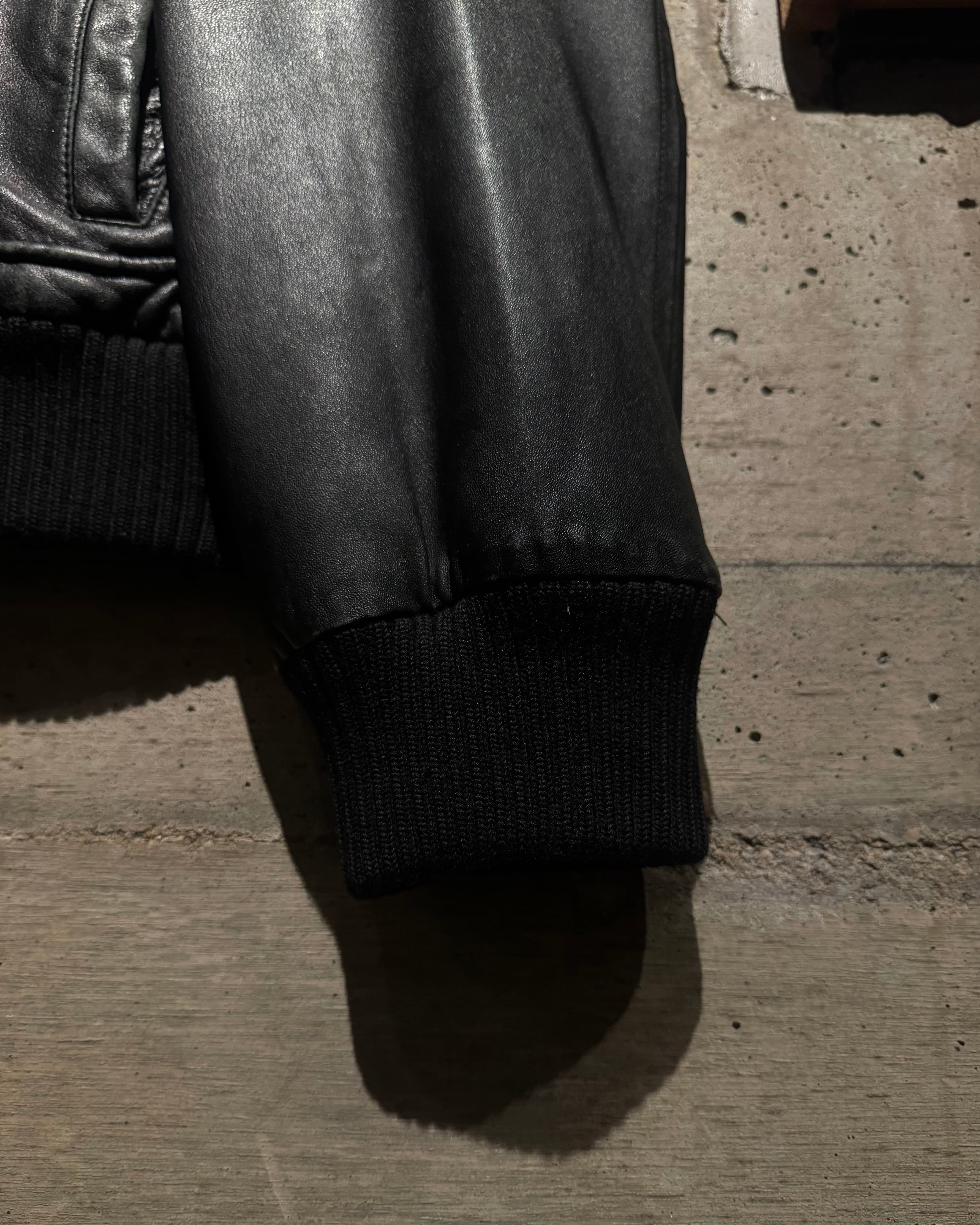 フライトジャケットのディテールを踏襲した、ラムナッパレザージャケットの1着。