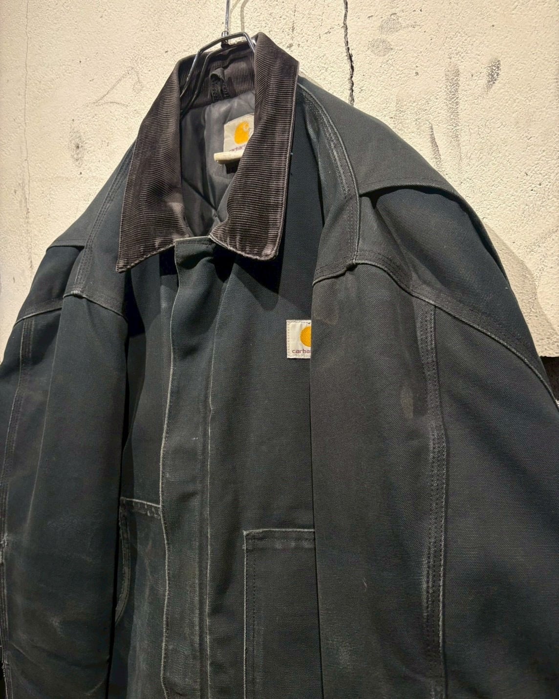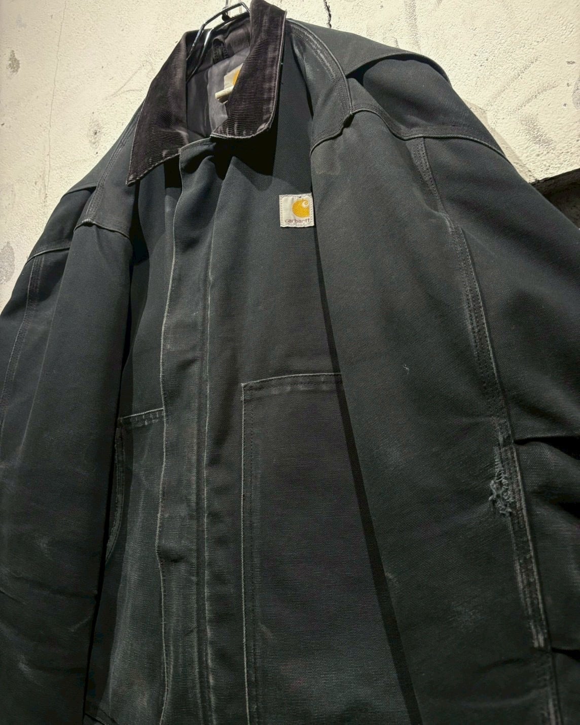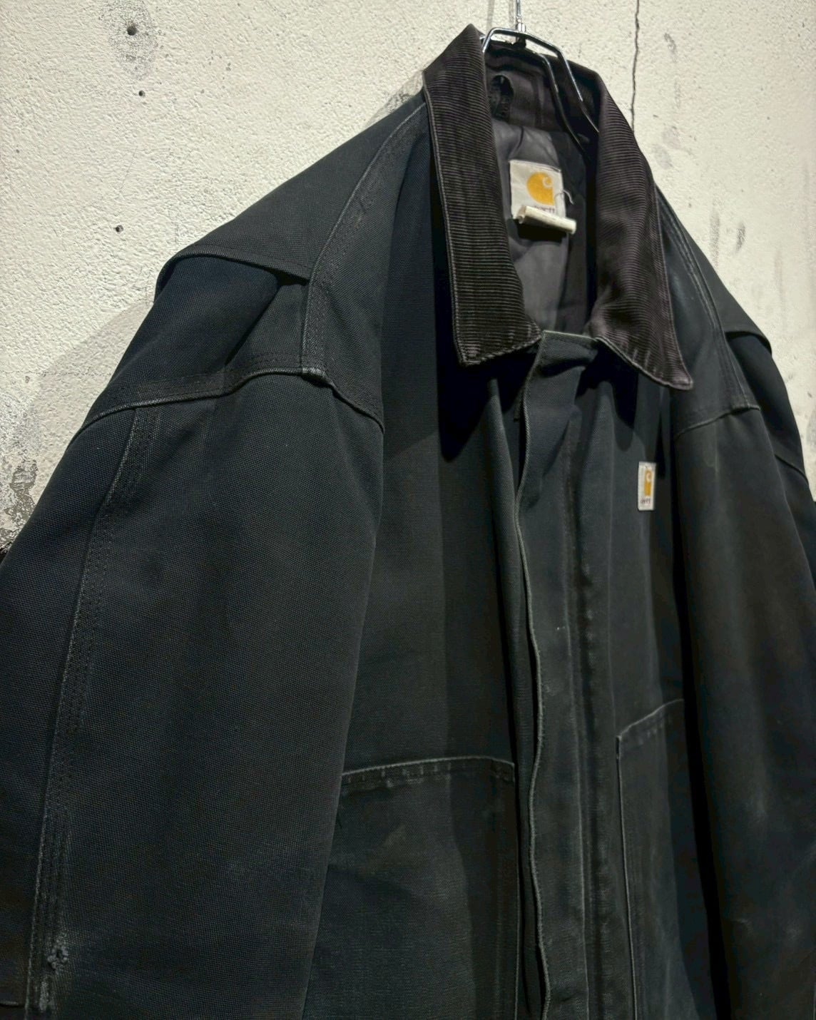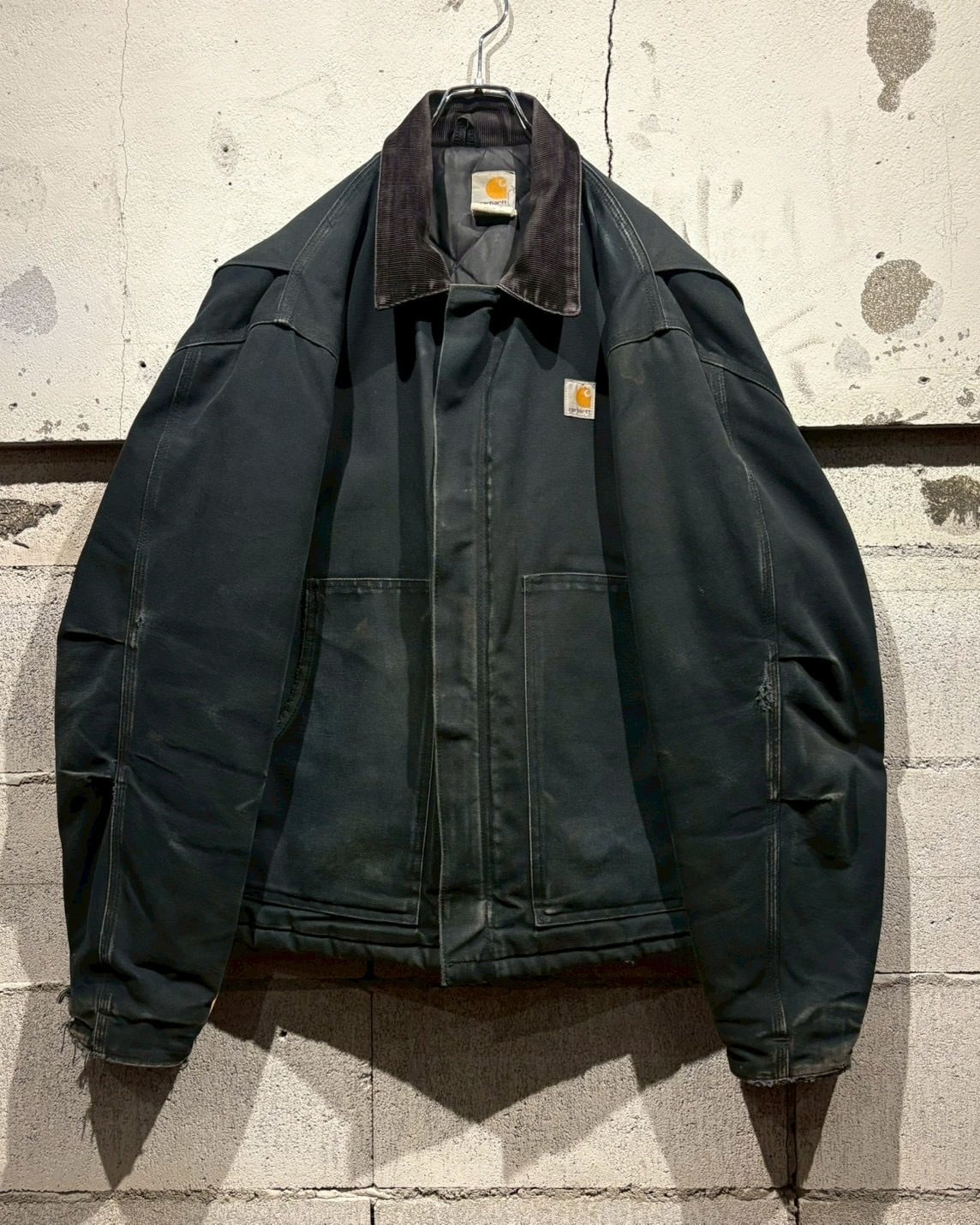 経年の変化による美しいフェードの効いたブラックのトラディショナルジャケット。昨今のCarharttの高騰化と共にバイイングしづらくなった個体で、言わずもがなスペシャルです。