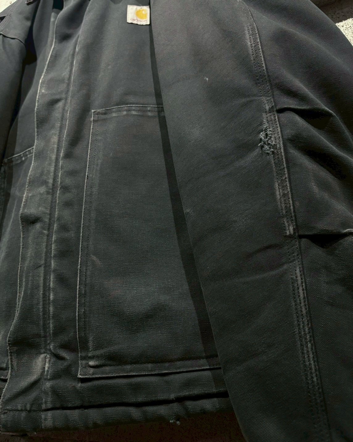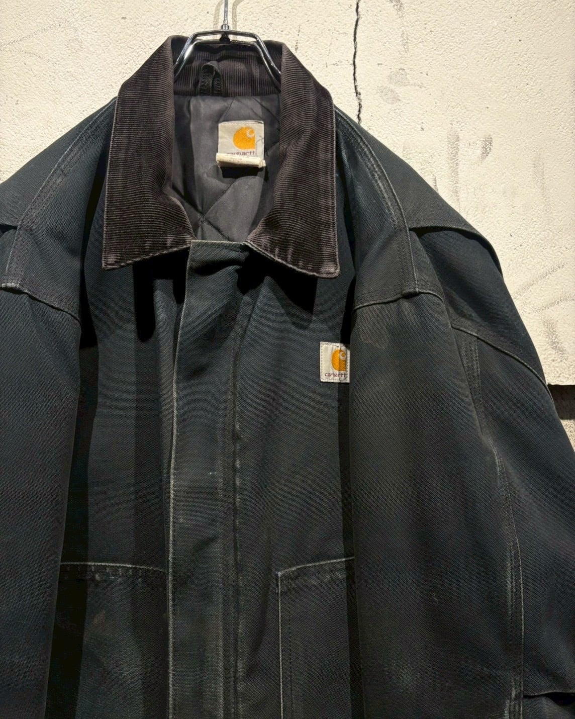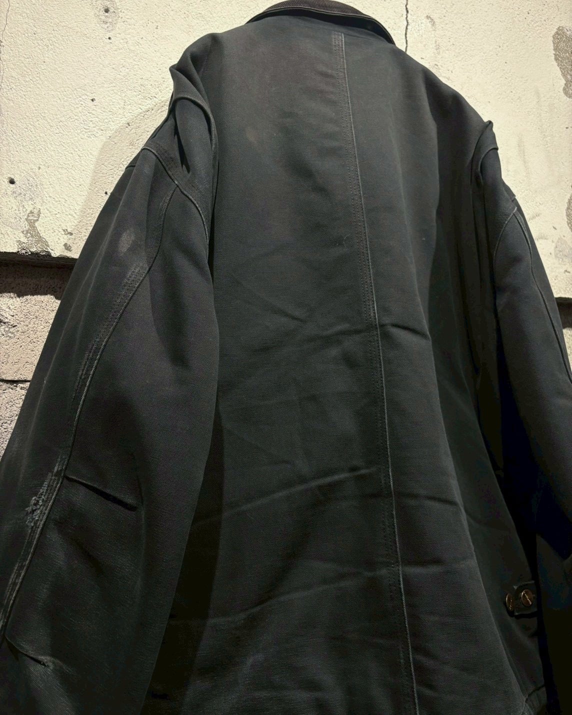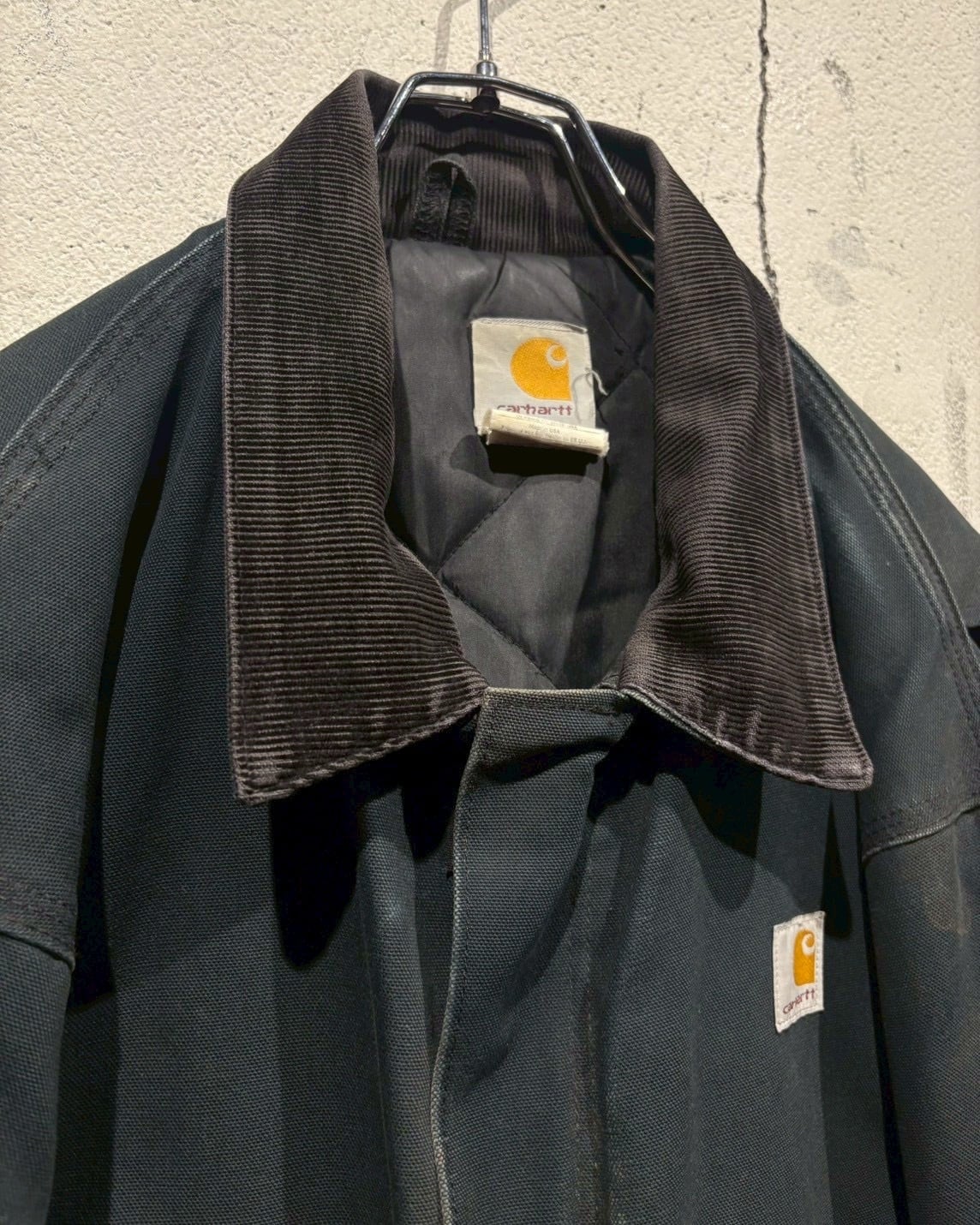 経年の変化による美しいフェードの効いたブラックのトラディショナルジャケット。昨今のCarharttの高騰化と共にバイイングしづらくなった個体で、言わずもがなスペシャルです。