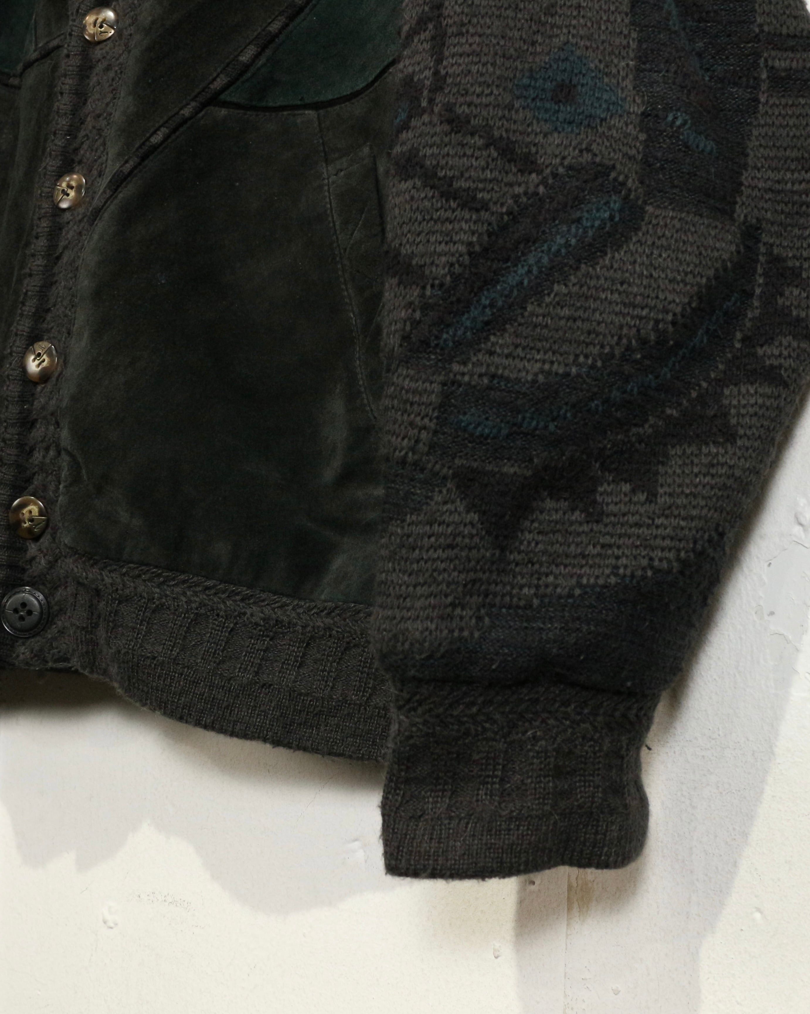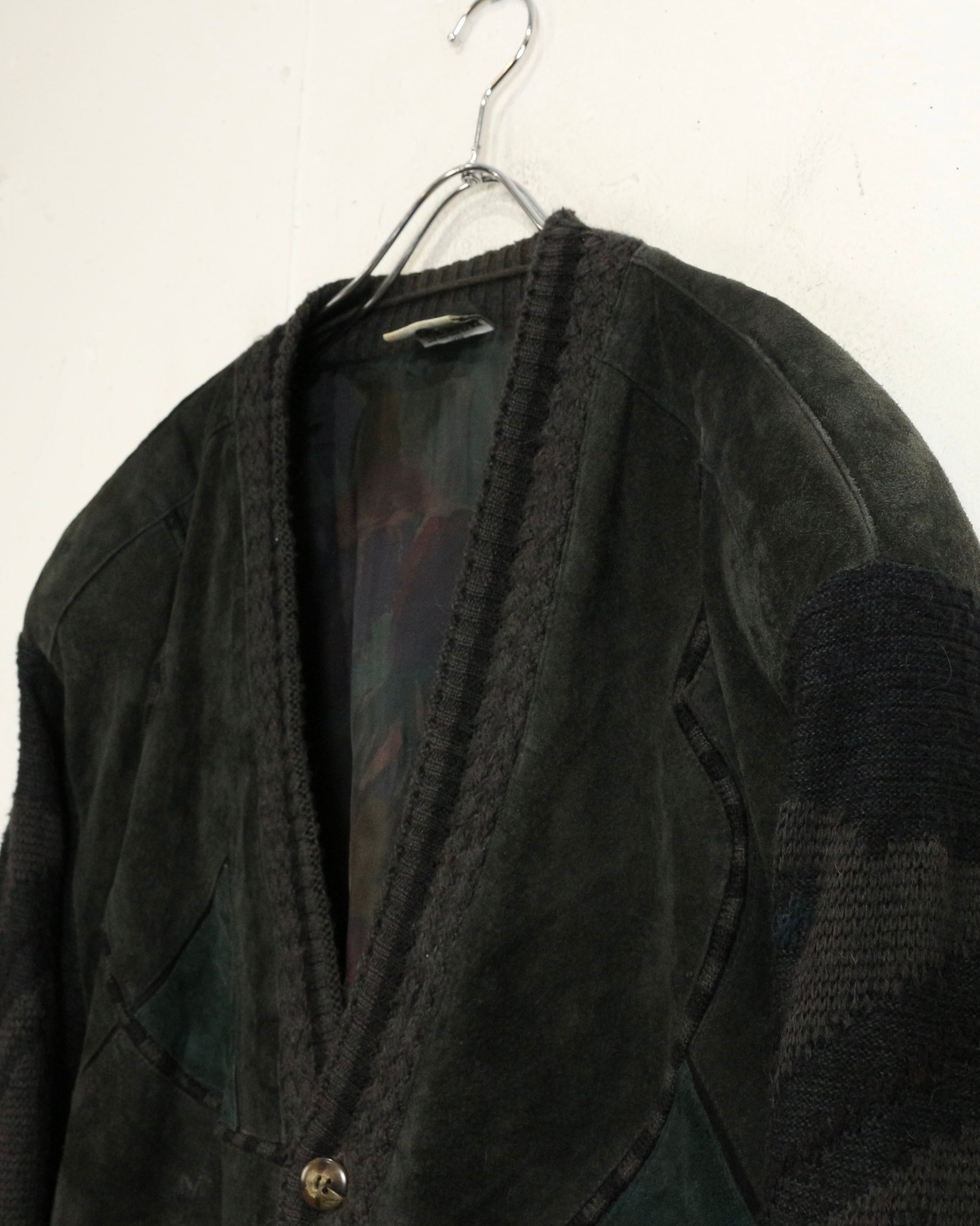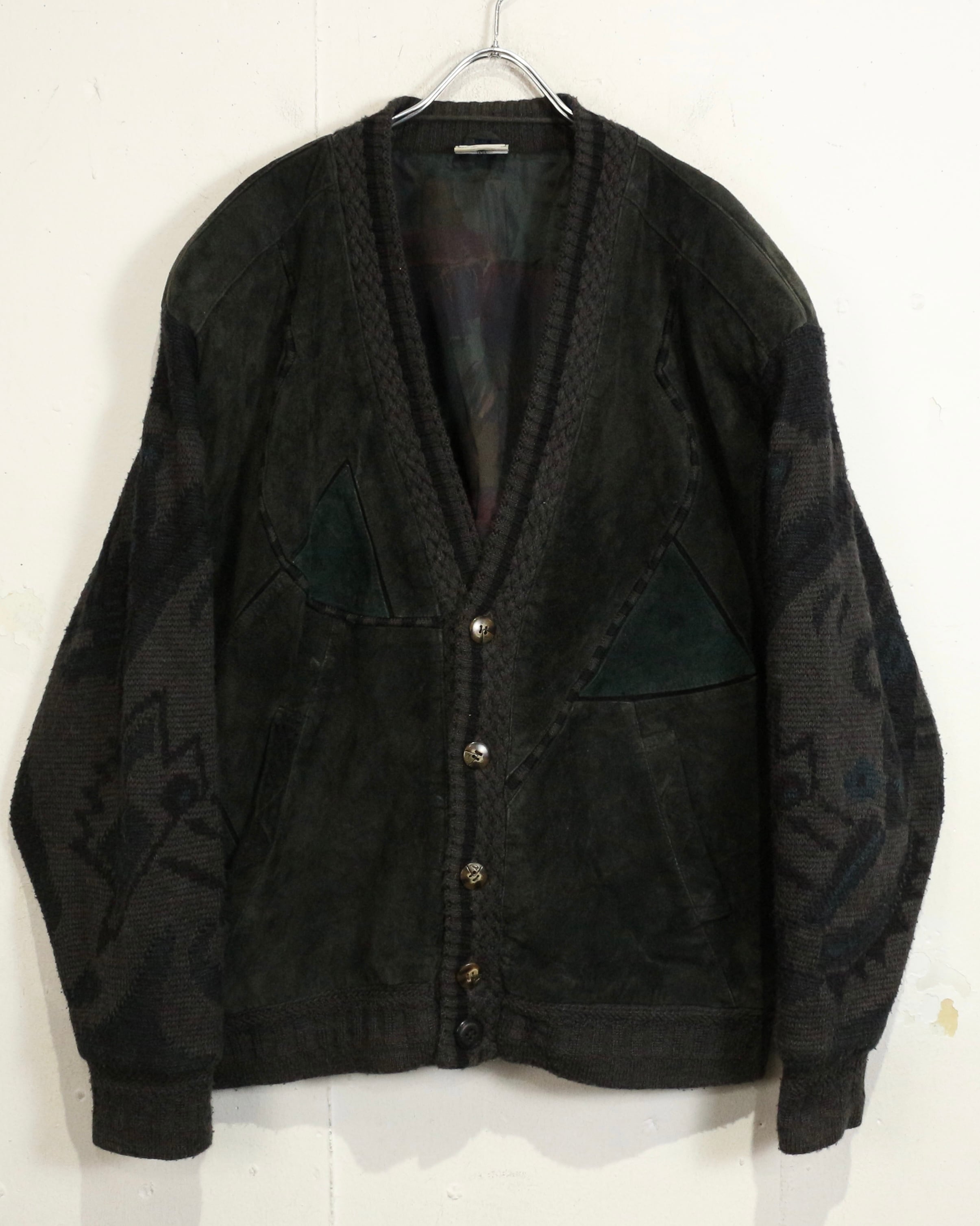 柔らかなニットの表情に、重厚なスエードレザーを掛け合わせたユーロヴィンテージのカーディガンジャケット。