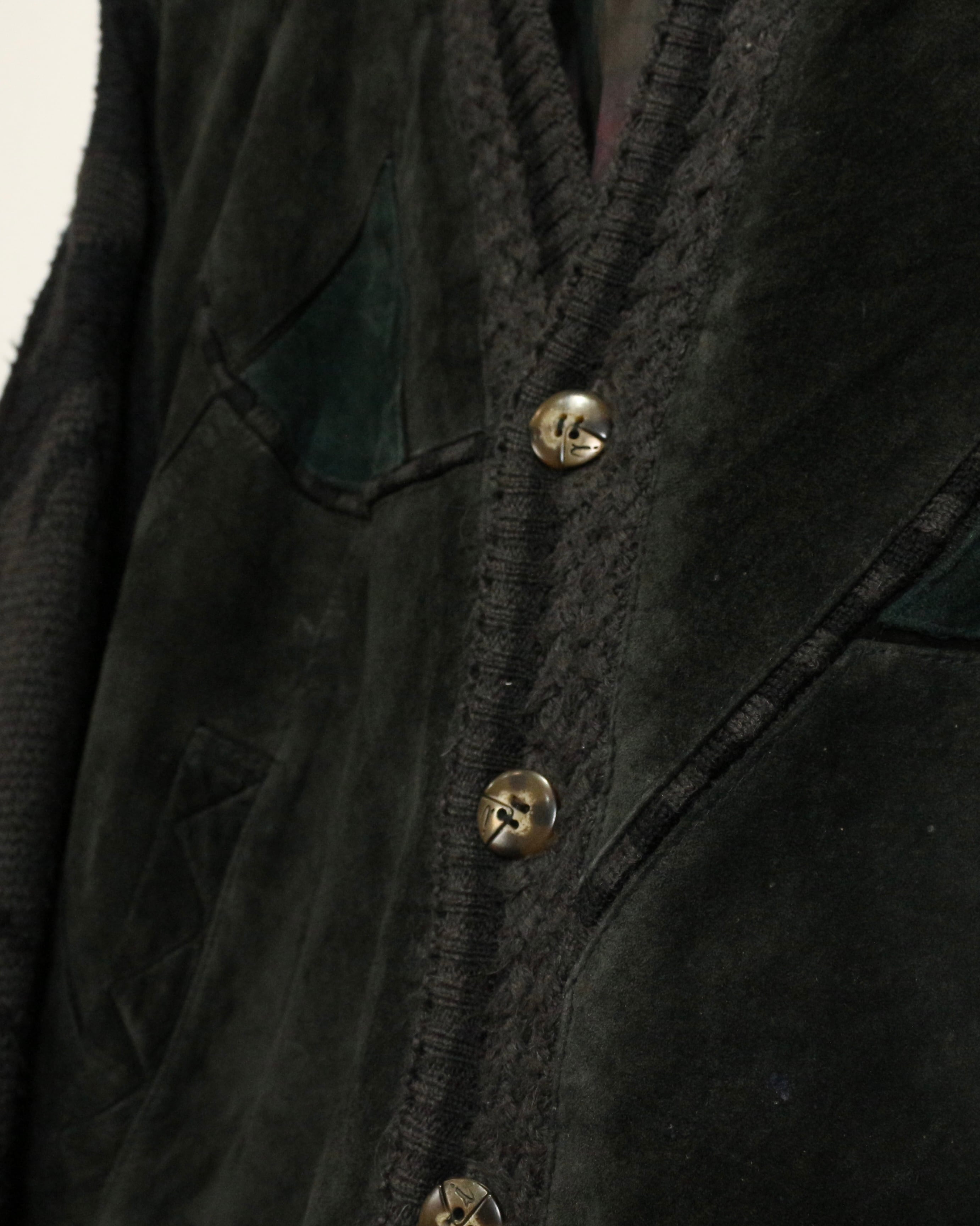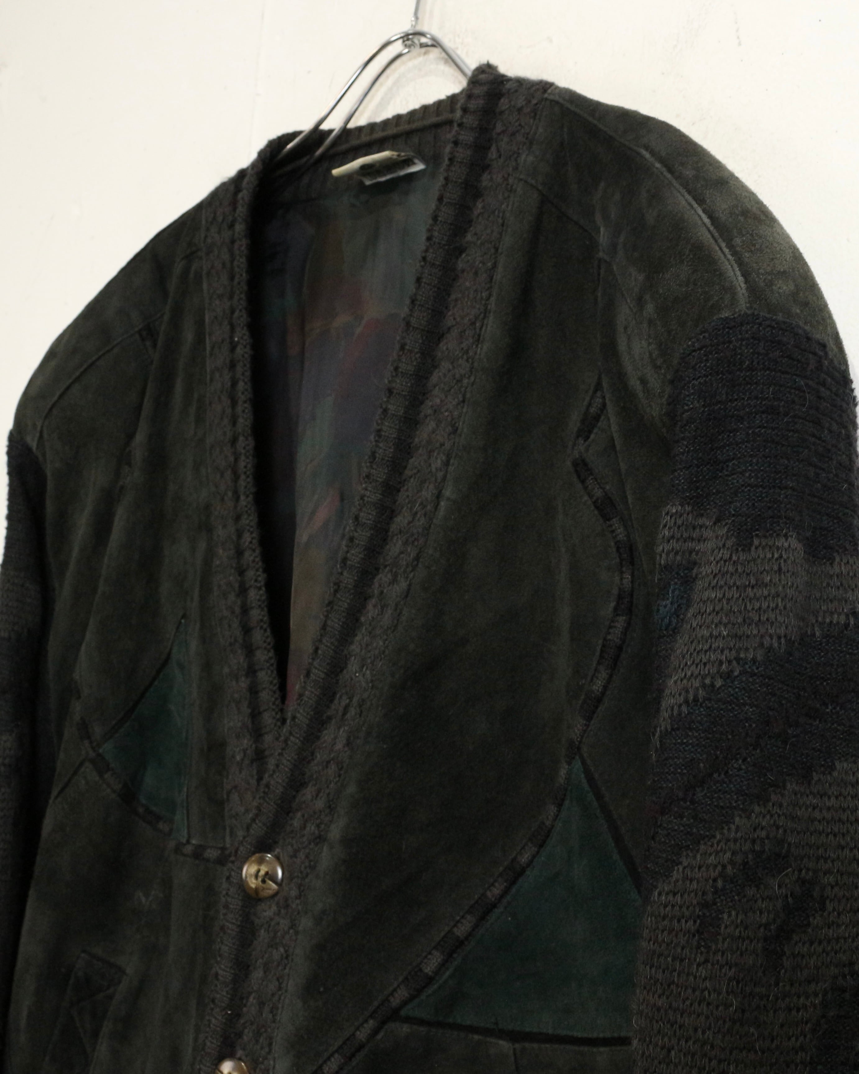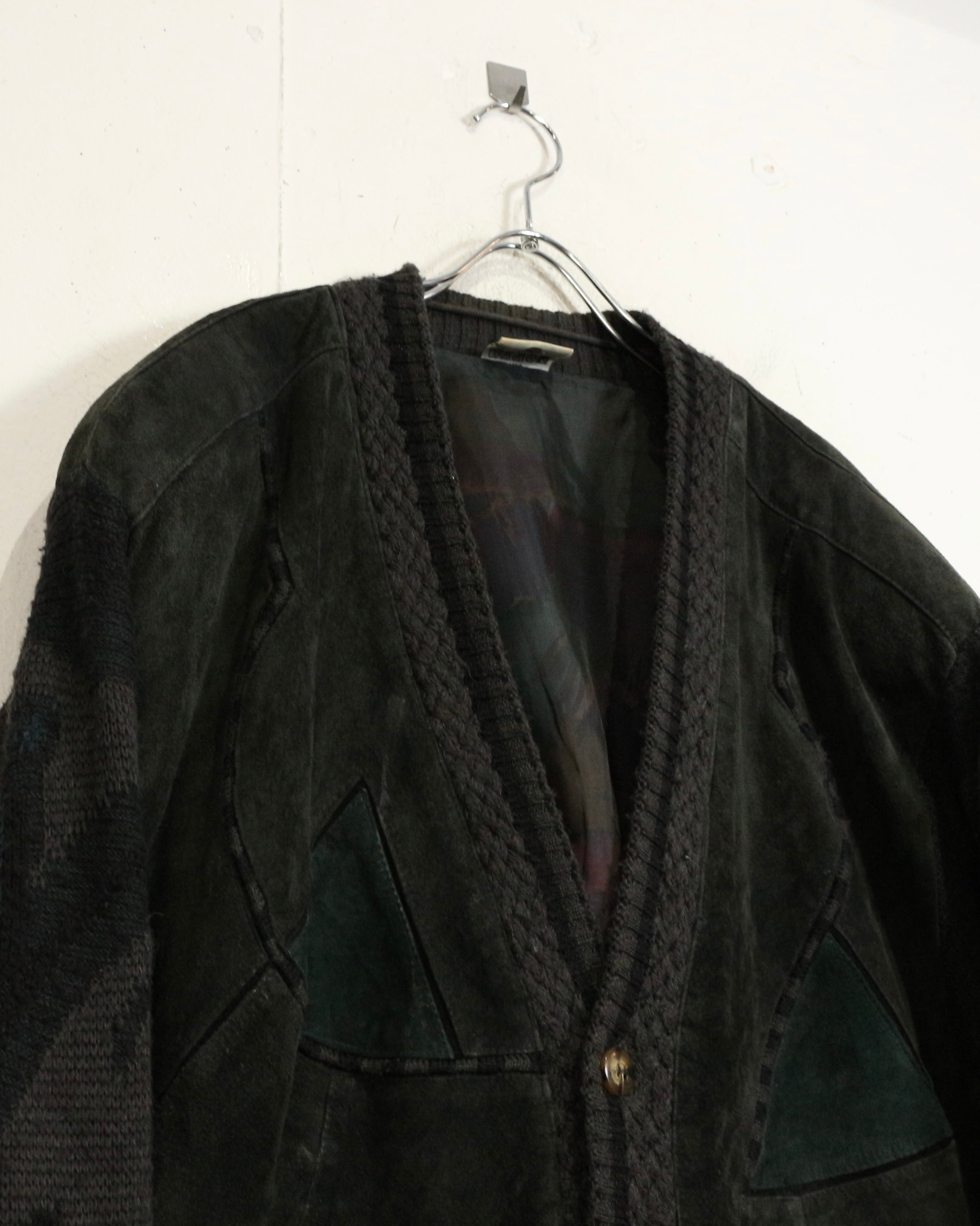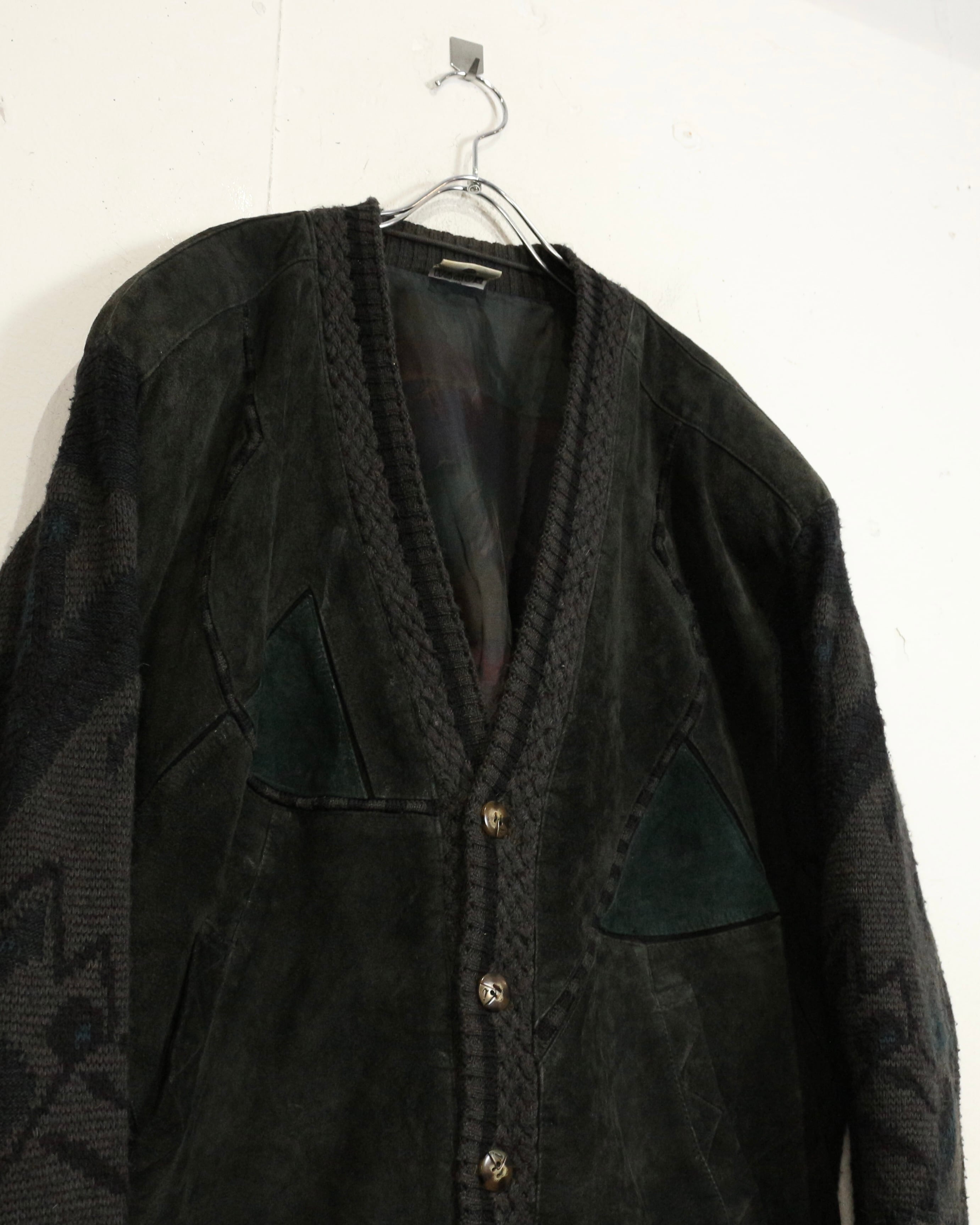 柔らかなニットの表情に、重厚なスエードレザーを掛け合わせたユーロヴィンテージのカーディガンジャケット。