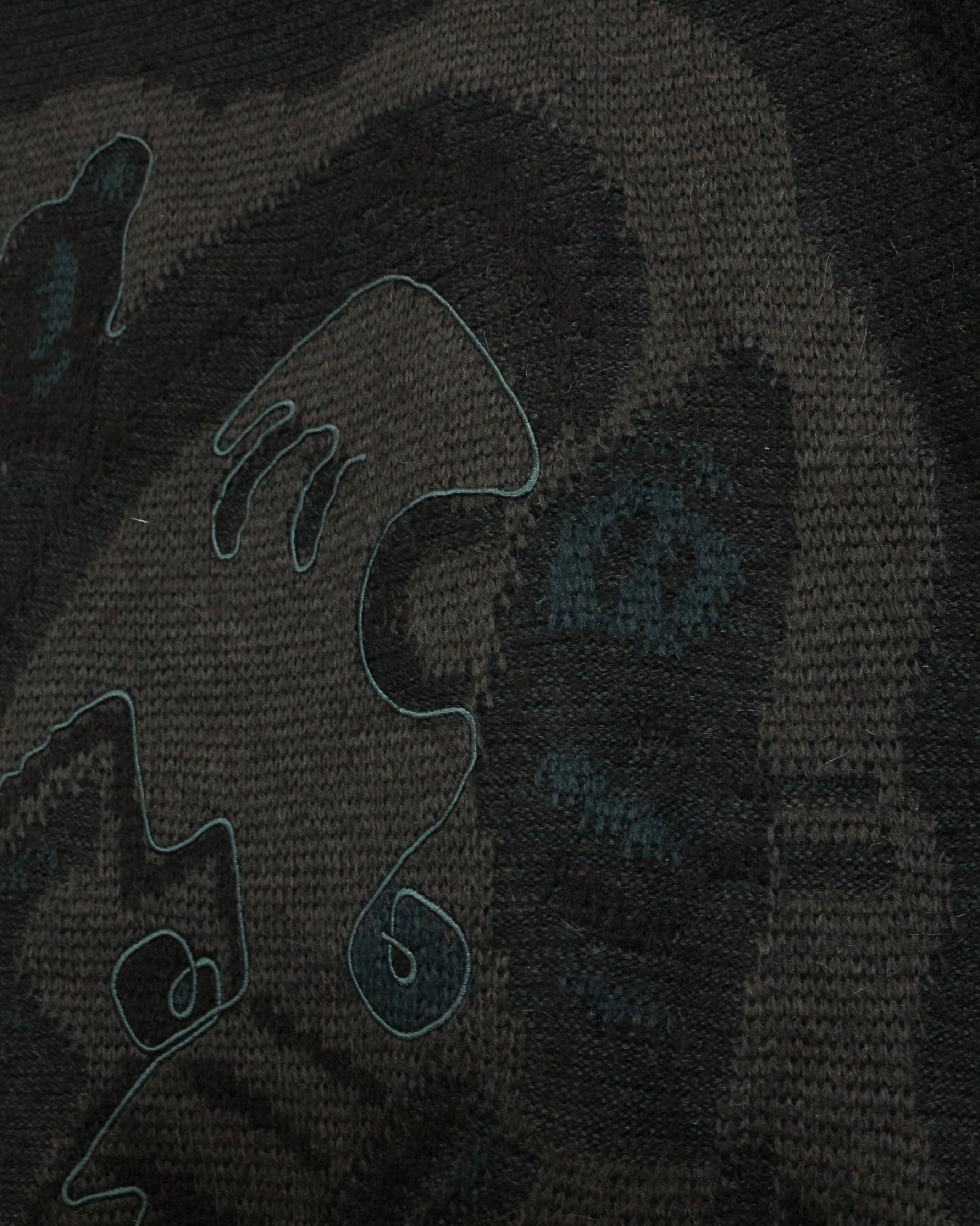 フロント全面にはしっとりとしたスエードレザーを大胆に切り替え。対してアームとバックは柔らかなニット素材。編み地の立体感と柔らかさが加わることで、レザーの無骨さを程よく中和し、バランスの取れた佇まいを演出しています。