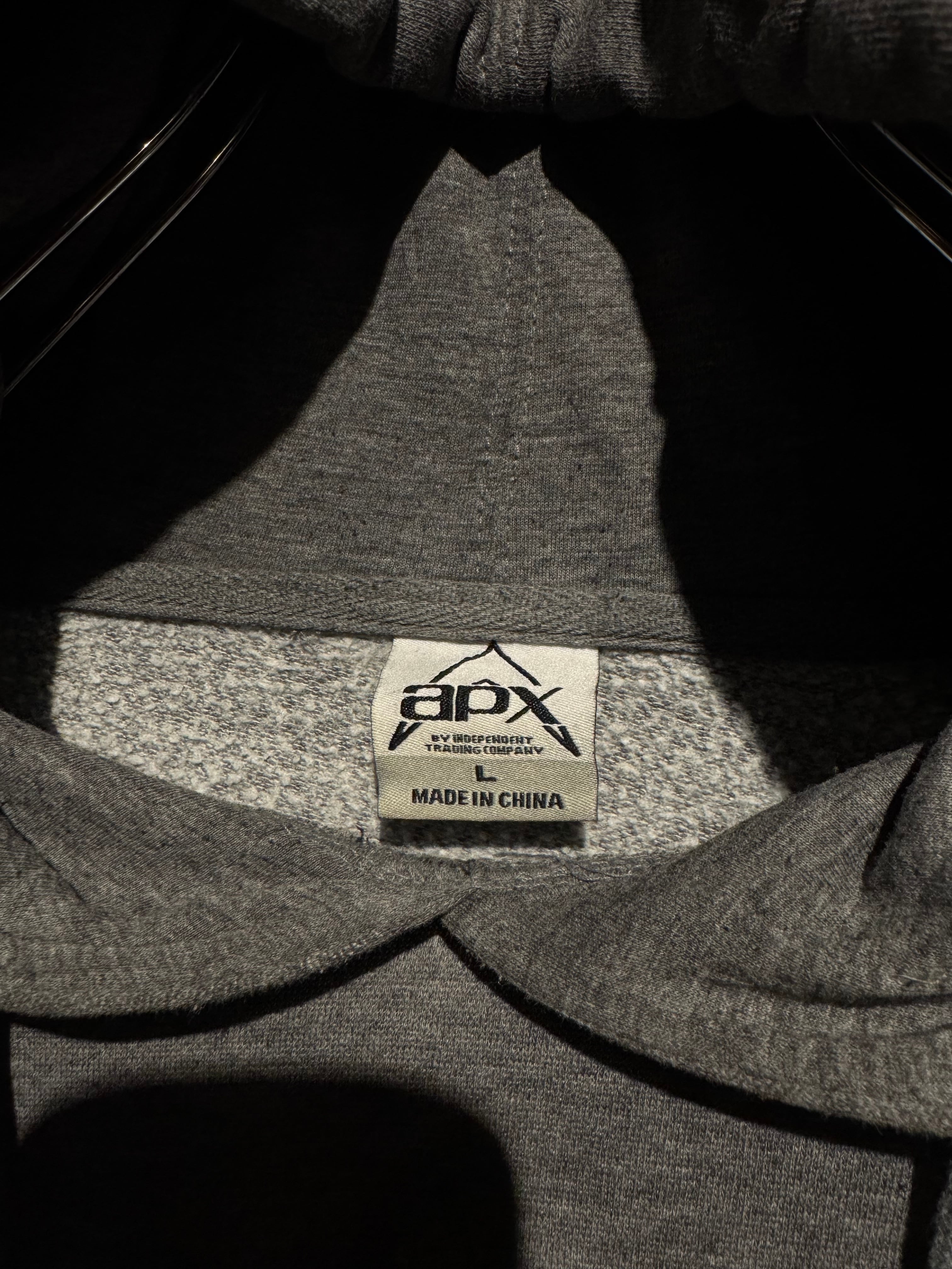 グレーボディに映えるフロントのボックスロゴ。MVでも印象的な、楽曲の持つ緊張感と精神性を想起させるアートワークを内包し、シンプルながらも強いメッセージ性を放っています。