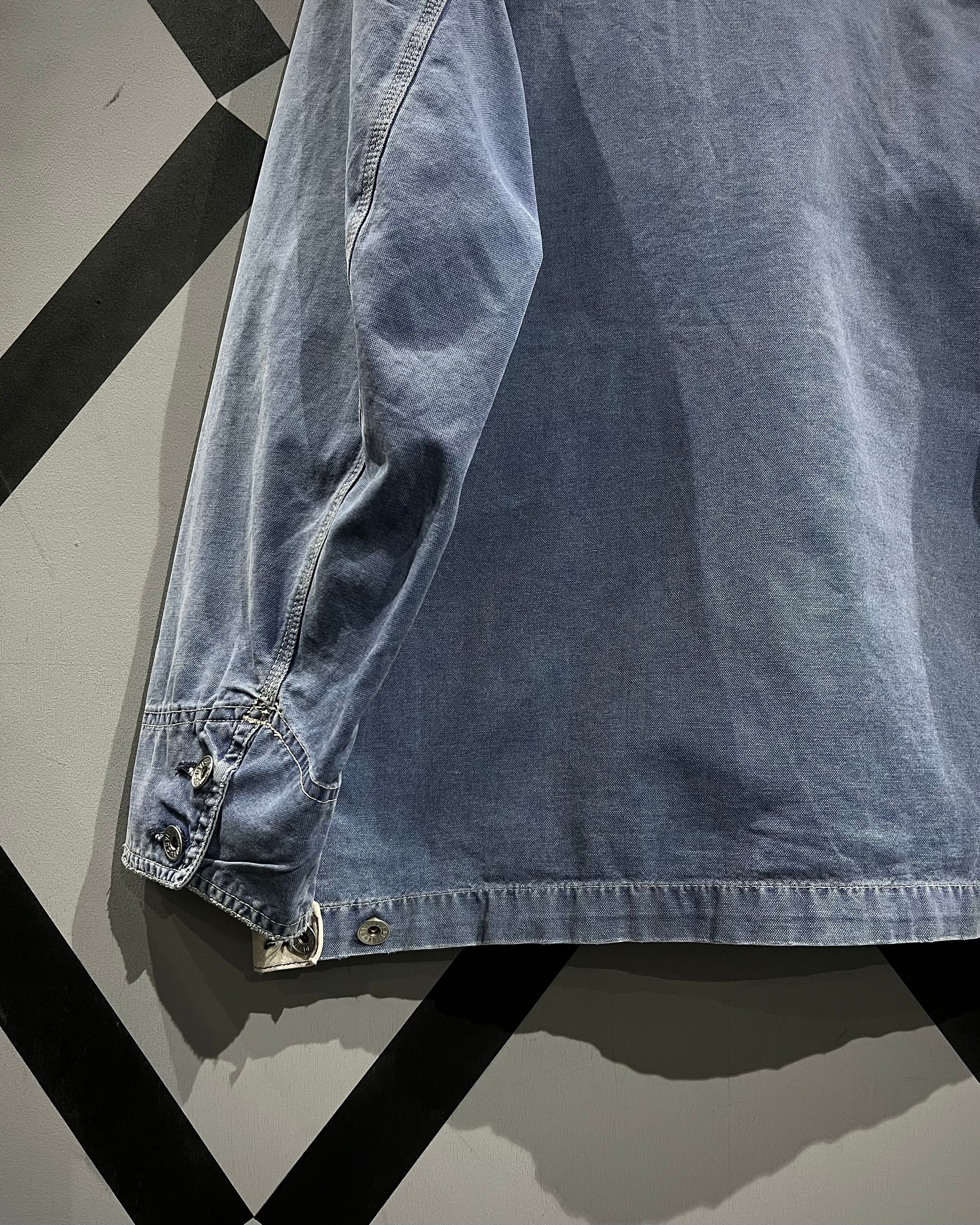 ダック地特有のハリ感と程よいルーズシルエットにより、羽織るだけでスタイリングが成立。経年によるフェードが一点物としての存在感をさらに高めています。