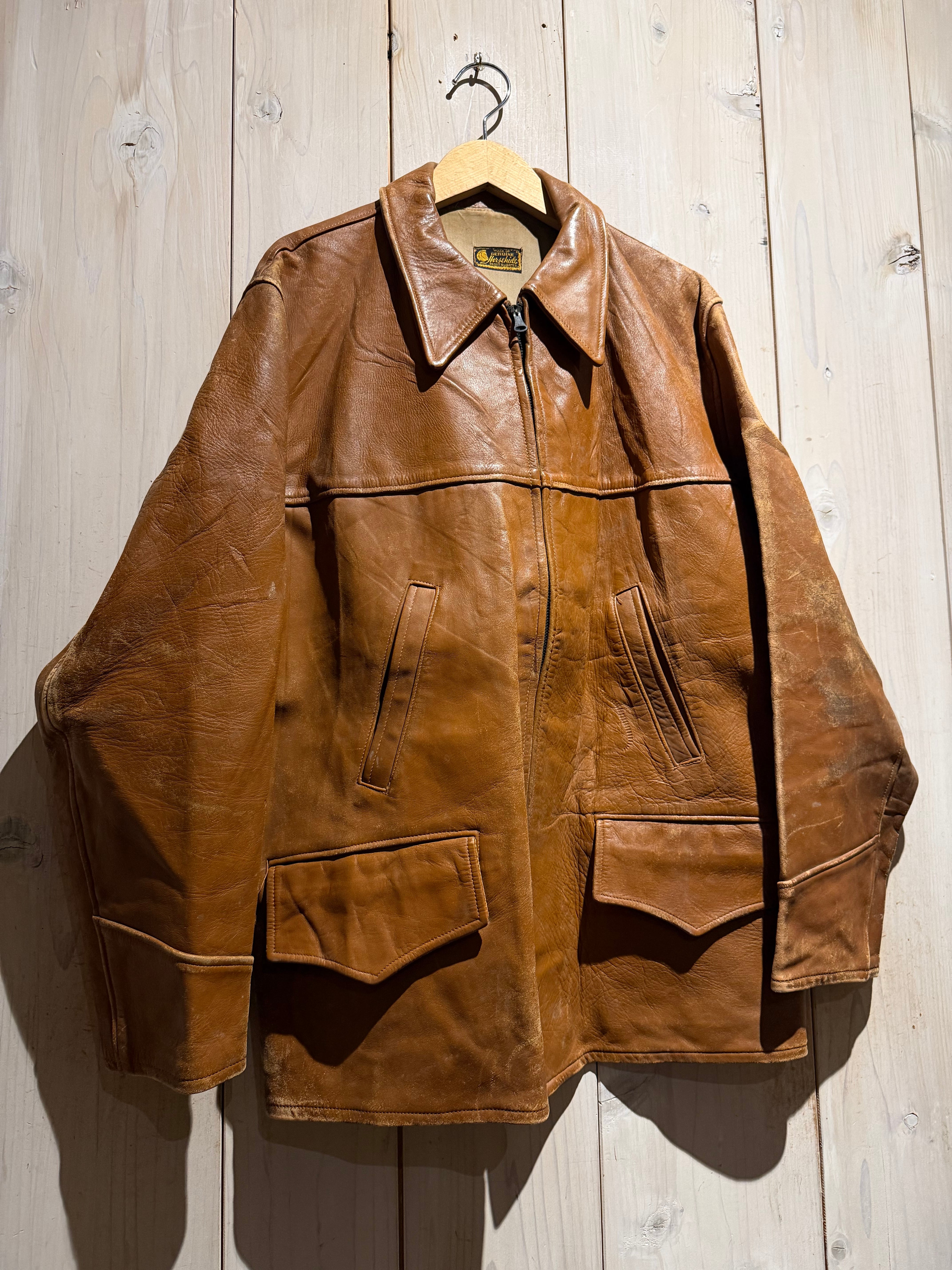 この年代の中ではコンディションも良好、着るほどに自分だけの表情へと育つ、ホースハイドならではのスペシャルなレザージャケットです。