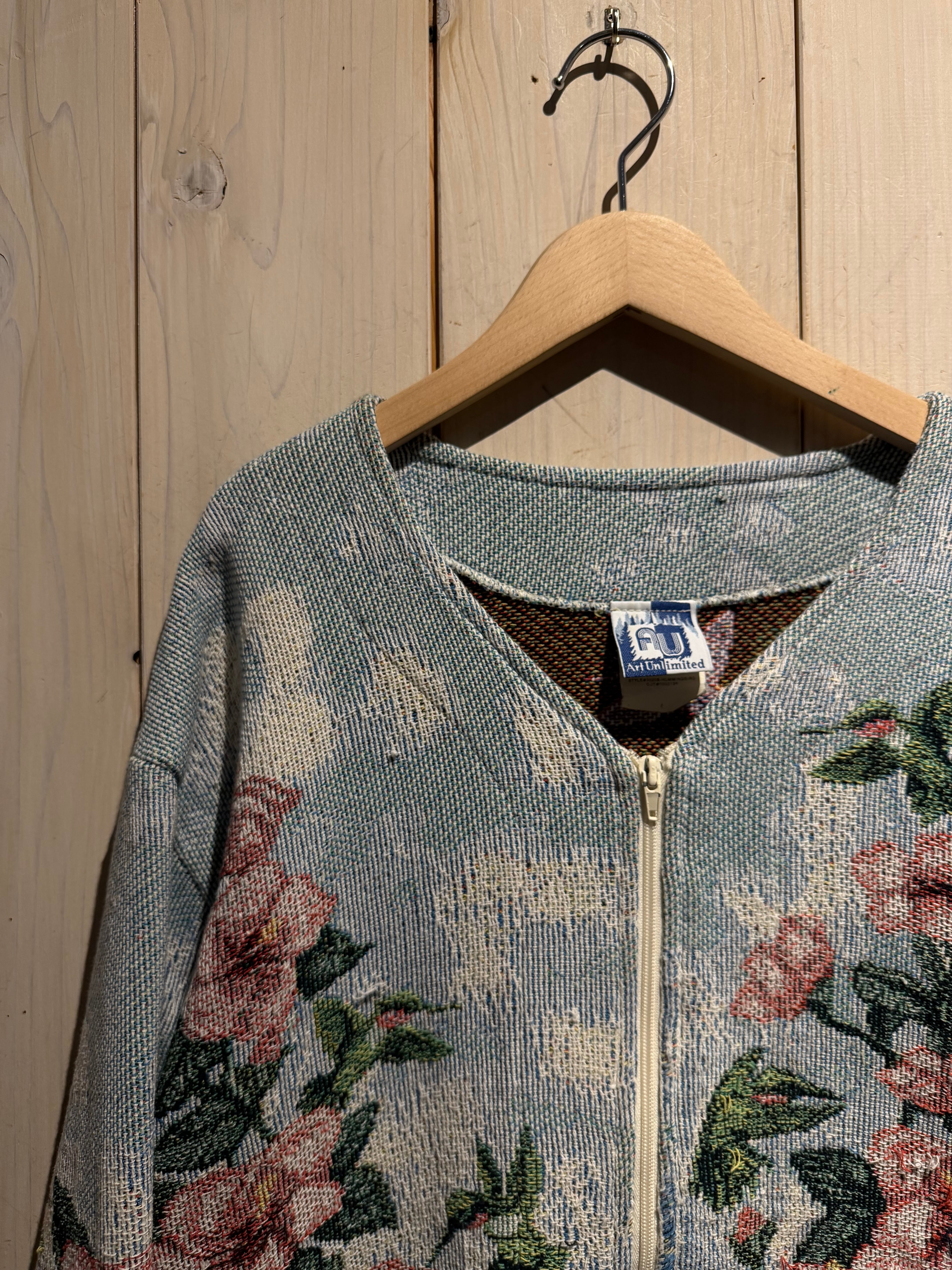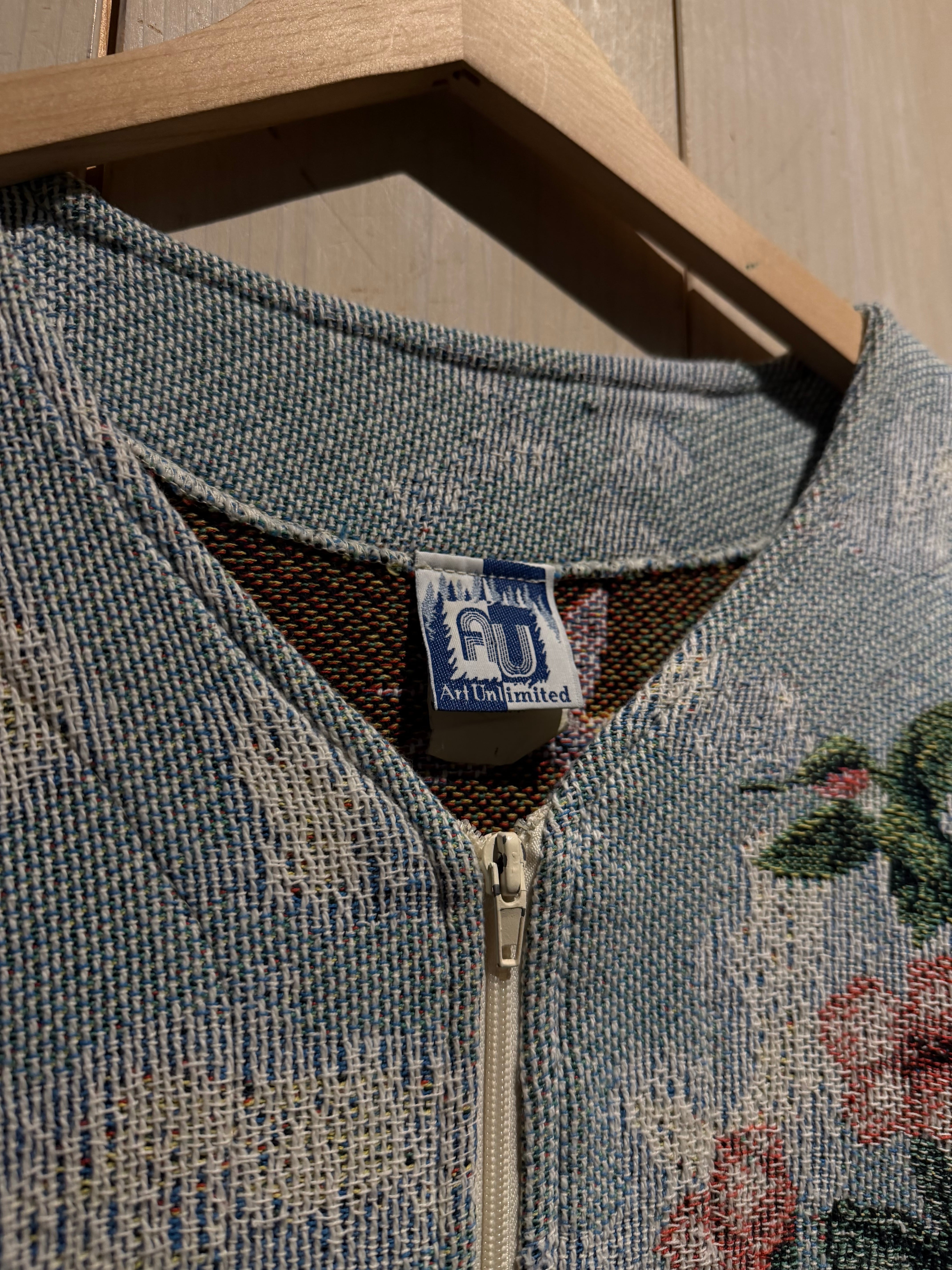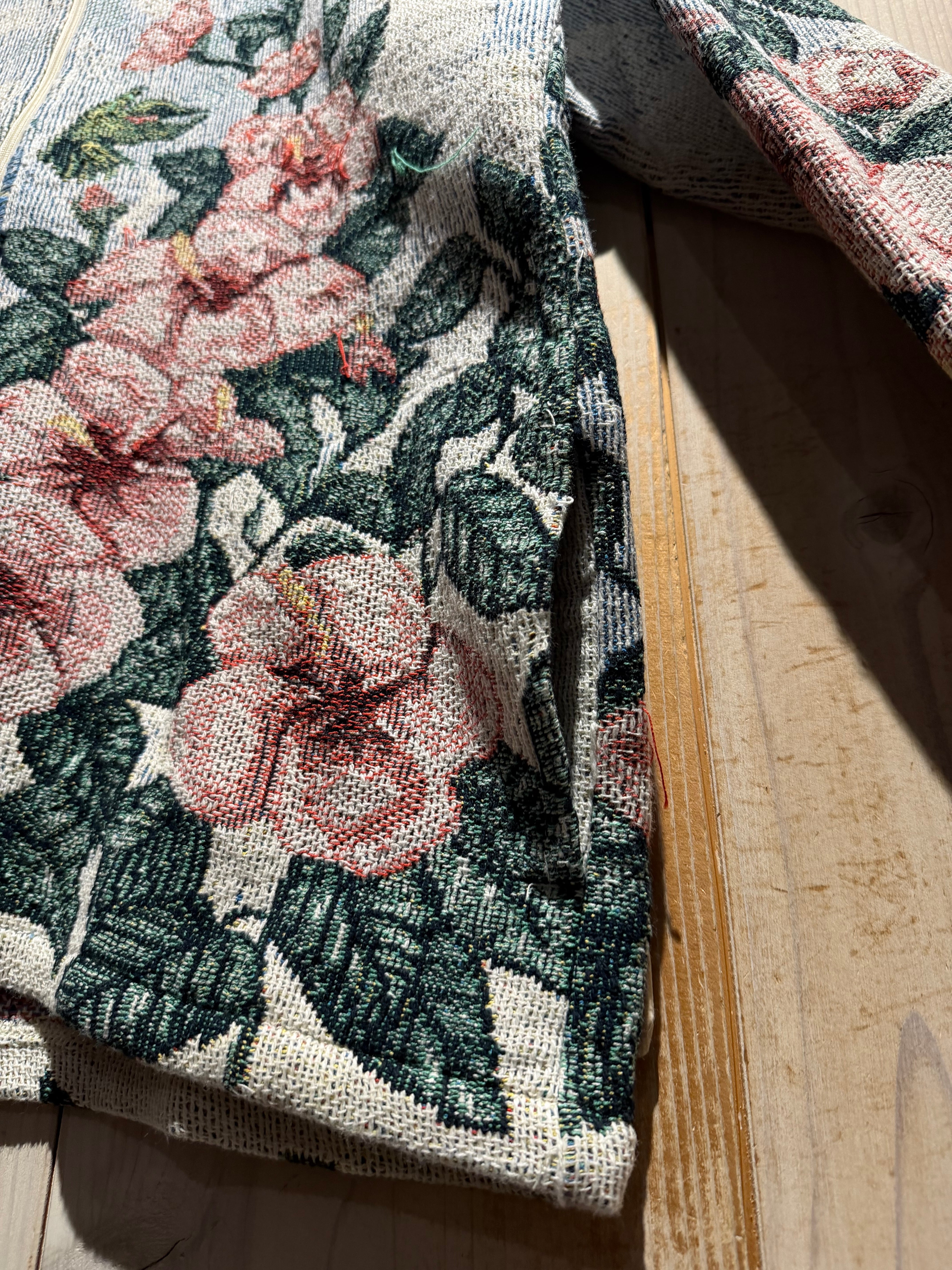 織りで絵画のような表情を描くゴブラン織りを用いたジャケット。